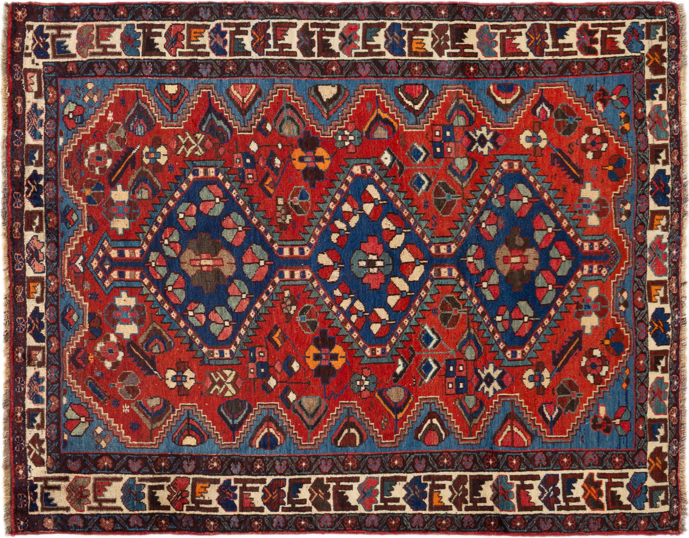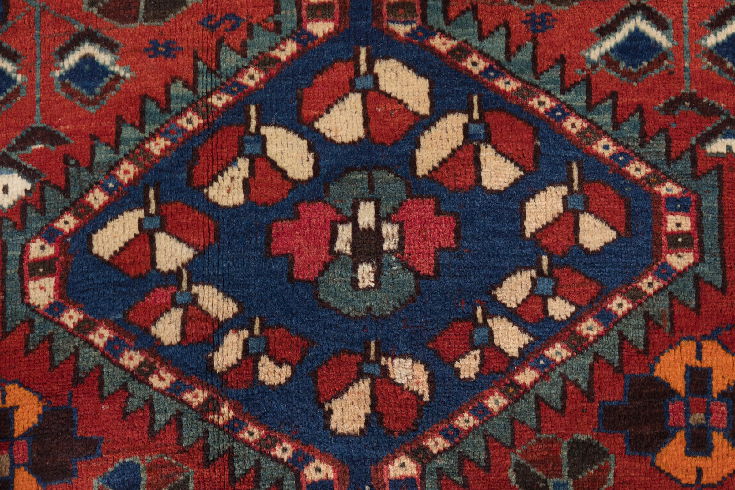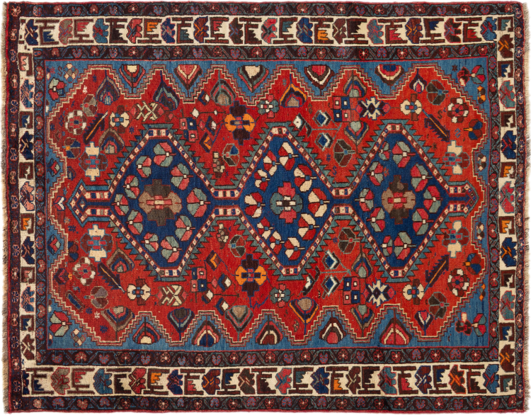 This rug belongs to village and nomadic rugs from Iran, formerly Persia. This type of rug is knotted by hand in smaller towns and villages in old tradition. Even nomads still knot Persian rugs in the open air. The rugs are knotted without a draft and completely from the mind. They are characterized by classical ornaments, which are arranged in straight and geometrical patterns. Thanks to their cultural-traditional origin, these rugs have a unique character that embodies ancient Persia.