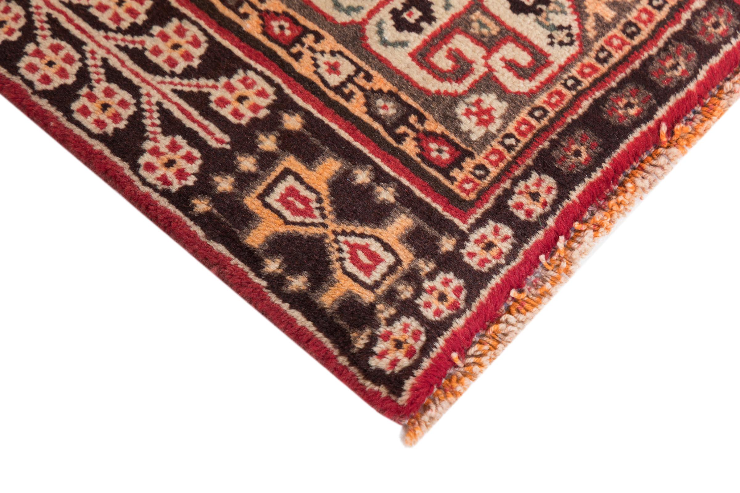 This rug belongs to village and nomadic rugs from Iran, formerly Persia. This type of rug is knotted by hand in smaller towns and villages in old tradition. Even nomads still knot Persian rugs in the open air. The rugs are knotted without a draft and completely from the mind. They are characterized by classical ornaments, which are arranged in straight and geometrical patterns. Thanks to their cultural-traditional origin, these rugs have a unique character that embodies ancient Persia.