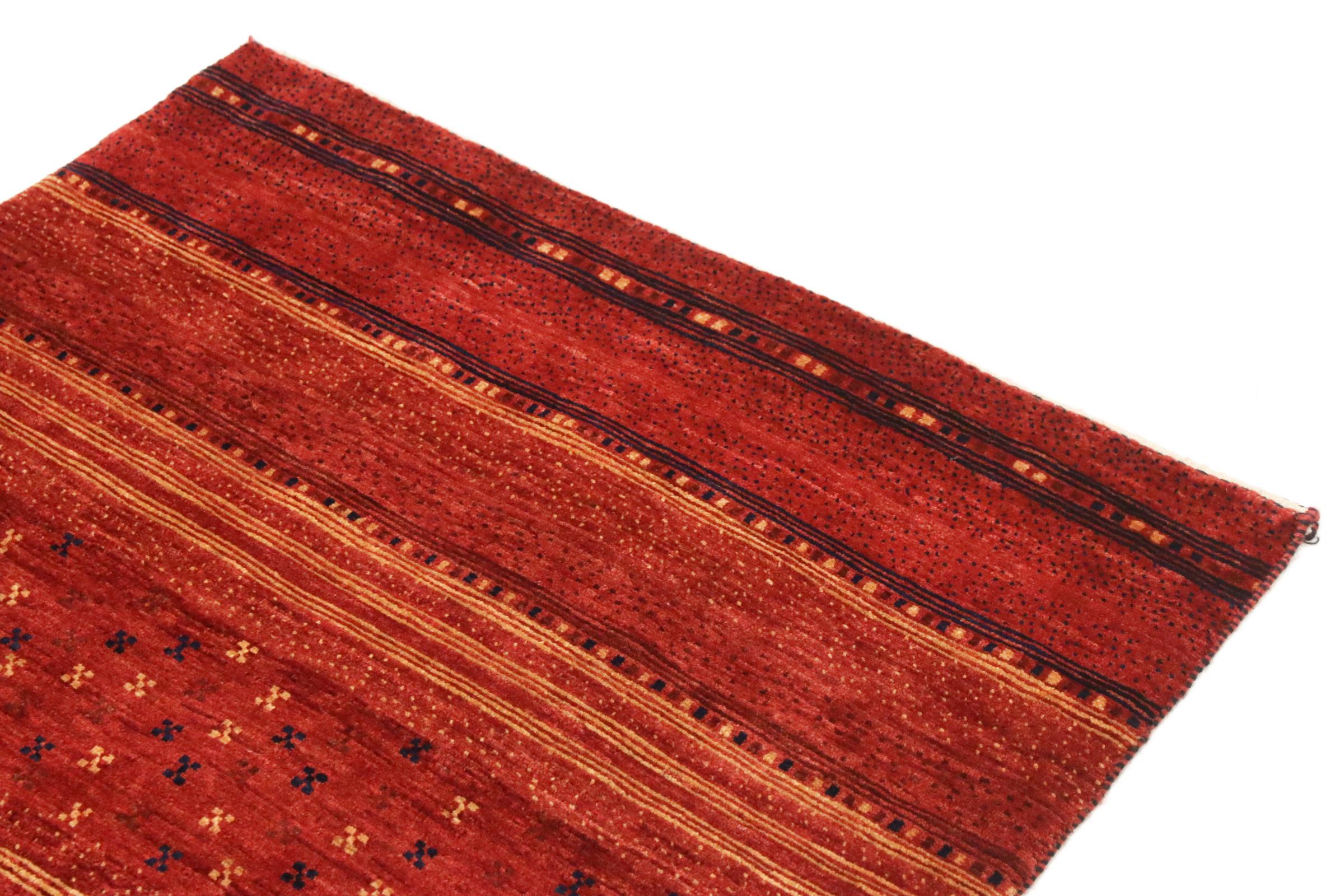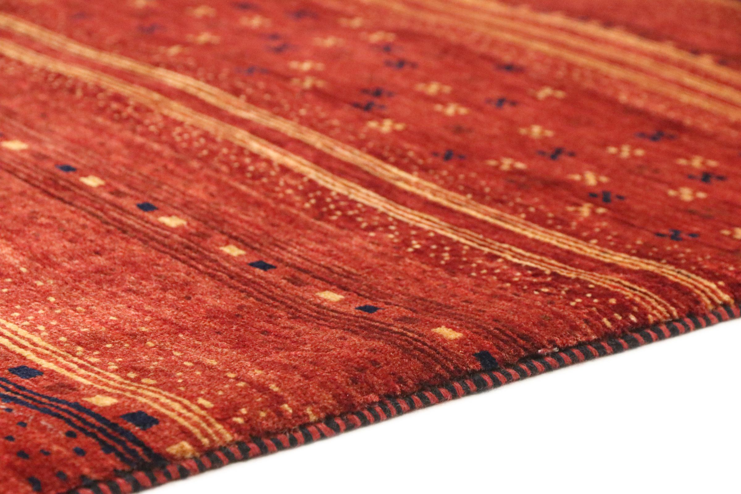 This rug belongs to village and nomadic rugs from Iran, formerly Persia. This type of rug is knotted by hand in smaller towns and villages in old tradition. Even nomads still knot Persian rugs in the open air. The rugs are knotted without a draft and completely from the mind. They are characterized by classical ornaments, which are arranged in straight and geometrical patterns. Thanks to their cultural-traditional origin, these rugs have a unique character that embodies ancient Persia.
