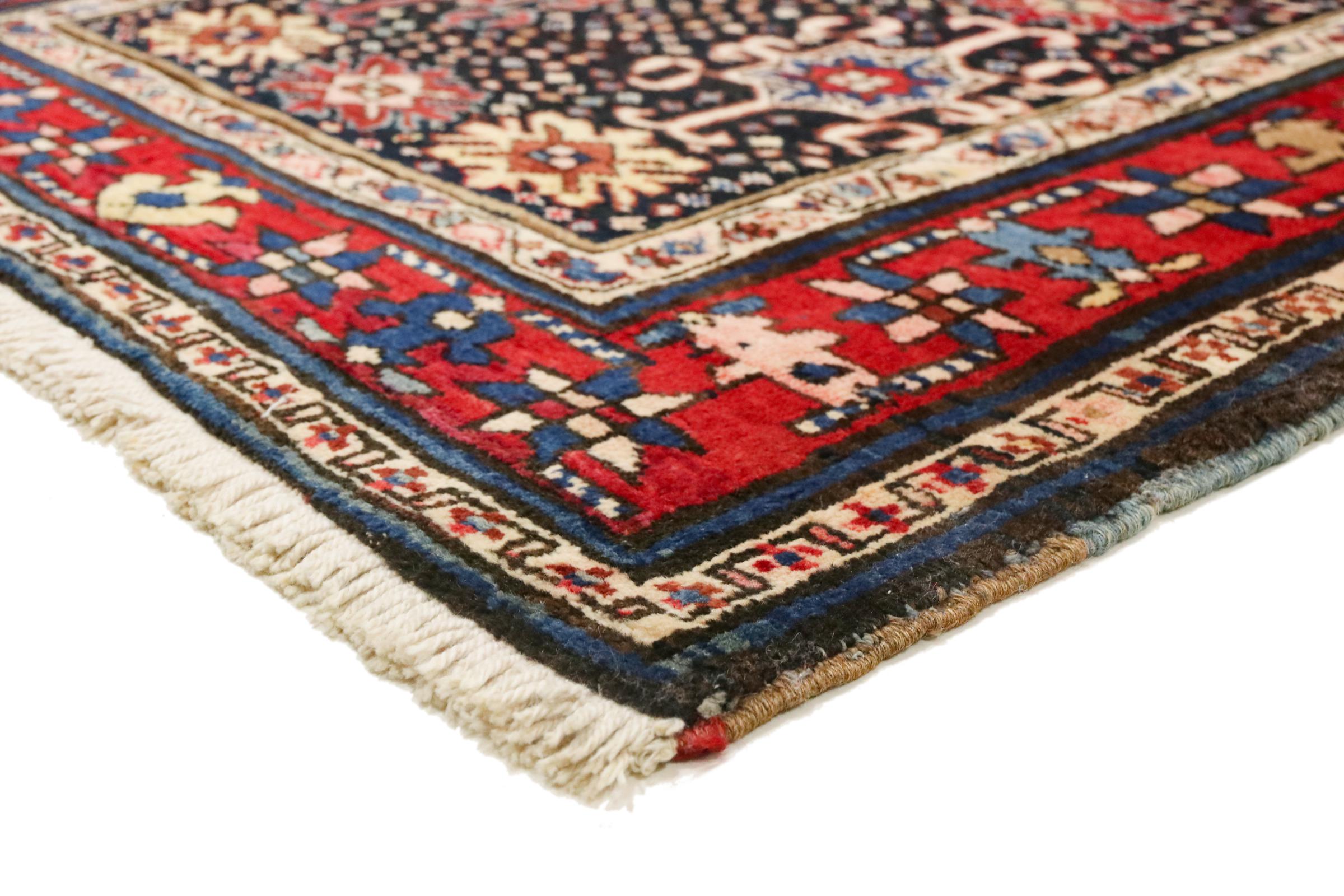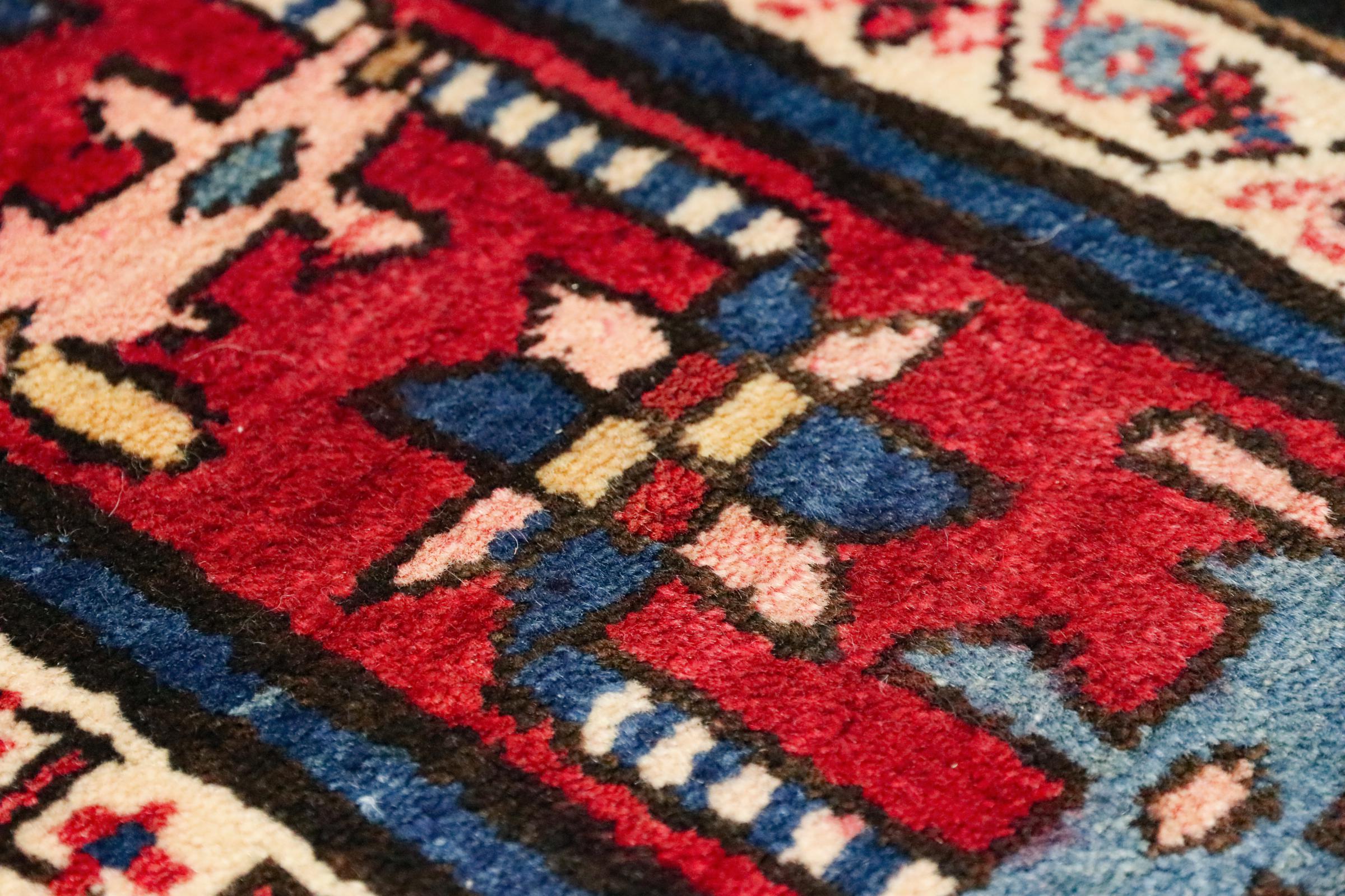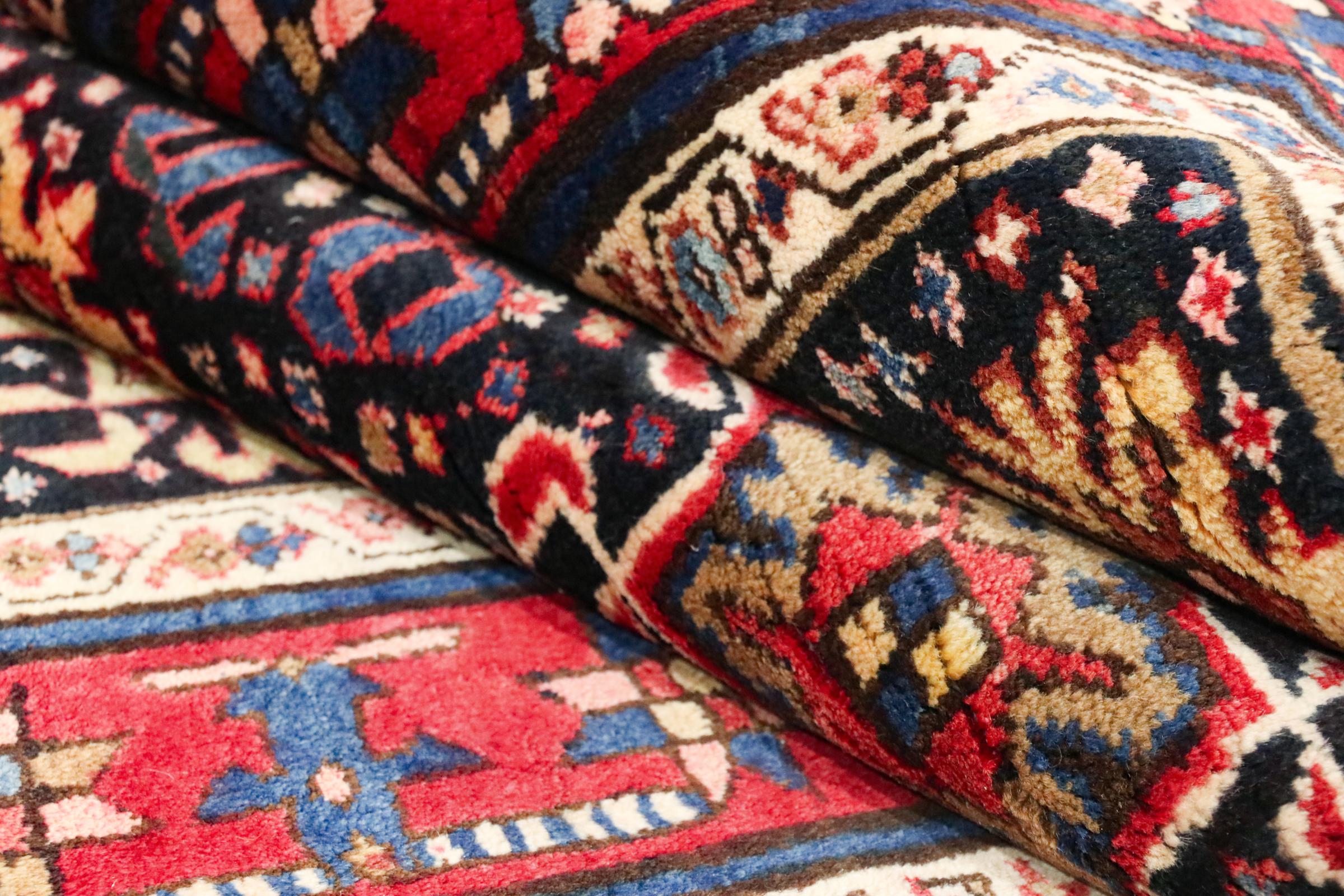 This rug belongs to village and nomadic rugs from Iran, formerly Persia. This type of rug is knotted by hand in smaller towns and villages in old tradition. Even nomads still knot Persian rugs in the open air. The rugs are knotted without a draft and completely from the mind. They are characterized by classical ornaments, which are arranged in straight and geometrical patterns. Thanks to their cultural-traditional origin, these rugs have a unique character that embodies ancient Persia.