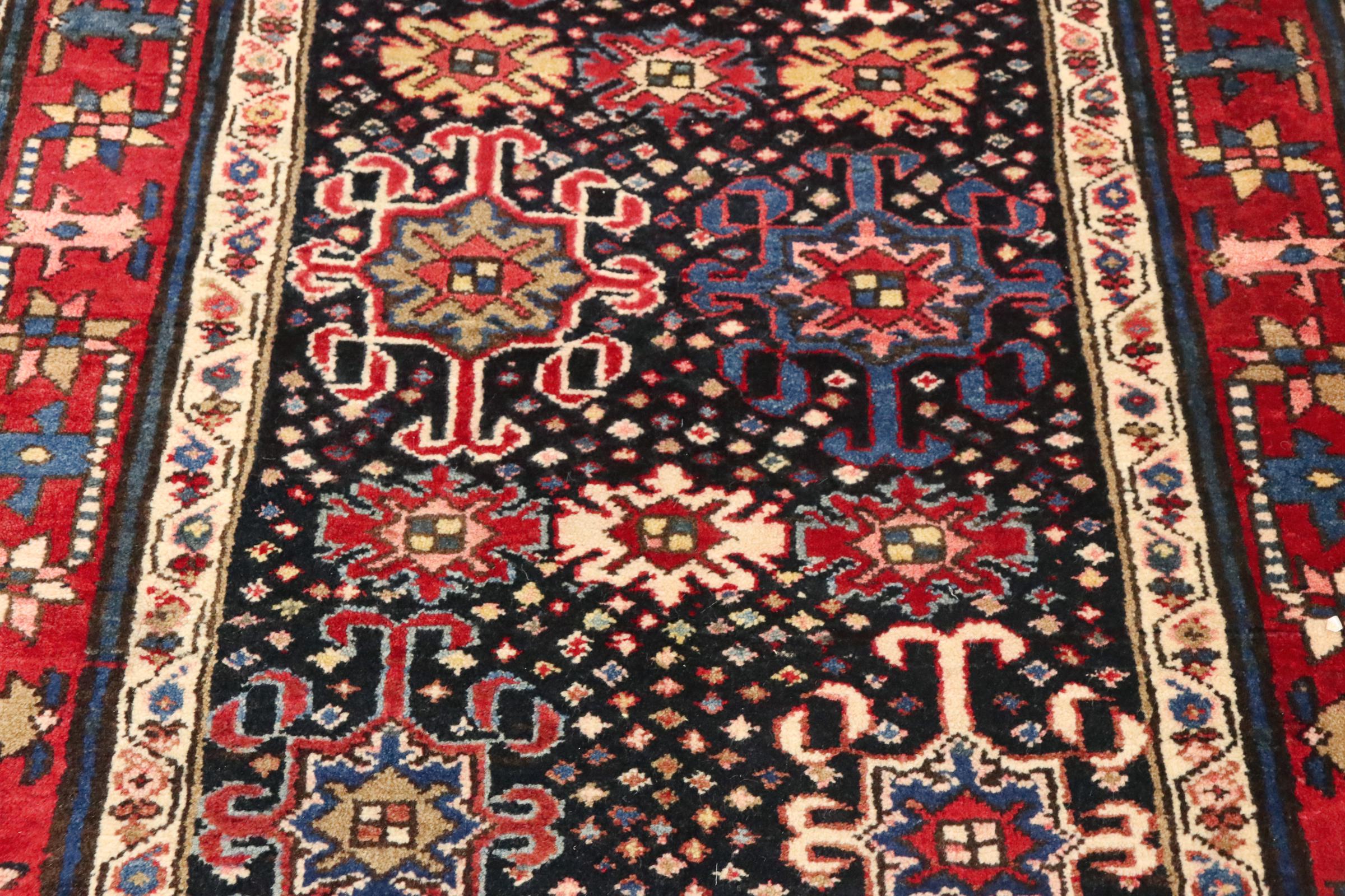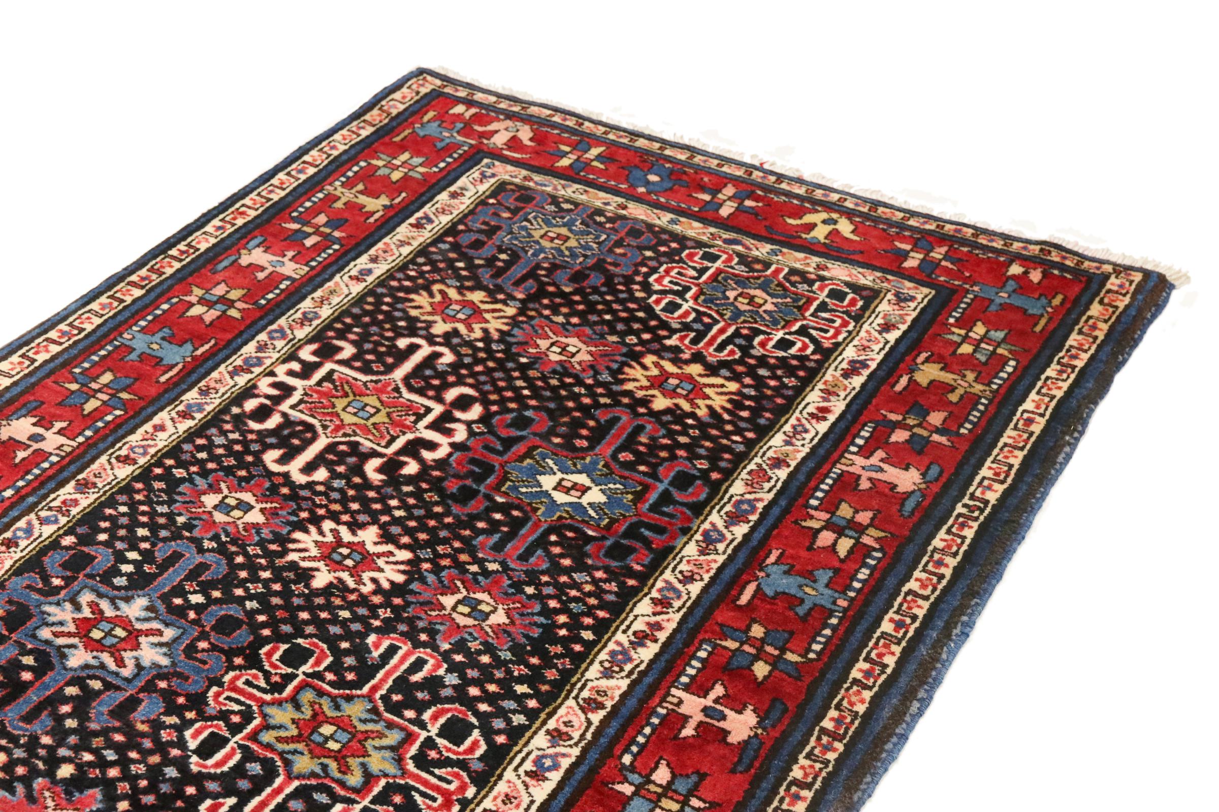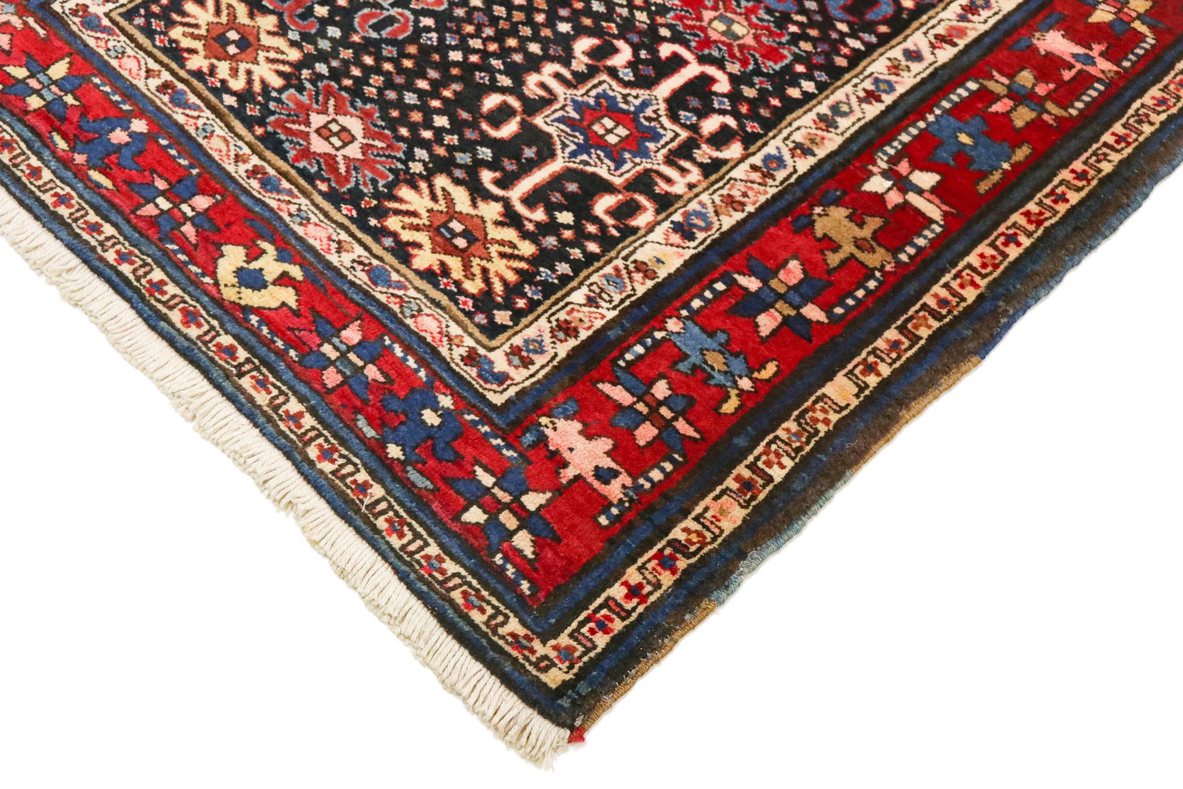 This rug belongs to village and nomadic rugs from Iran, formerly Persia. This type of rug is knotted by hand in smaller towns and villages in old tradition. Even nomads still knot Persian rugs in the open air. The rugs are knotted without a draft and completely from the mind. They are characterized by classical ornaments, which are arranged in straight and geometrical patterns. Thanks to their cultural-traditional origin, these rugs have a unique character that embodies ancient Persia.