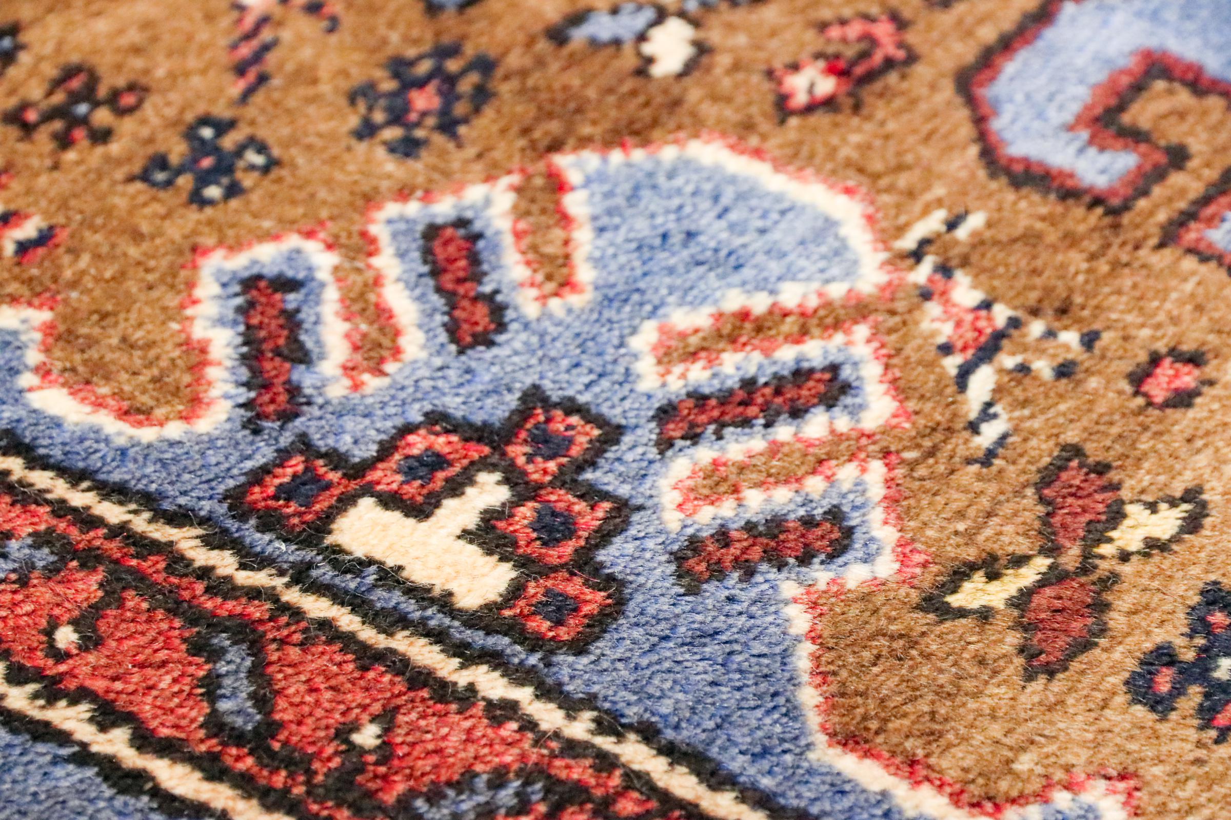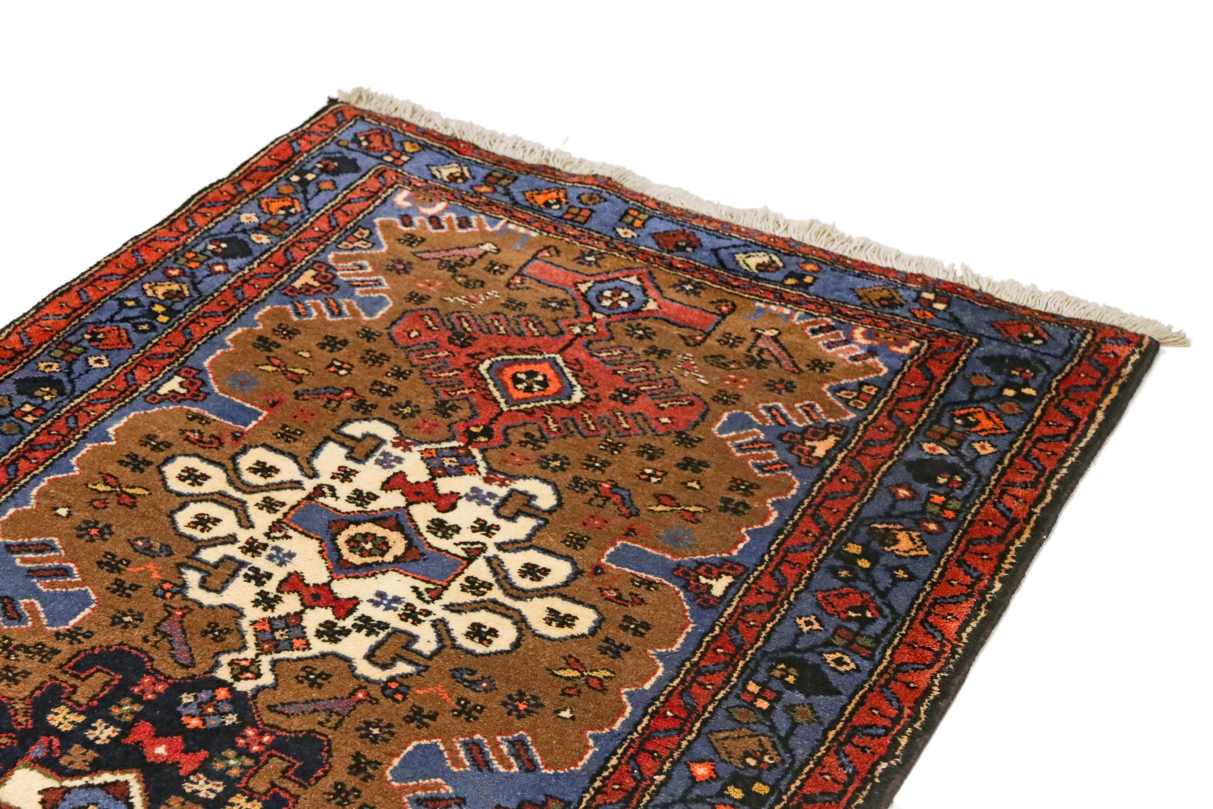 This rug belongs to village and nomadic rugs from Iran, formerly Persia. This type of rug is knotted by hand in smaller towns and villages in old tradition. Even nomads still knot Persian rugs in the open air. The rugs are knotted without a draft and completely from the mind. They are characterized by classical ornaments, which are arranged in straight and geometrical patterns. Thanks to their cultural-traditional origin, these rugs have a unique character that embodies ancient Persia.