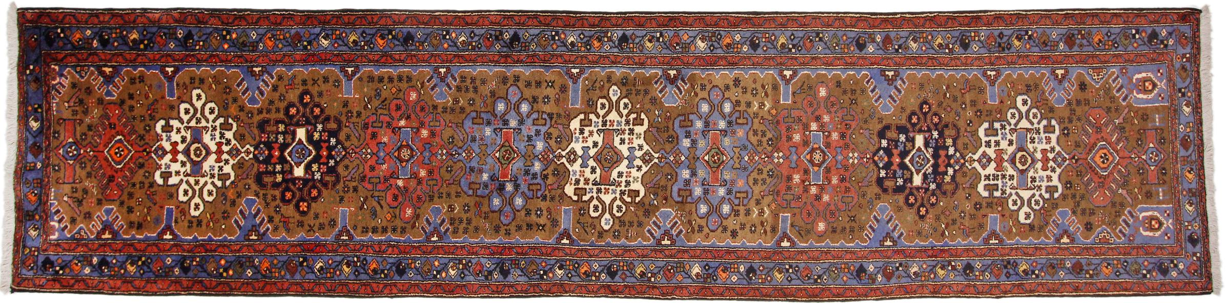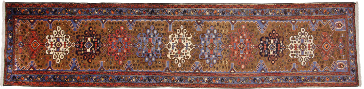Carpet ID: 157408005770090 Size: 408x99 cm Thickness: ap. 12 mm Knot density: 320 000 - 360 000 / m² Manufacturing: Knotted by hand Pile: Handspun wool Warp: Cotton Origin: Persia Age: New Weight: ap. 14 kg Also know as Qashqai, Gaschgai, Gashghai, Kashgai In stock: Unique - Only 1 in stock