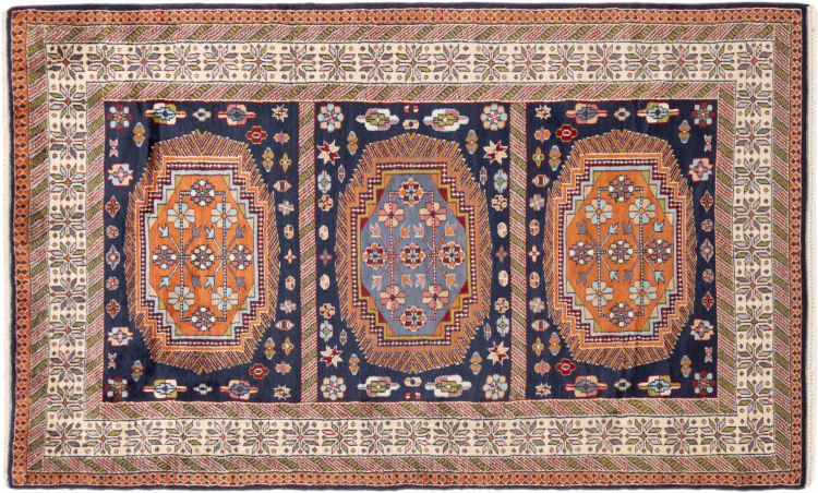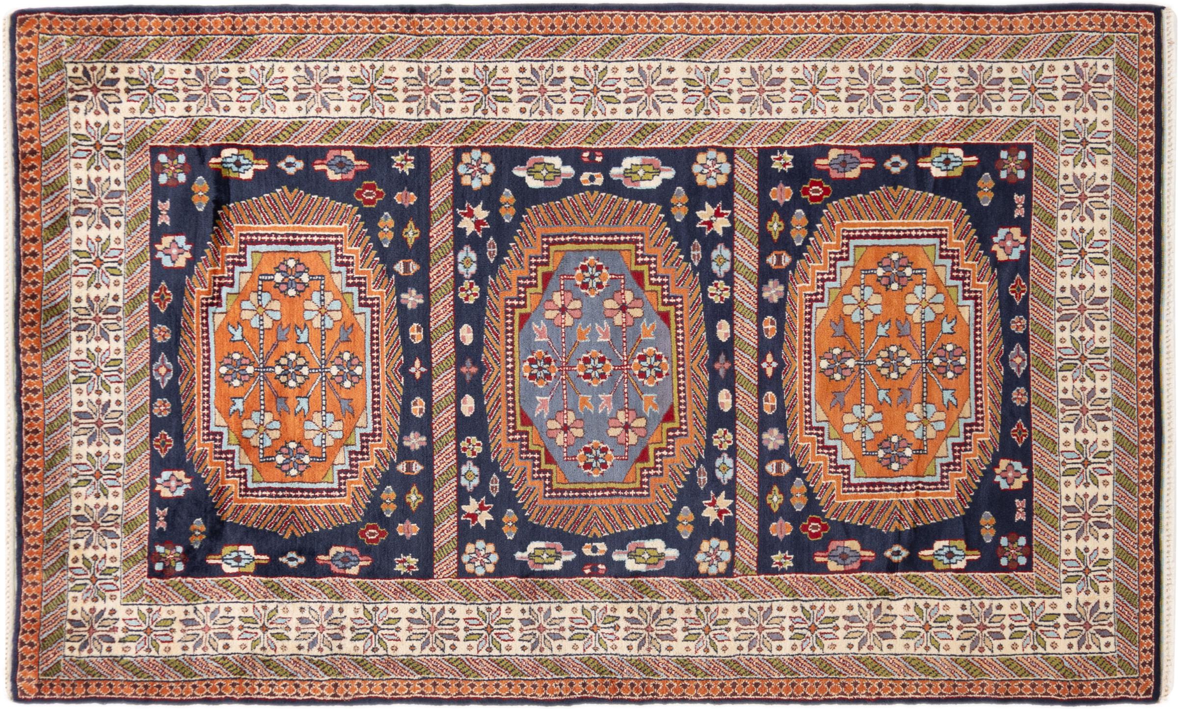 Carpet ID: 295342008097 Size: 195x117 cm Thickness: ap. 5 mm Knot density: 440 000 - 490 000 / m² Manufacturing: Knotted by hand Pile: Handspun wool Warp: Cotton Origin: Persia Age: New Weight: ap. 8 kg In stock: Unique - Only 1 in stock