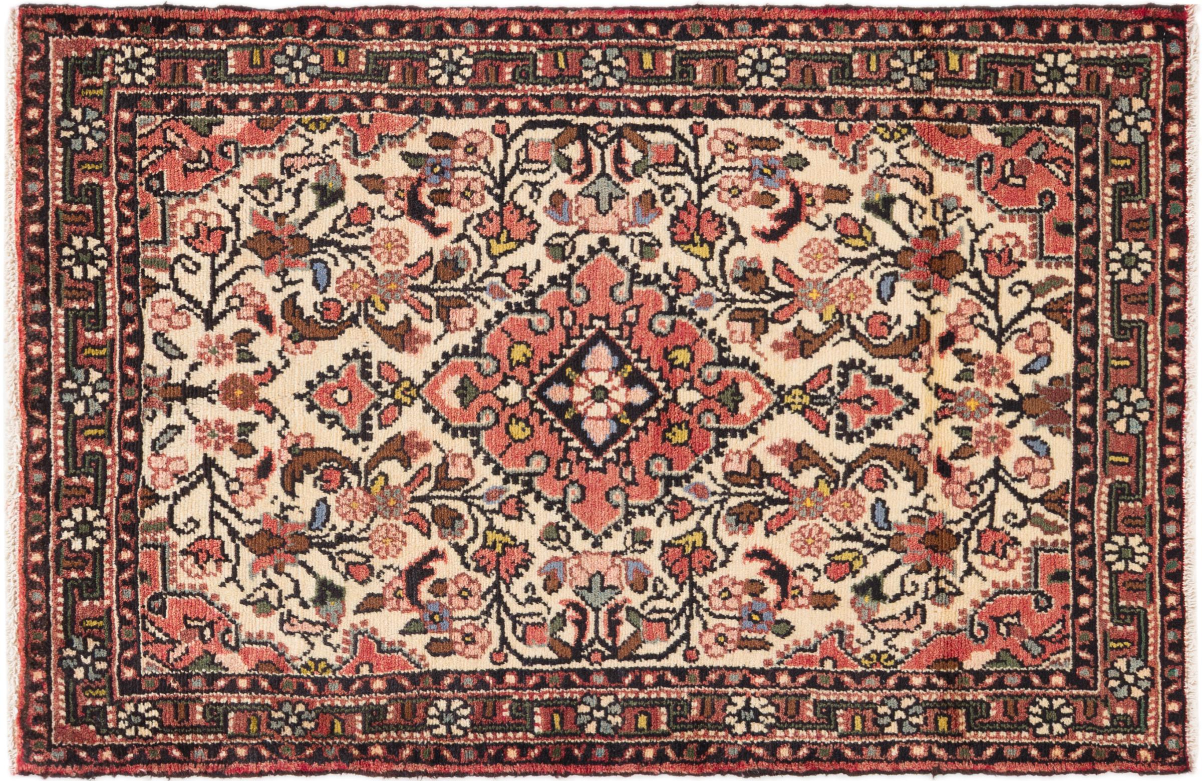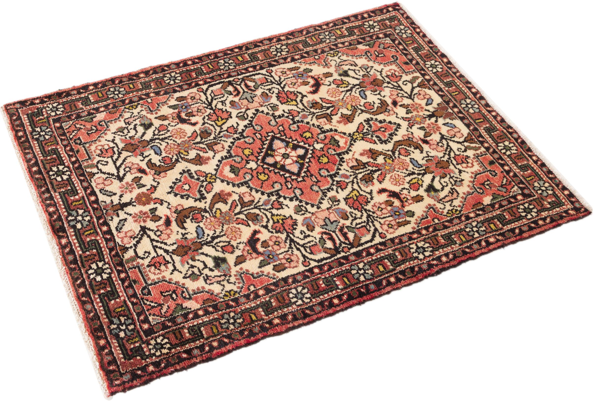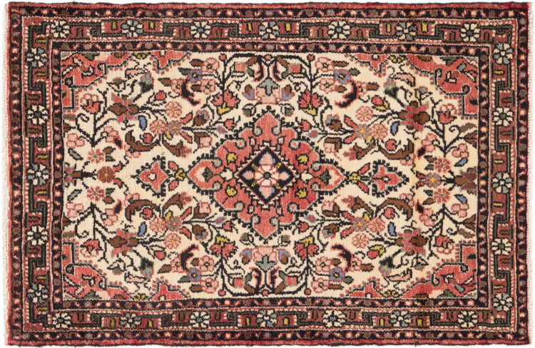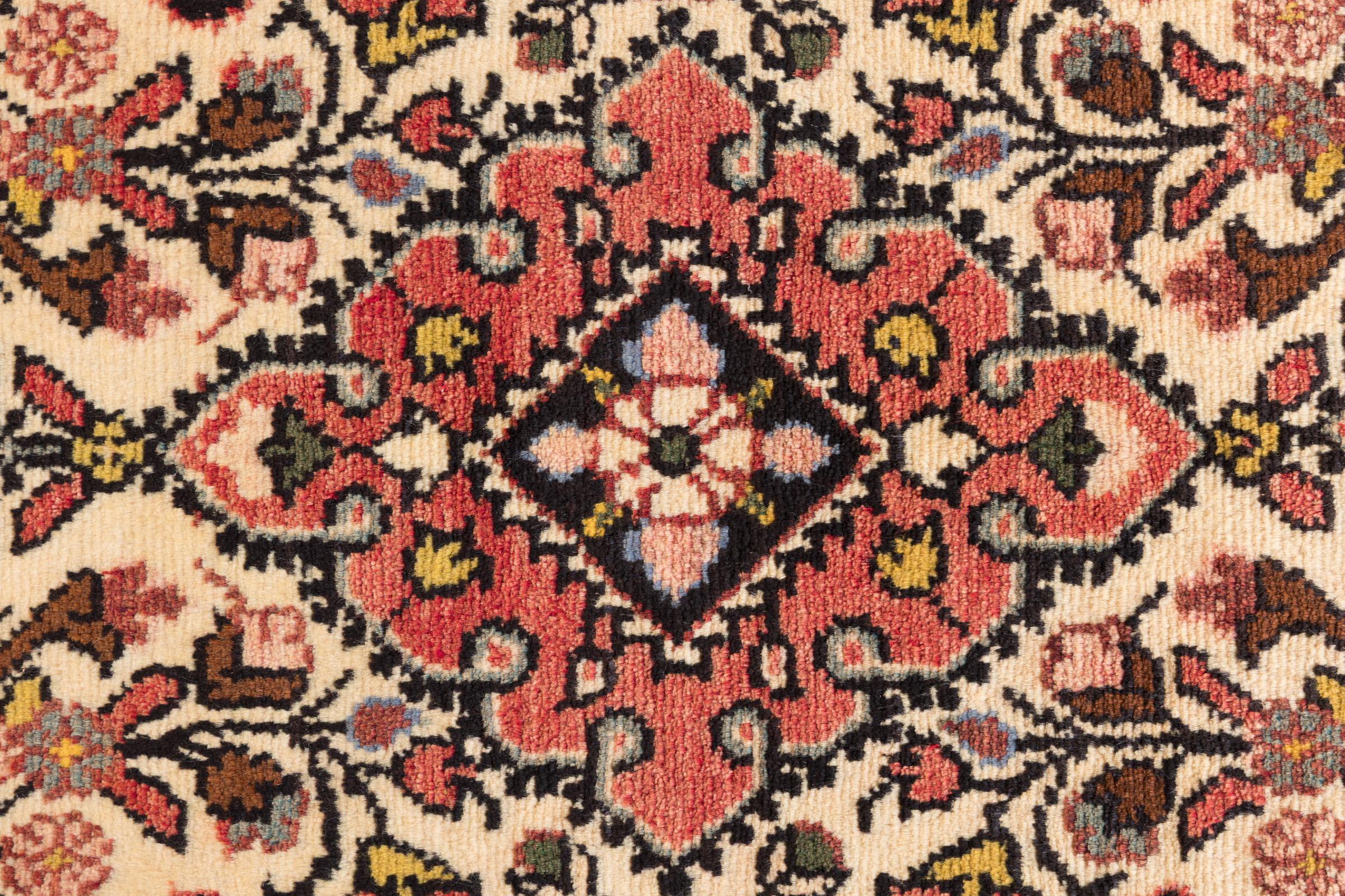 Carpet ID: 296456006961 Size: 123x80 cm Thickness: ap. 8 mm Knot density: 200 000 - 250 000 / m² Manufacturing: Knotted by hand Pile: Handspun wool Warp: Cotton Origin: Persia Age: New Weight: ap. 3 kg Also know as Huseinabad In stock: Unique - Only 1 in stock