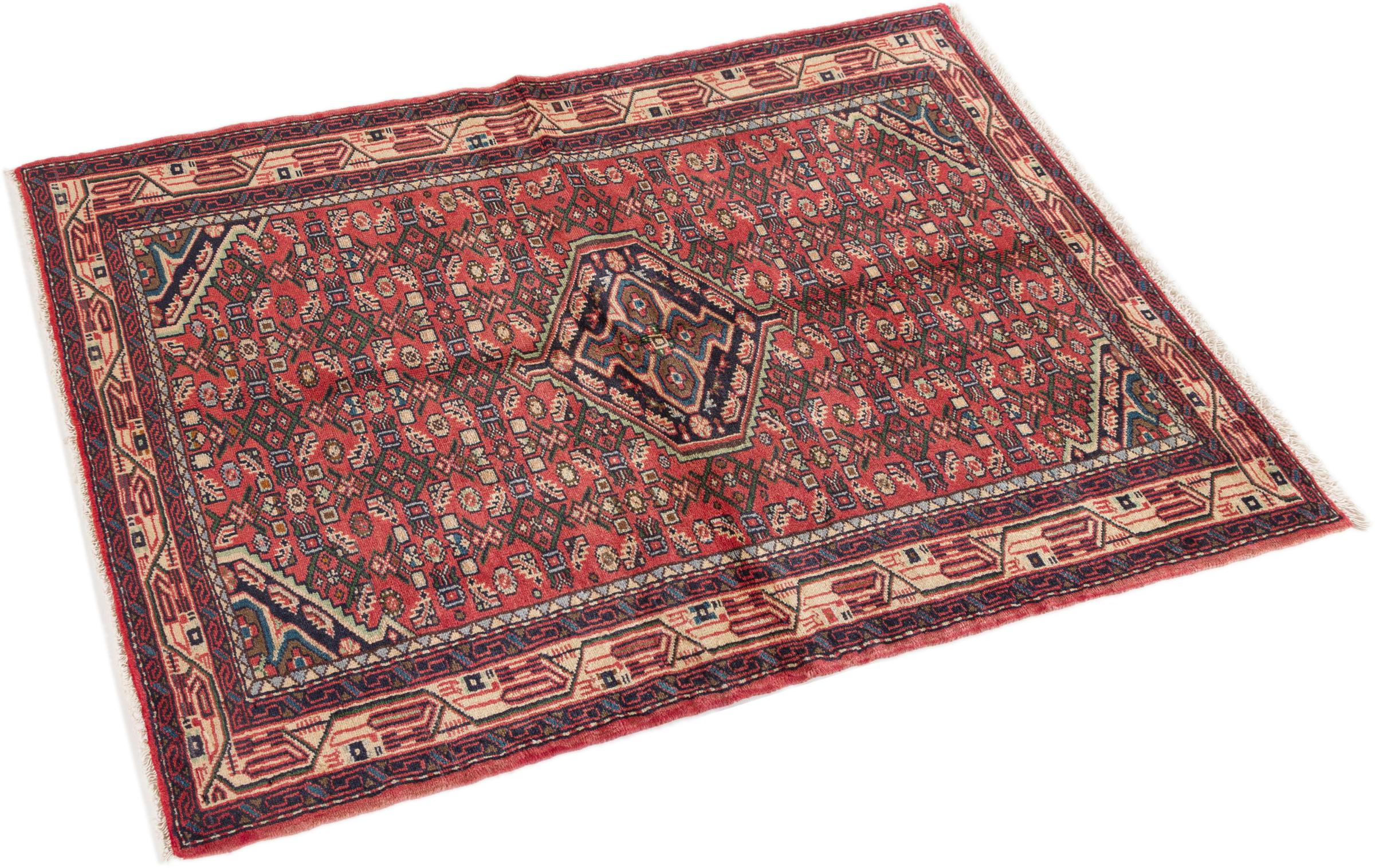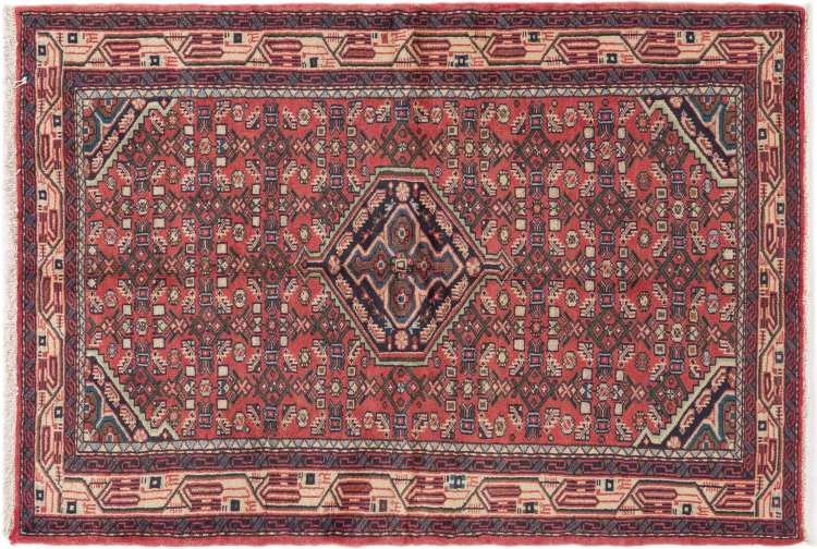 Carpet ID: 295939001476 Size: 146x99 cm Thickness: ap. 8 mm Knot density: 200 000 - 250 000 / m² Manufacturing: Knotted by hand Pile: Handspun wool Warp: Cotton Origin: Persia Age: New Weight: ap. 5 kg Also know as Huseinabad In stock: Unique - Only 1 in stock