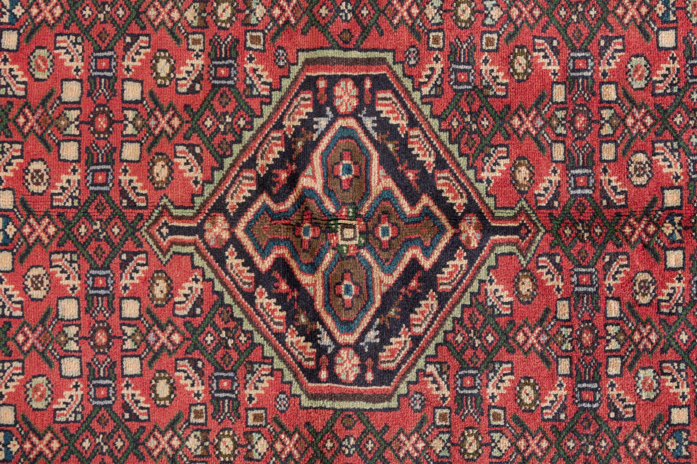 This rug belongs to village and nomadic rugs from Iran, formerly Persia. This type of rug is knotted by hand in smaller towns and villages in old tradition. Even nomads still knot Persian rugs in the open air. The rugs are knotted without a draft and completely from the mind. They are characterized by classical ornaments, which are arranged in straight and geometrical patterns. Thanks to their cultural-traditional origin, these rugs have a unique character that embodies ancient Persia.