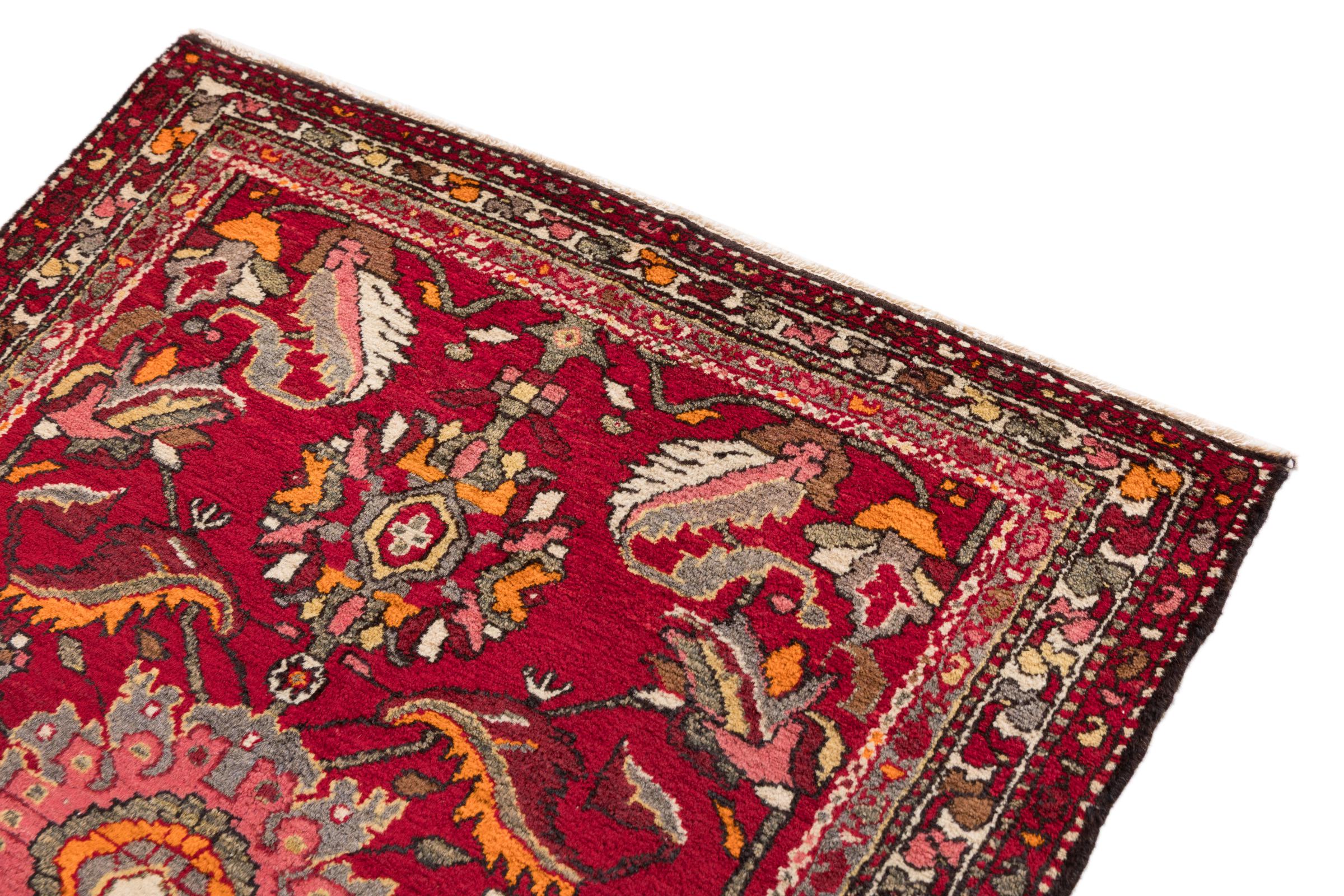 This rug belongs to village and nomadic rugs from Iran, formerly Persia. This type of rug is knotted by hand in smaller towns and villages in old tradition. Even nomads still knot Persian rugs in the open air. The rugs are knotted without a draft and completely from the mind. They are characterized by classical ornaments, which are arranged in straight and geometrical patterns. Thanks to their cultural-traditional origin, these rugs have a unique character that embodies ancient Persia.