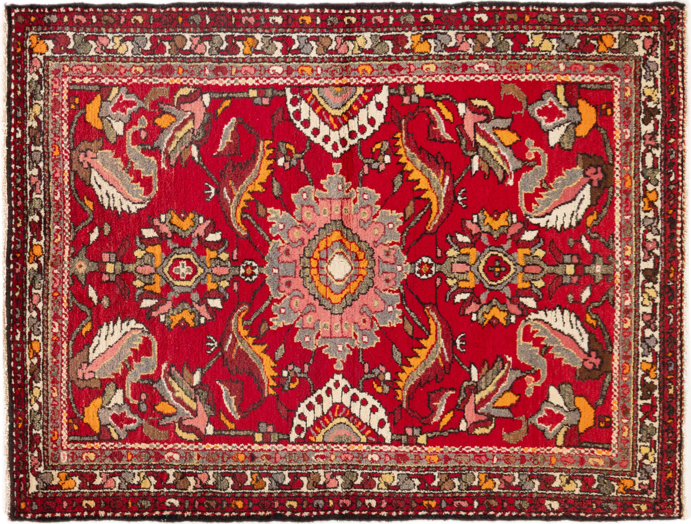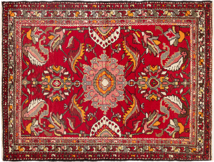 Carpet ID: 295866009070 Size: 150x110 cm Thickness: ap. 8 mm Knot density: 200 000 - 250 000 / m² Manufacturing: Knotted by hand Pile: Handspun wool Warp: Cotton Origin: Persia Age: Old, 30-50 years Weight: ap. 5 kg Also know as Huseinabad In stock: Unique - Only 1 in stock