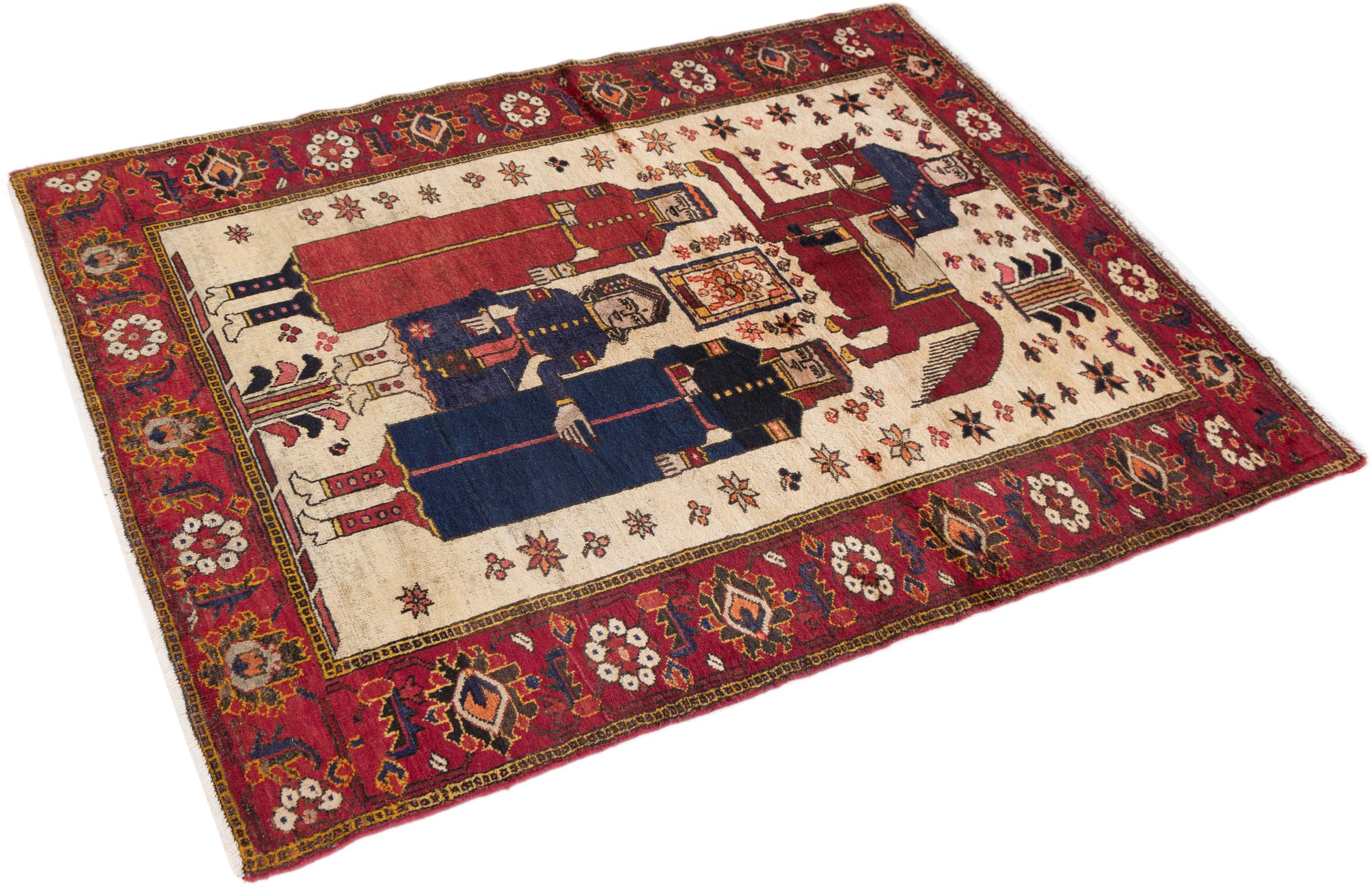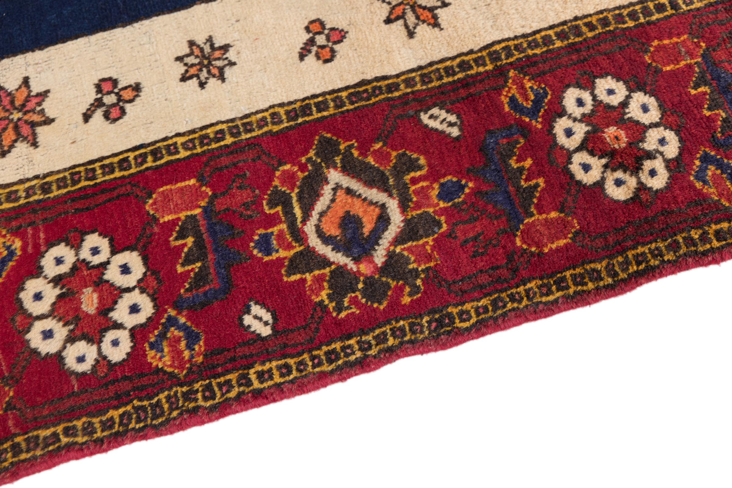 This rug belongs to village and nomadic rugs from Iran, formerly Persia. This type of rug is knotted by hand in smaller towns and villages in old tradition. Even nomads still knot Persian rugs in the open air. The rugs are knotted without a draft and completely from the mind. They are characterized by classical ornaments, which are arranged in straight and geometrical patterns. Thanks to their cultural-traditional origin, these rugs have a unique character that embodies ancient Persia.