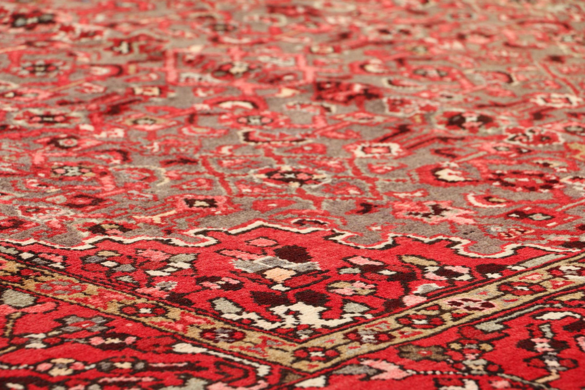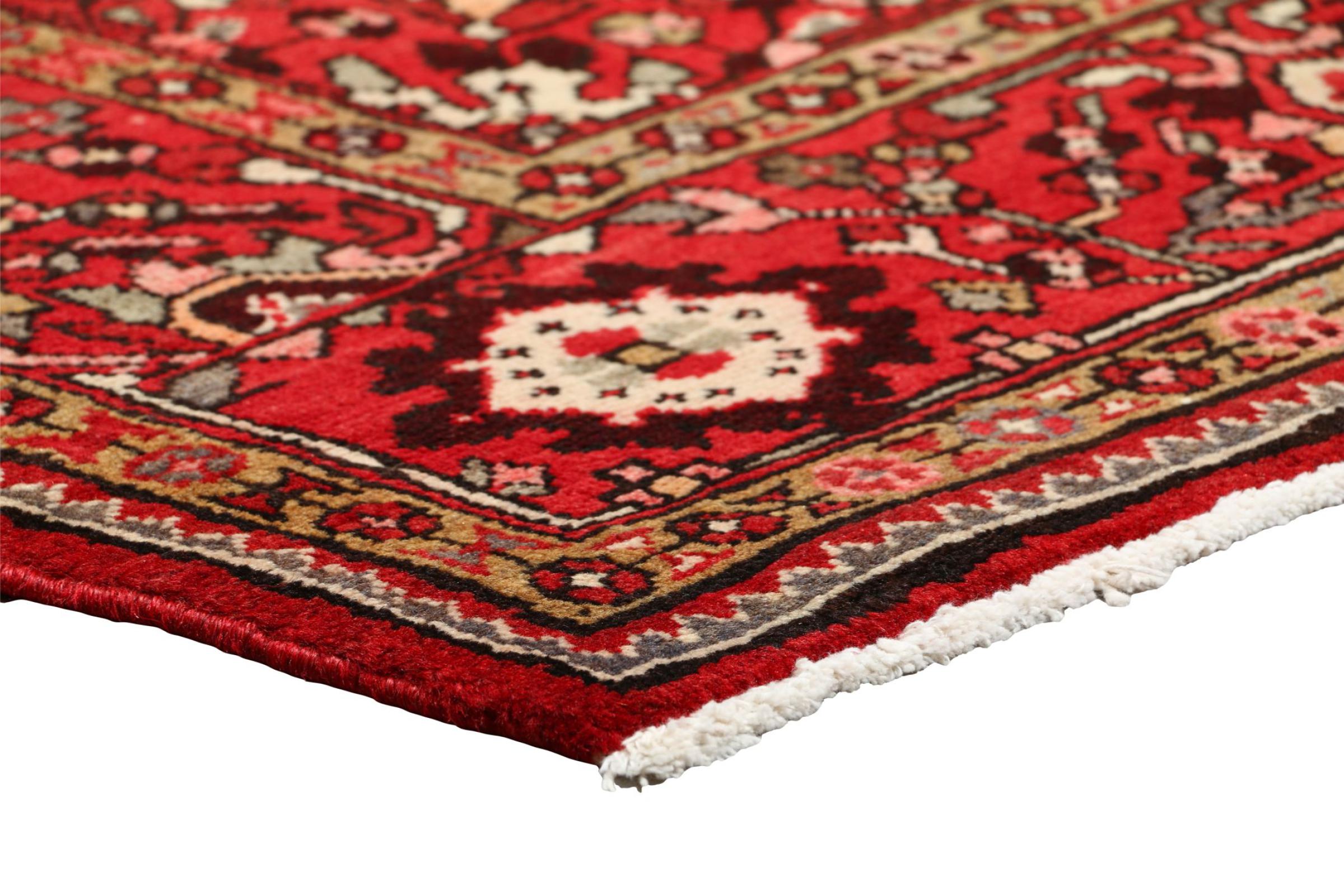 This Hamadan carpet has vivid and warm colours in combination with highly modern geometric patterns. A guaranteed enrichment for any interior. Because of the strong wefts used in the process of knotting Hamadans, this carpet is extremely durable. It has been knotted by hand in the city of Hamadan making this one a genuine Persian rug. The contemporary design is extremely popular.