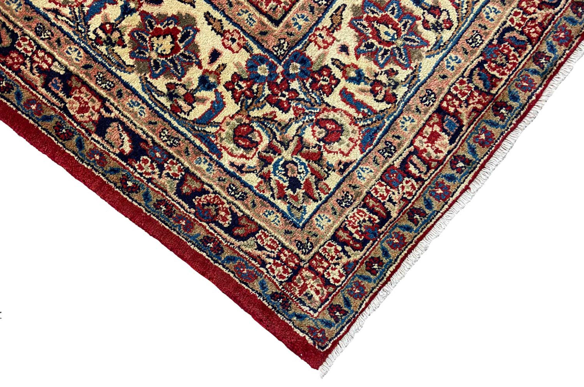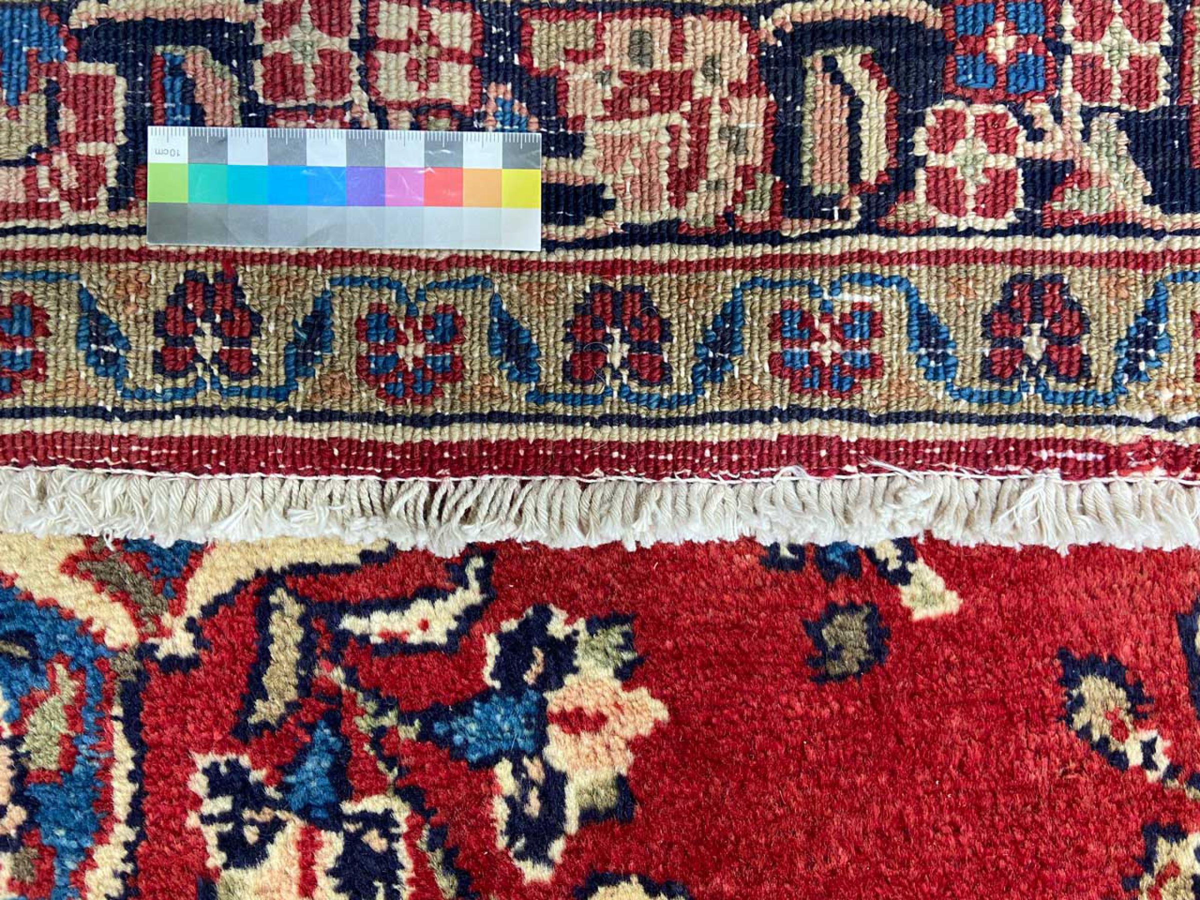 Carpet ID: 303141003485592 Size: 374x278 cm Thickness: ap. 8 mm Knot density: 128 000 - 160 000 / m² Manufacturing: Knotted by hand Pile: Handspun wool Warp: Cotton Origin: Persia Age: New Weight: ap. 36 kg Also know as Huseinabad In stock: Unique - Only 1 in stock