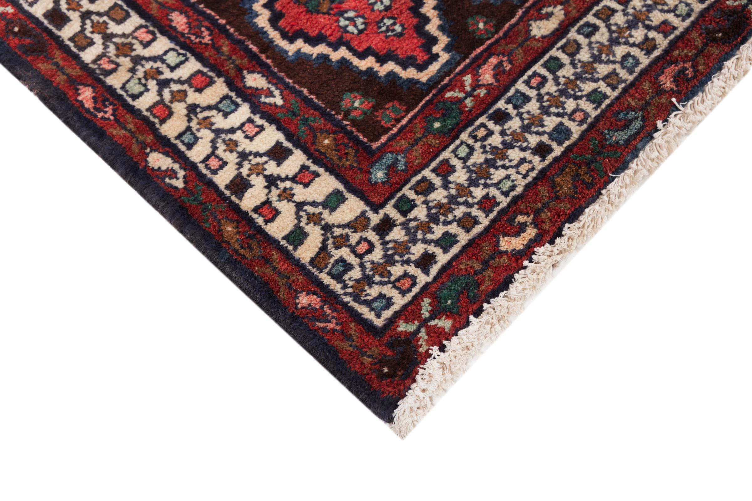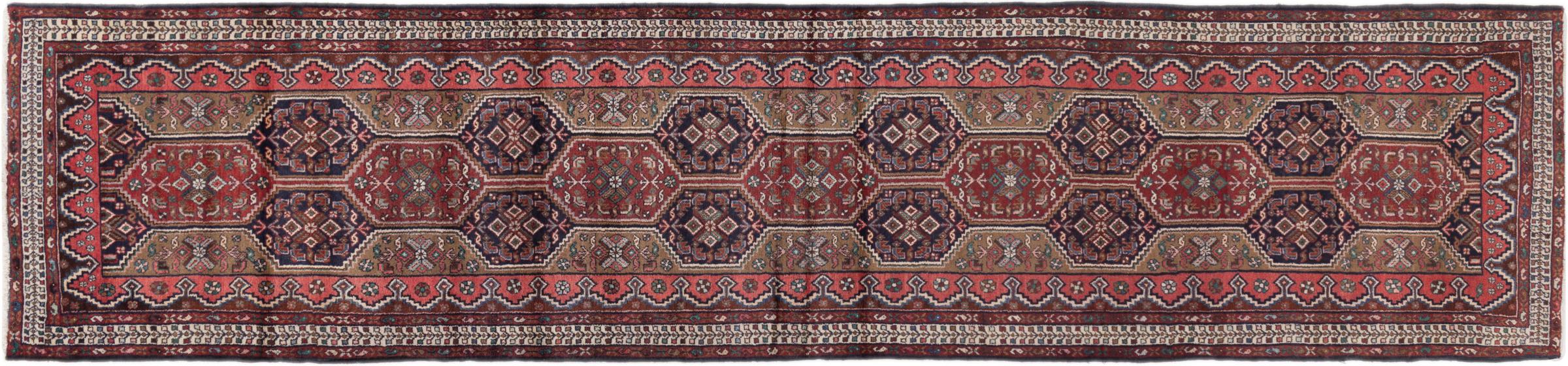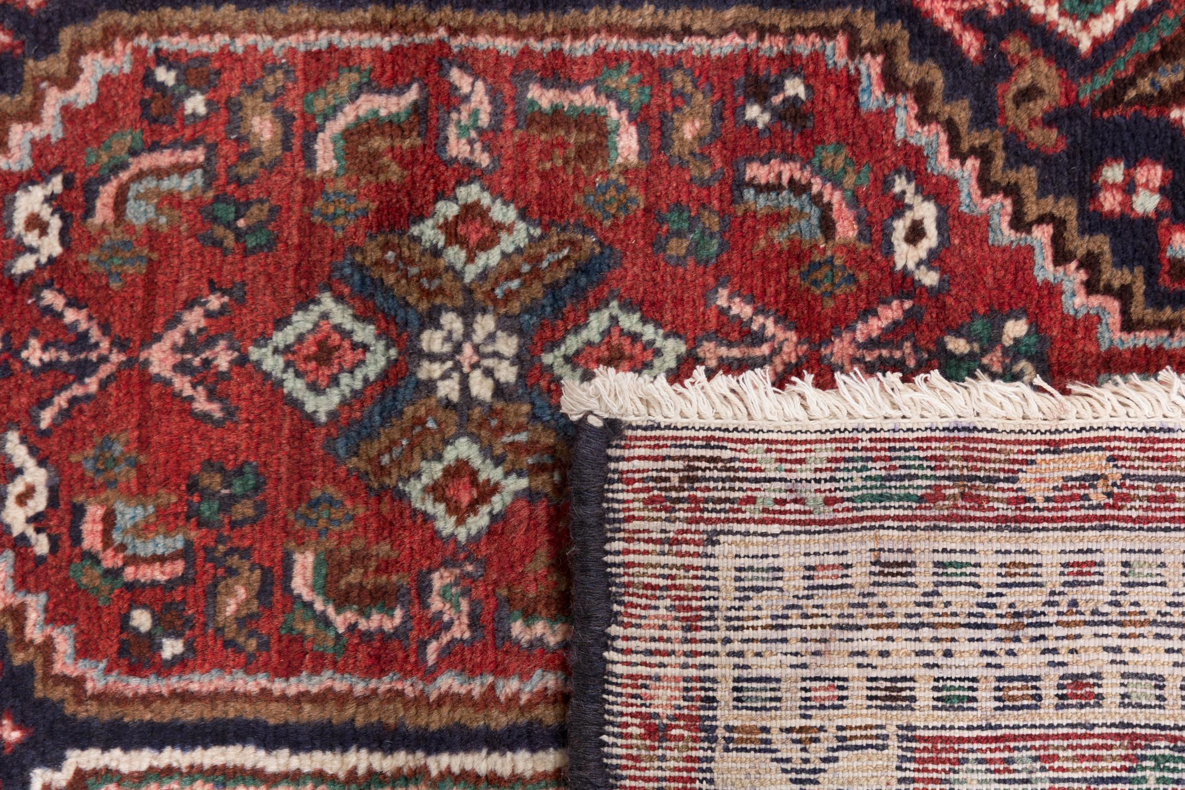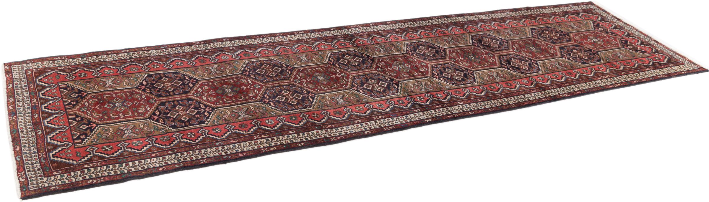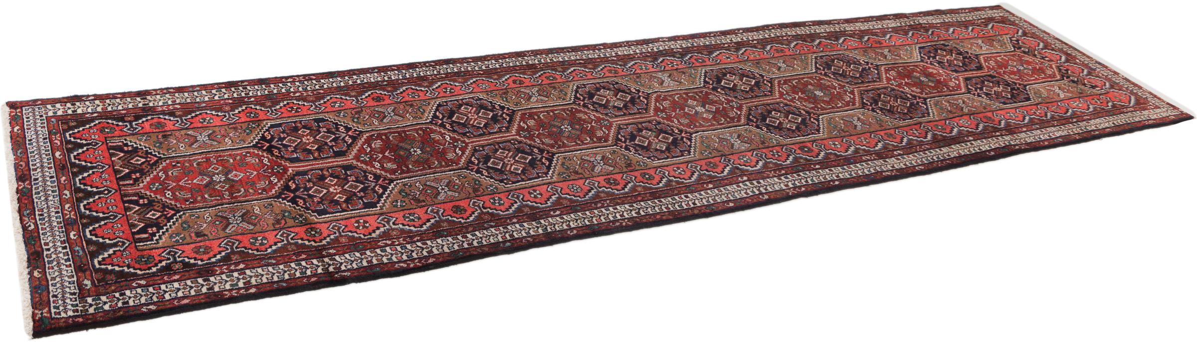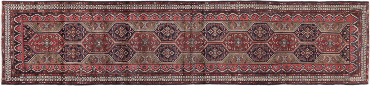 Carpet ID: 298536008572 Size: 485x110 cm Thickness: ap. 8 mm Knot density: 200 000 - 250 000 / m² Manufacturing: Knotted by hand Pile: Handspun wool Warp: Cotton Origin: Persia Age: Old/Semi antique, over 50 years Weight: ap. 19 kg Also know as Huseinabad In stock: Unique - Only 1 in stock