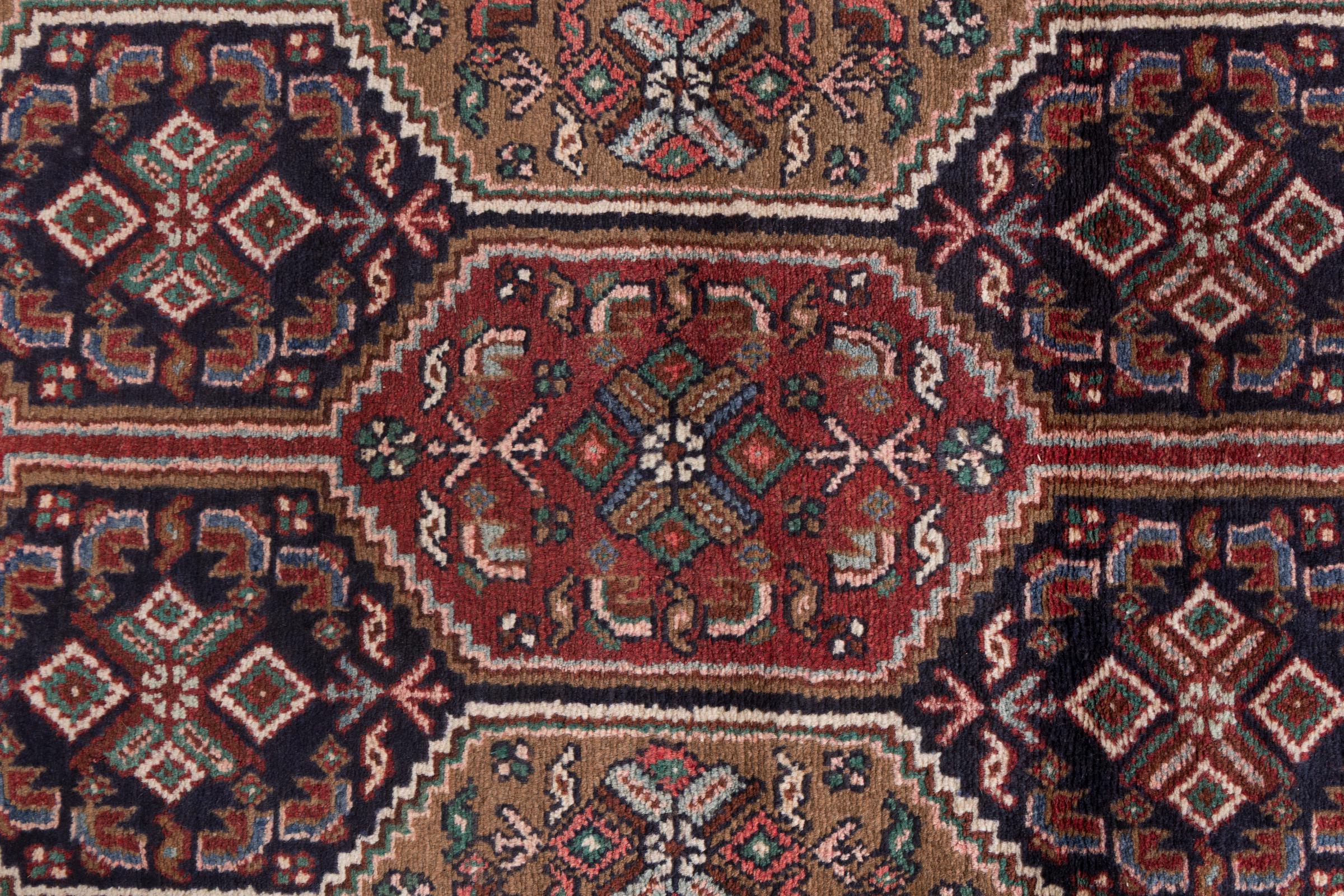 This rug belongs to village and nomadic rugs from Iran, formerly Persia. This type of rug is knotted by hand in smaller towns and villages in old tradition. Even nomads still knot Persian rugs in the open air. The rugs are knotted without a draft and completely from the mind. They are characterized by classical ornaments, which are arranged in straight and geometrical patterns. Thanks to their cultural-traditional origin, these rugs have a unique character that embodies ancient Persia.