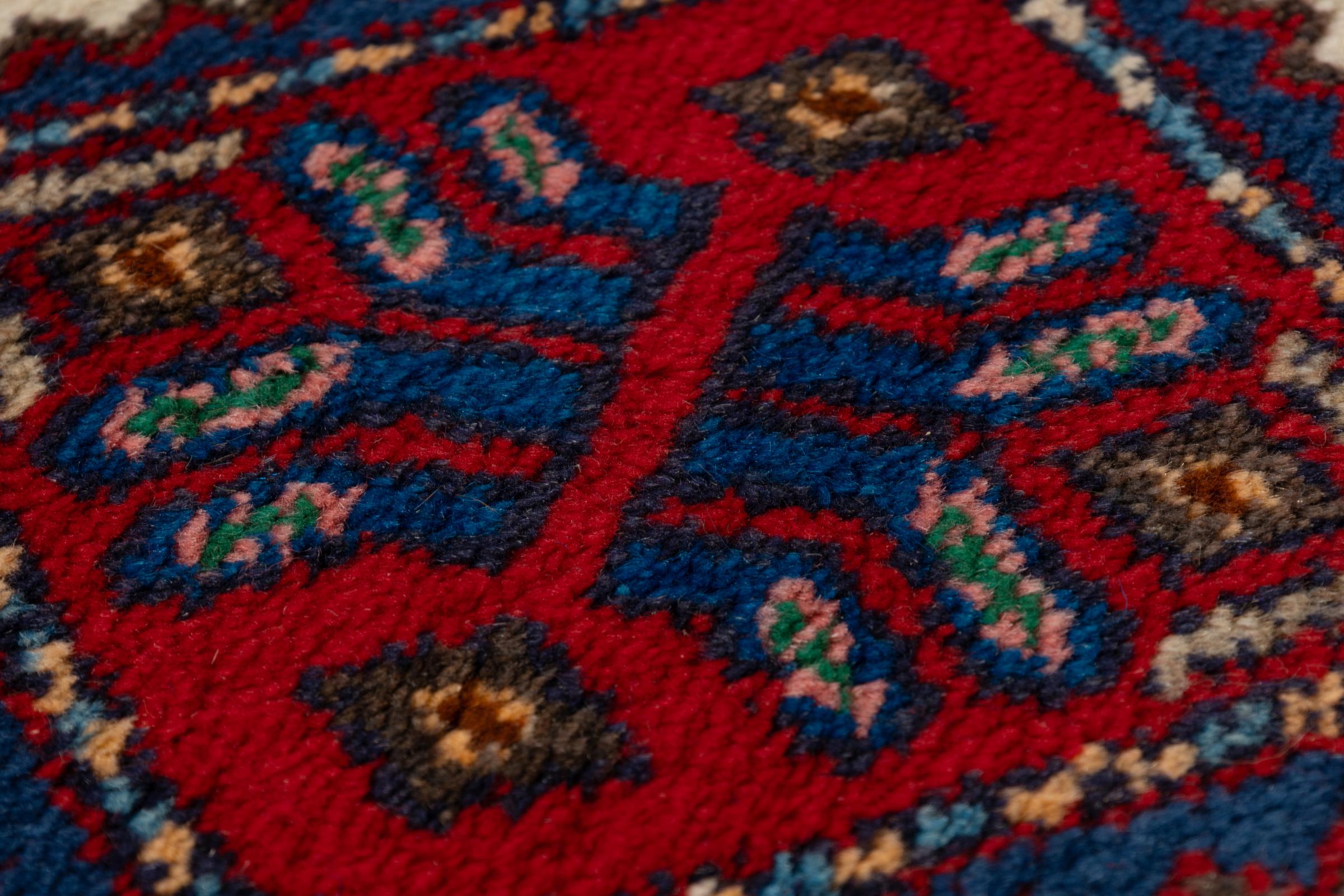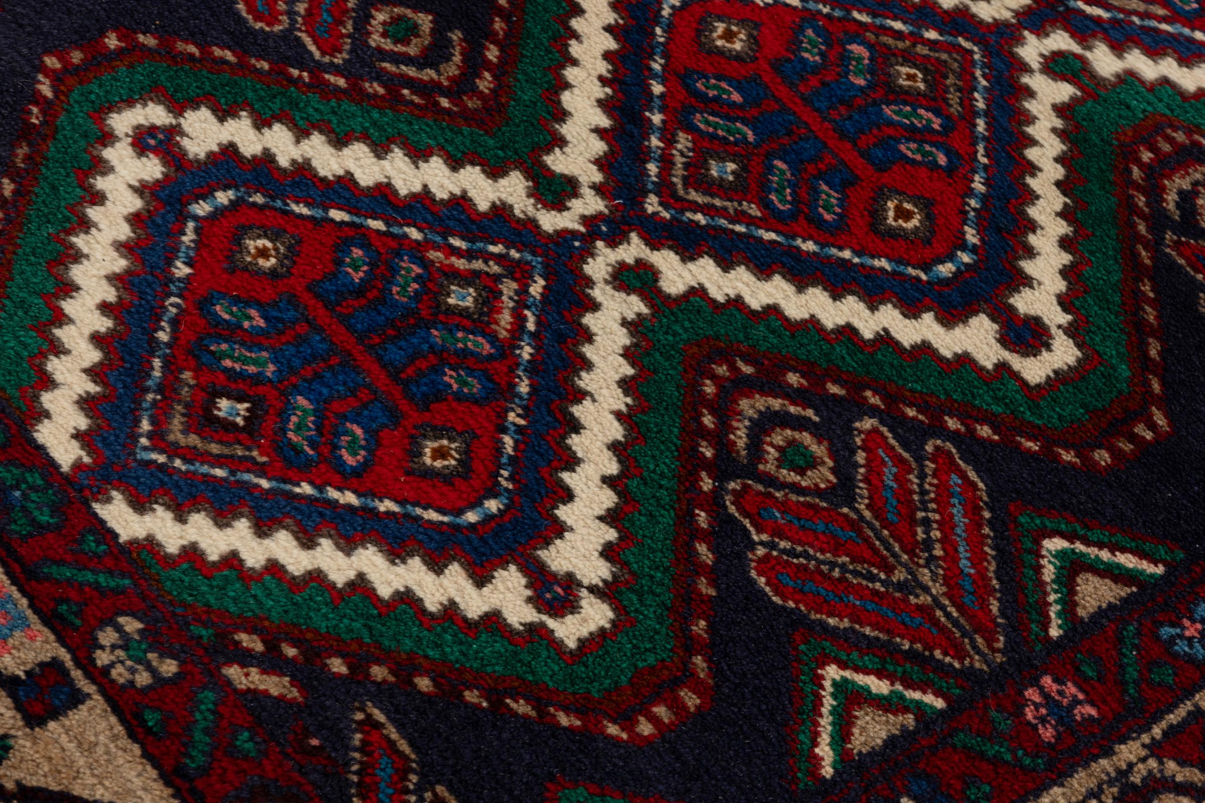 This rug belongs to village and nomadic rugs from Iran, formerly Persia. This type of rug is knotted by hand in smaller towns and villages in old tradition. Even nomads still knot Persian rugs in the open air. The rugs are knotted without a draft and completely from the mind. They are characterized by classical ornaments, which are arranged in straight and geometrical patterns. Thanks to their cultural-traditional origin, these rugs have a unique character that embodies ancient Persia.