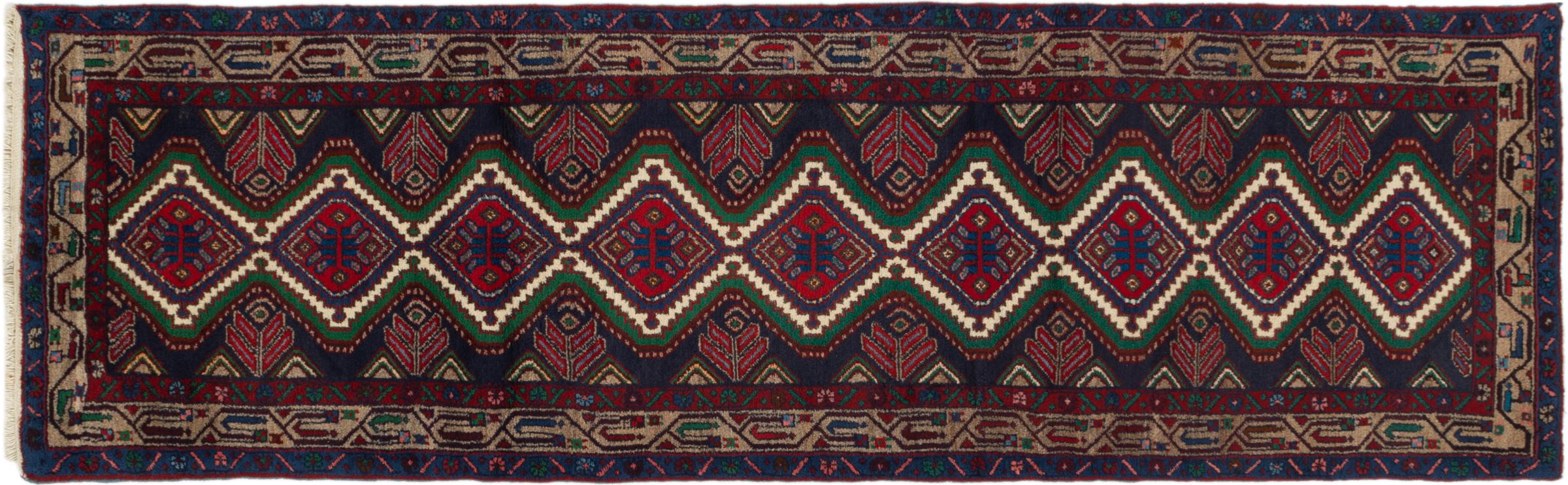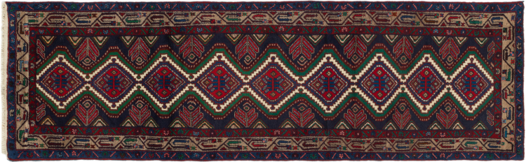 Carpet ID: 297066005135929 Size: 306x93 cm Thickness: ap. 8 mm Knot density: 128 000 - 160 000 / m² Manufacturing: Knotted by hand Pile: Sheep wool Warp: Cotton Origin: Persia Age: 30-50 years (New) Weight: ap. 10 kg Also know as Huseinabad In stock: Unique - Only 1 in stock