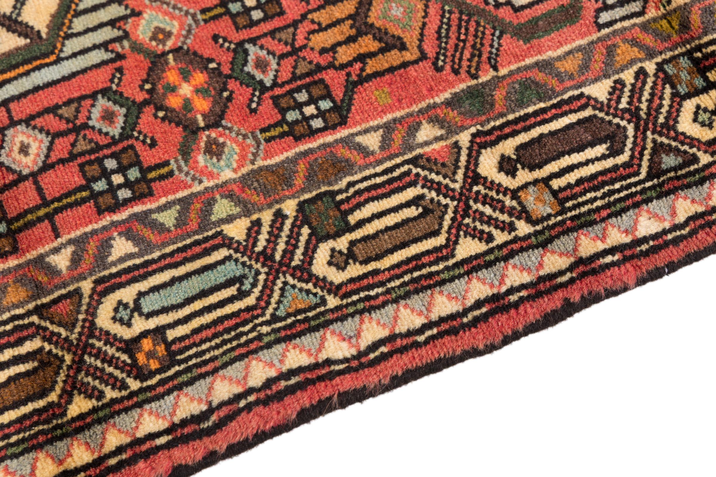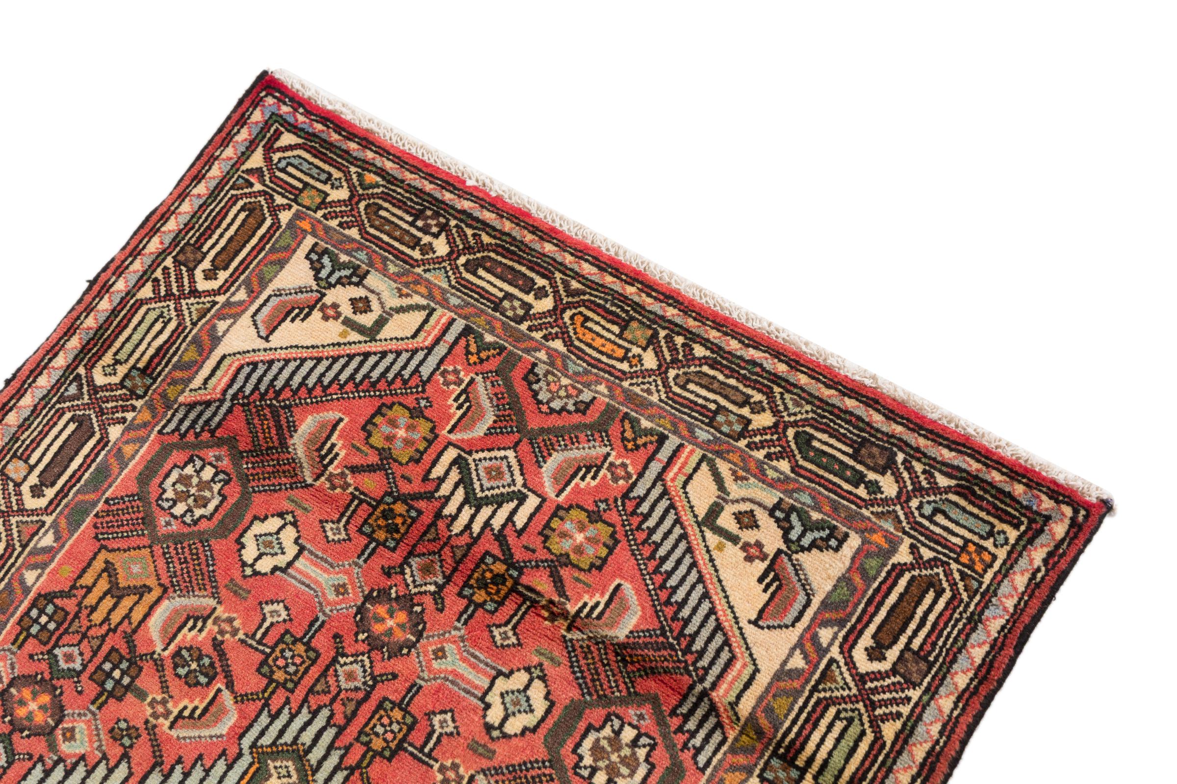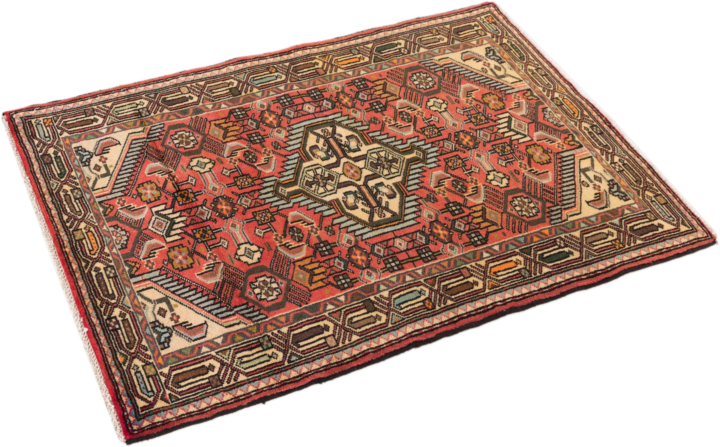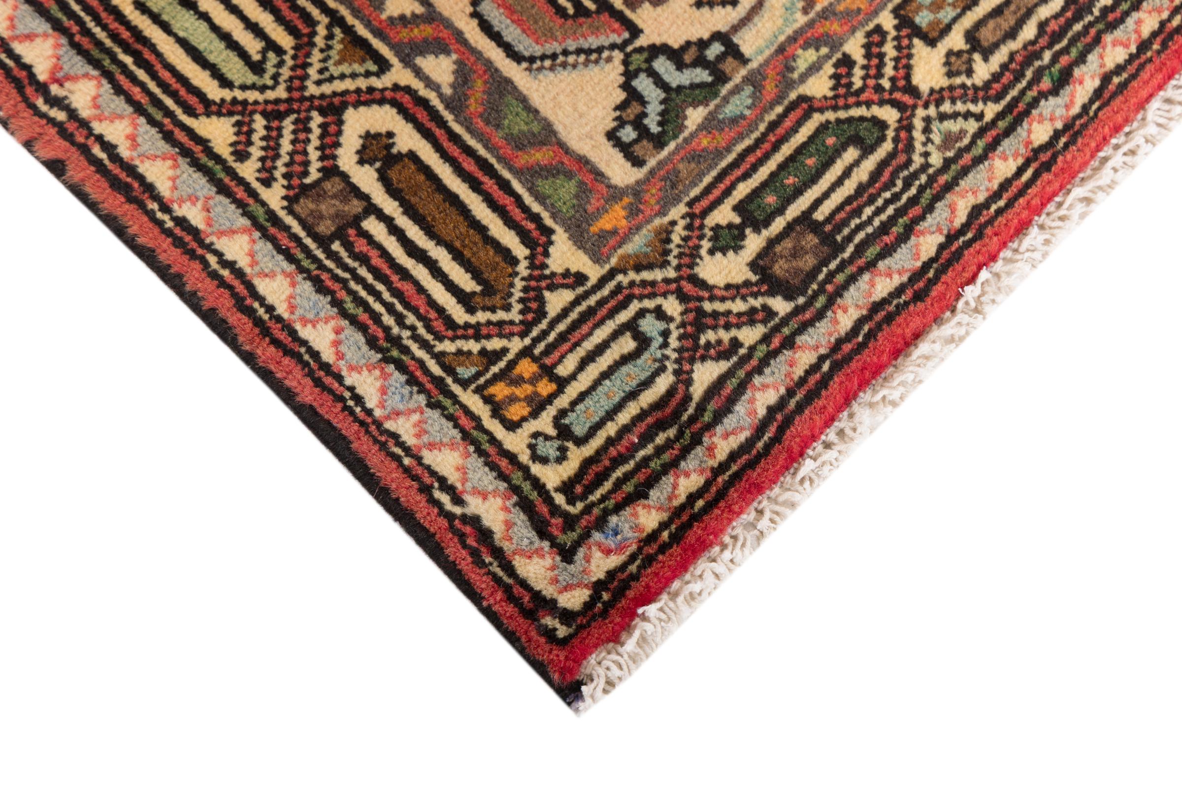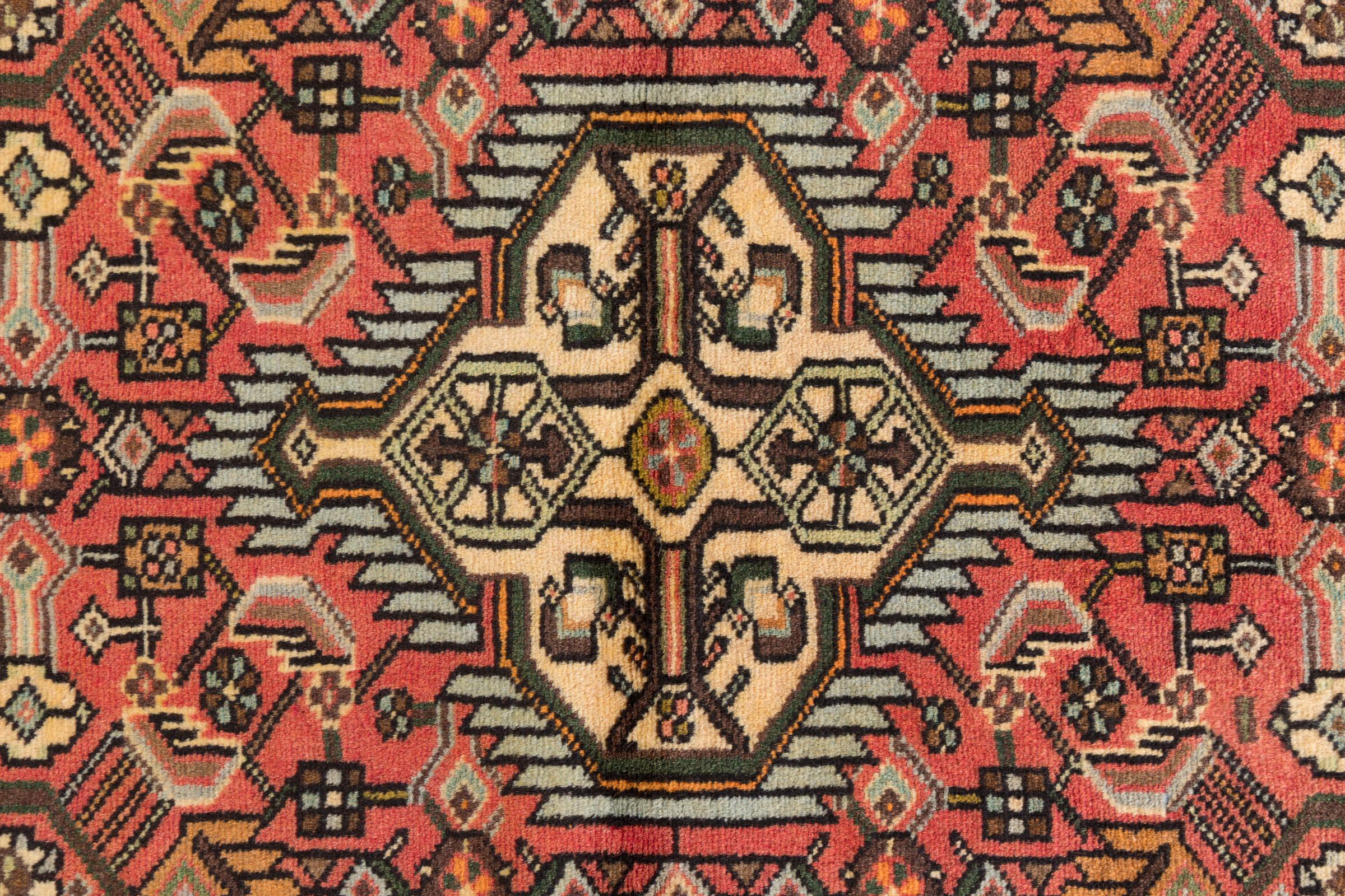 This rug belongs to village and nomadic rugs from Iran, formerly Persia. This type of rug is knotted by hand in smaller towns and villages in old tradition. Even nomads still knot Persian rugs in the open air. The rugs are knotted without a draft and completely from the mind. They are characterized by classical ornaments, which are arranged in straight and geometrical patterns. Thanks to their cultural-traditional origin, these rugs have a unique character that embodies ancient Persia.