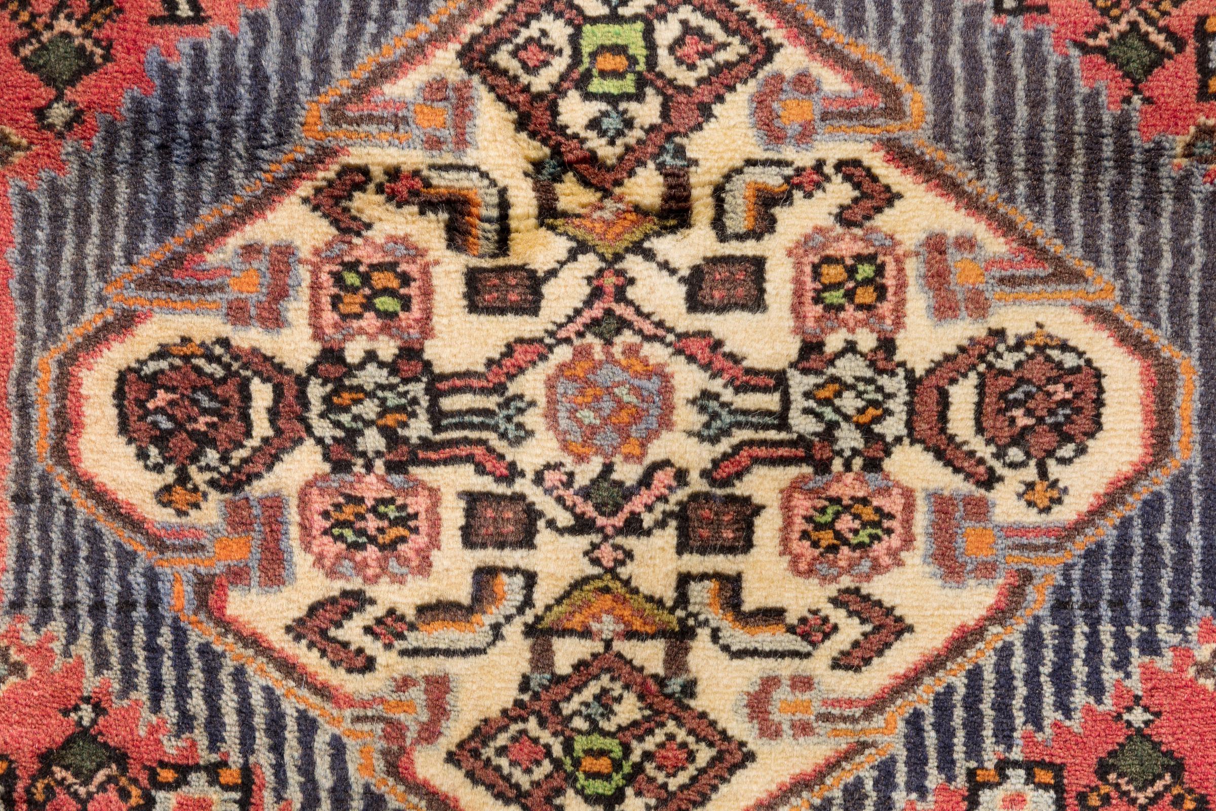This rug belongs to village and nomadic rugs from Iran, formerly Persia. This type of rug is knotted by hand in smaller towns and villages in old tradition. Even nomads still knot Persian rugs in the open air. The rugs are knotted without a draft and completely from the mind. They are characterized by classical ornaments, which are arranged in straight and geometrical patterns. Thanks to their cultural-traditional origin, these rugs have a unique character that embodies ancient Persia.
