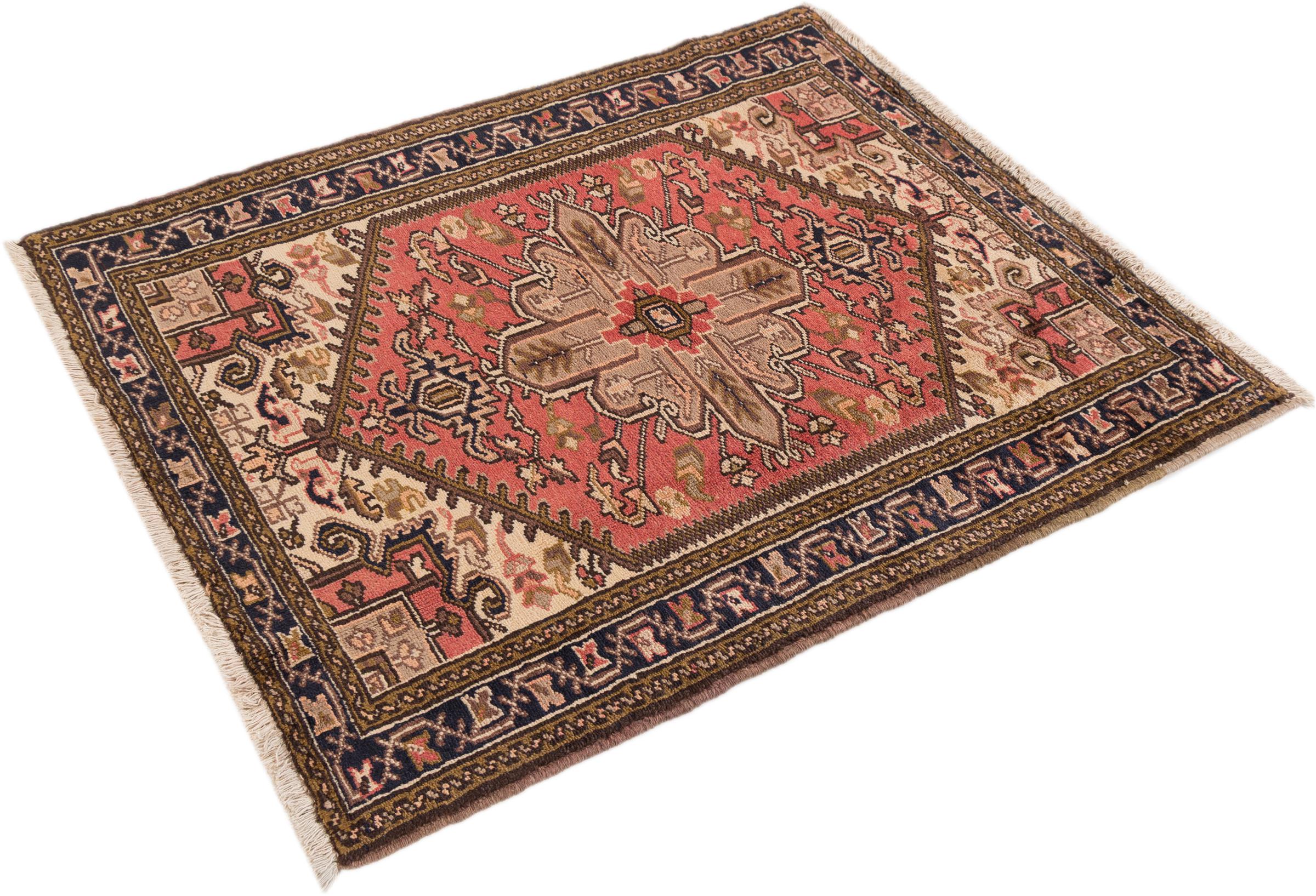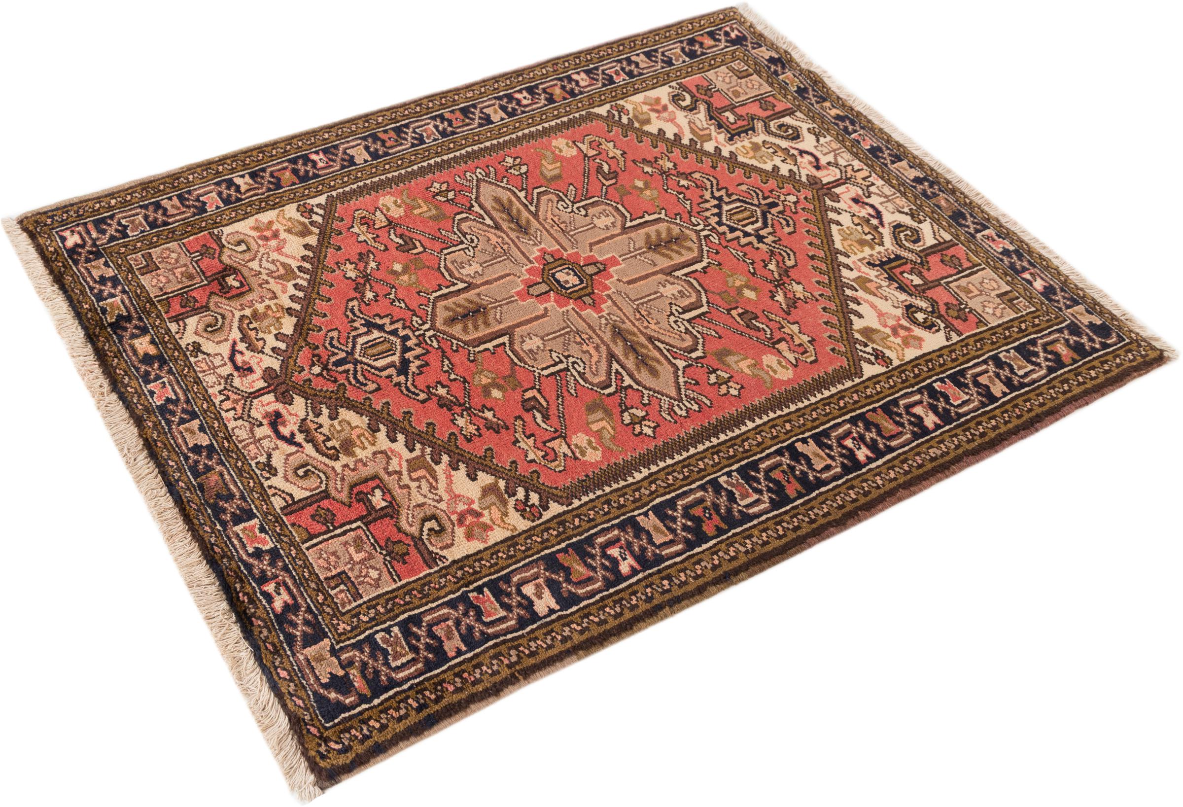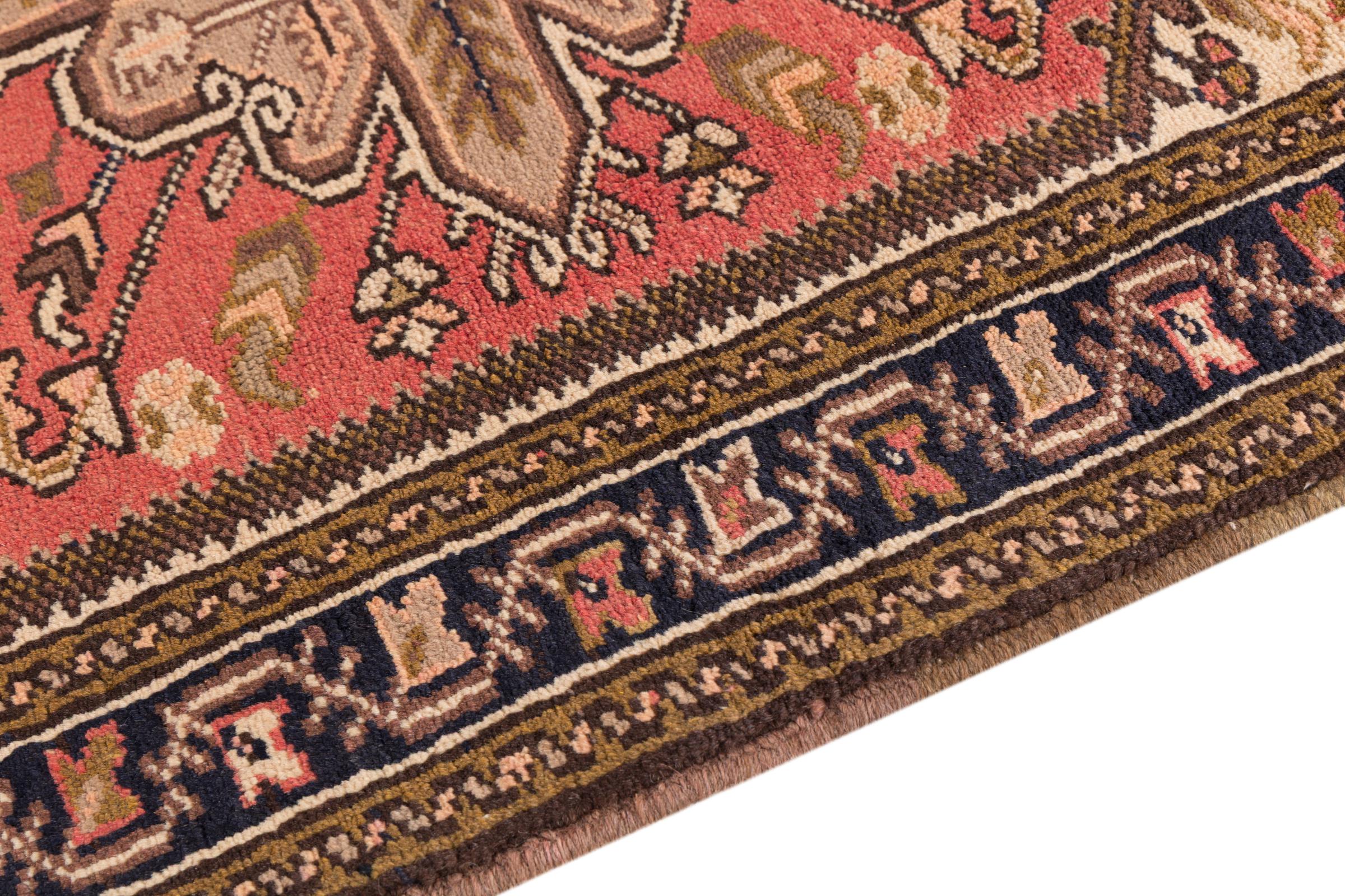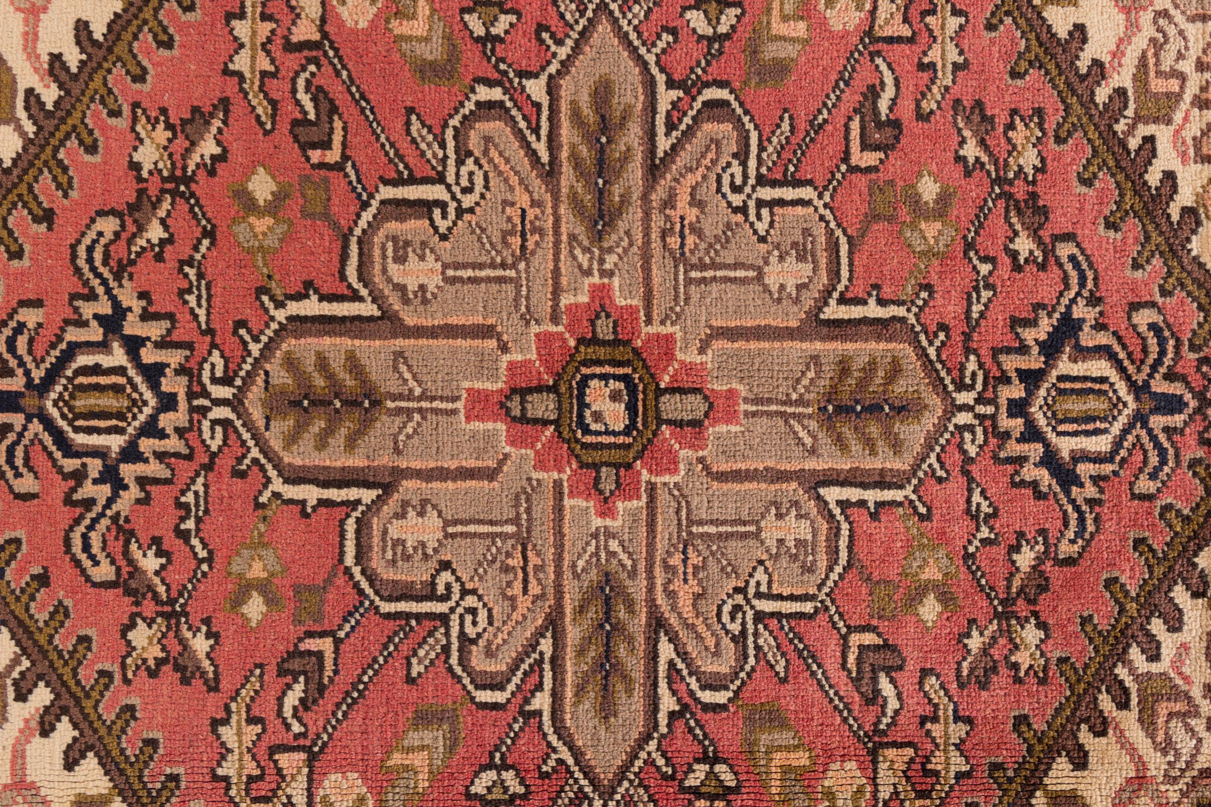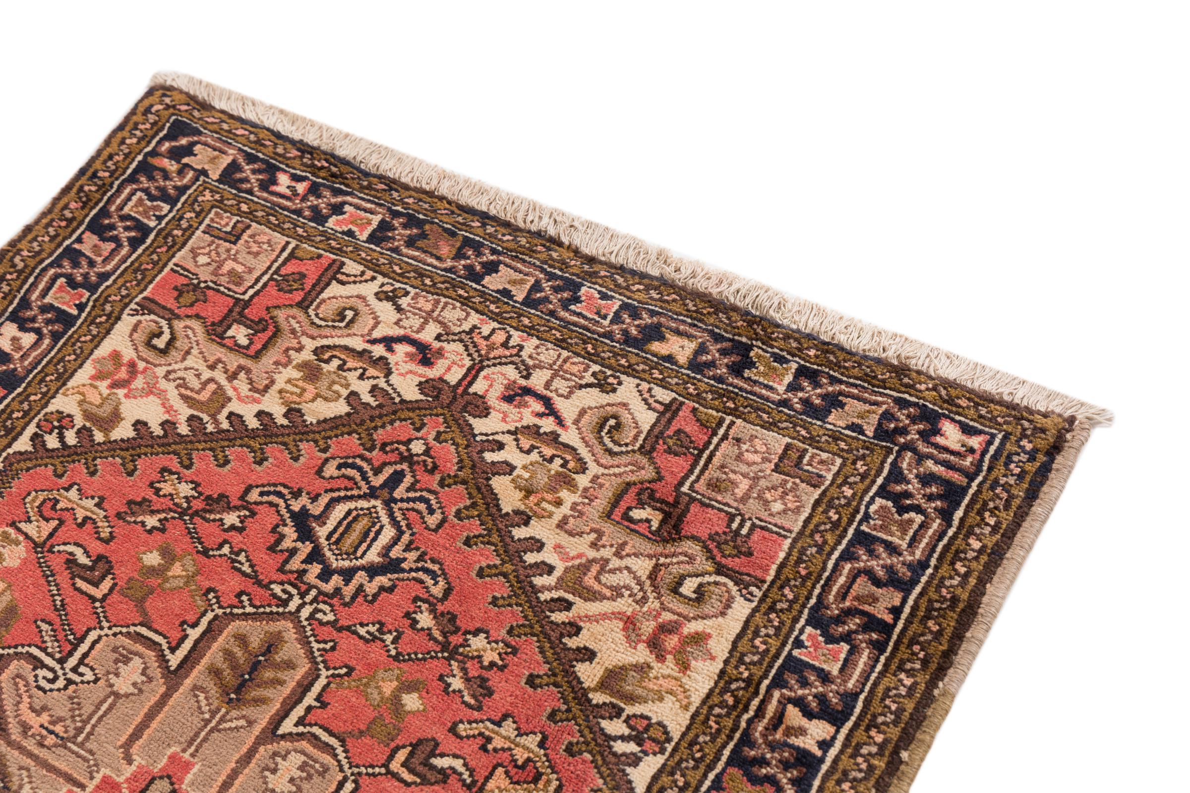 This Heriz carpet is a beautiful example of Persian carpet craftsmanship. Its rustic design is a testament to its durability. It was hand-knotted in the city of Heriz, which is located near Tabriz in north-west Iran. Anyone looking for a Persian rug that will give pleasure for a long time and is highly modern will love this Heriz. The ornaments of Heriz rugs are extremely popular today and are seen as very modern. You will never give up a rug like this again.