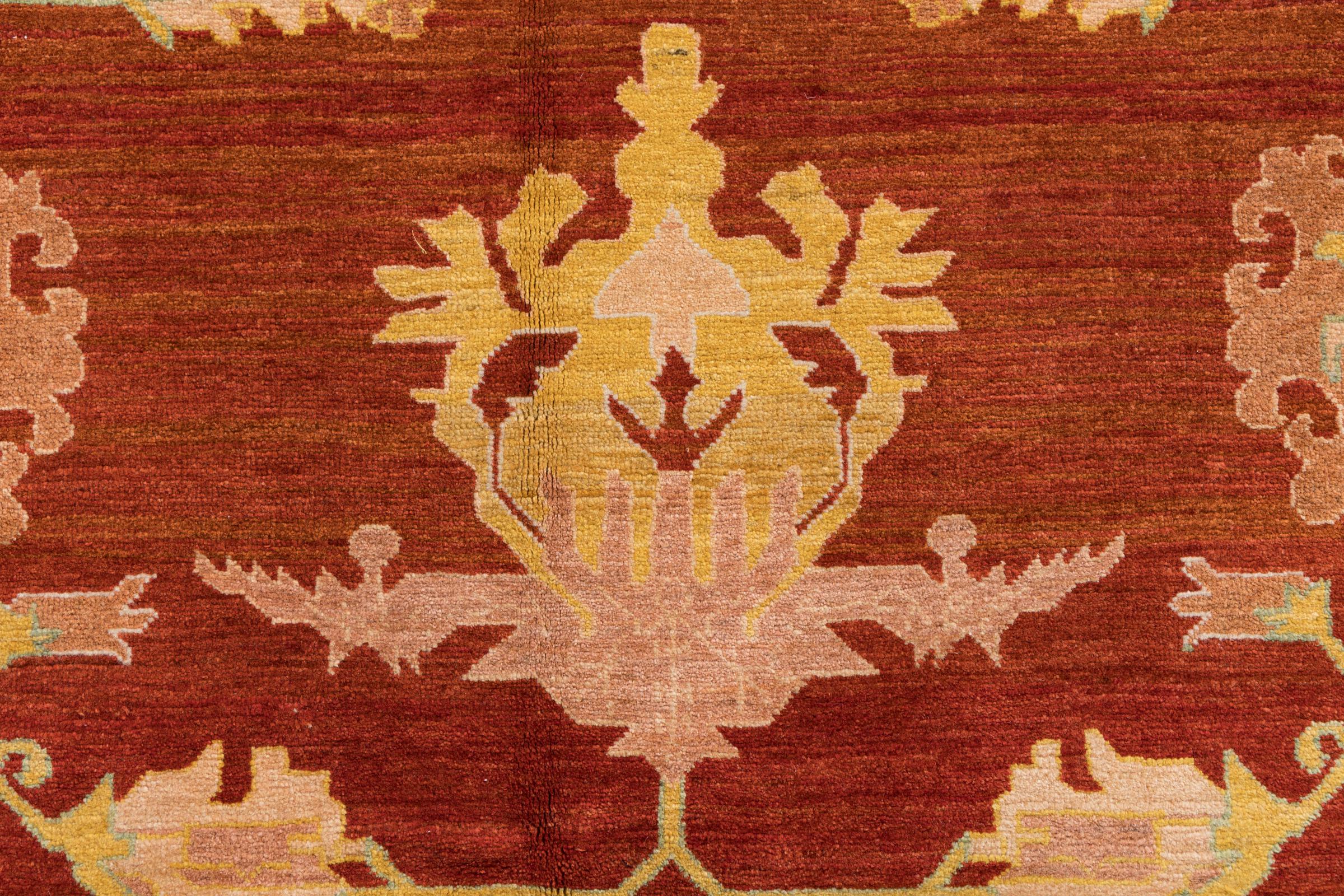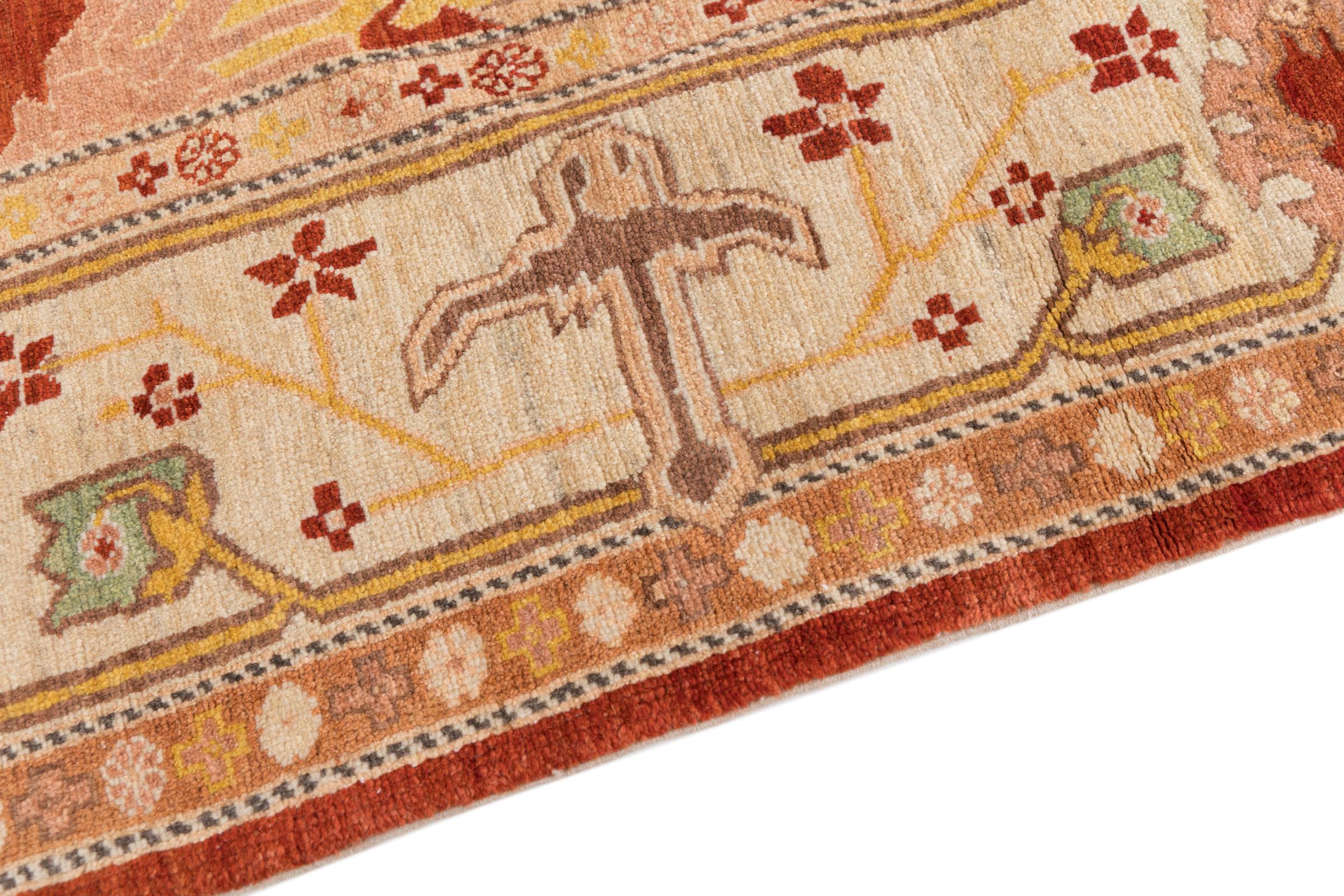 This Heriz carpet is a beautiful example of Persian carpet craftsmanship. Its rustic design is a testament to its durability. It was hand-knotted in the city of Heriz, which is located near Tabriz in north-west Iran. Anyone looking for a Persian rug that will give pleasure for a long time and is highly modern will love this Heriz. The ornaments of Heriz rugs are extremely popular today and are seen as very modern. You will never give up a rug like this again.