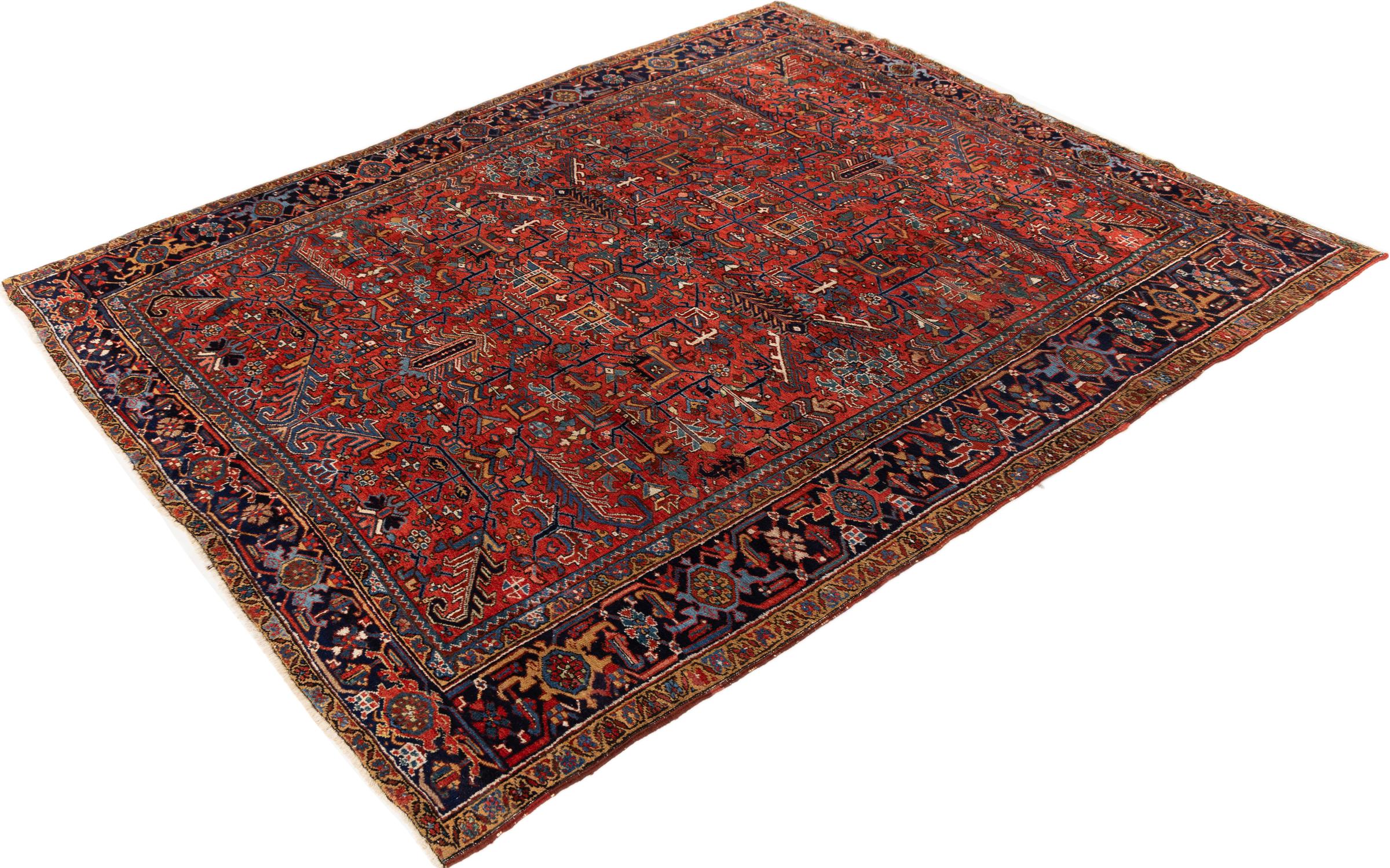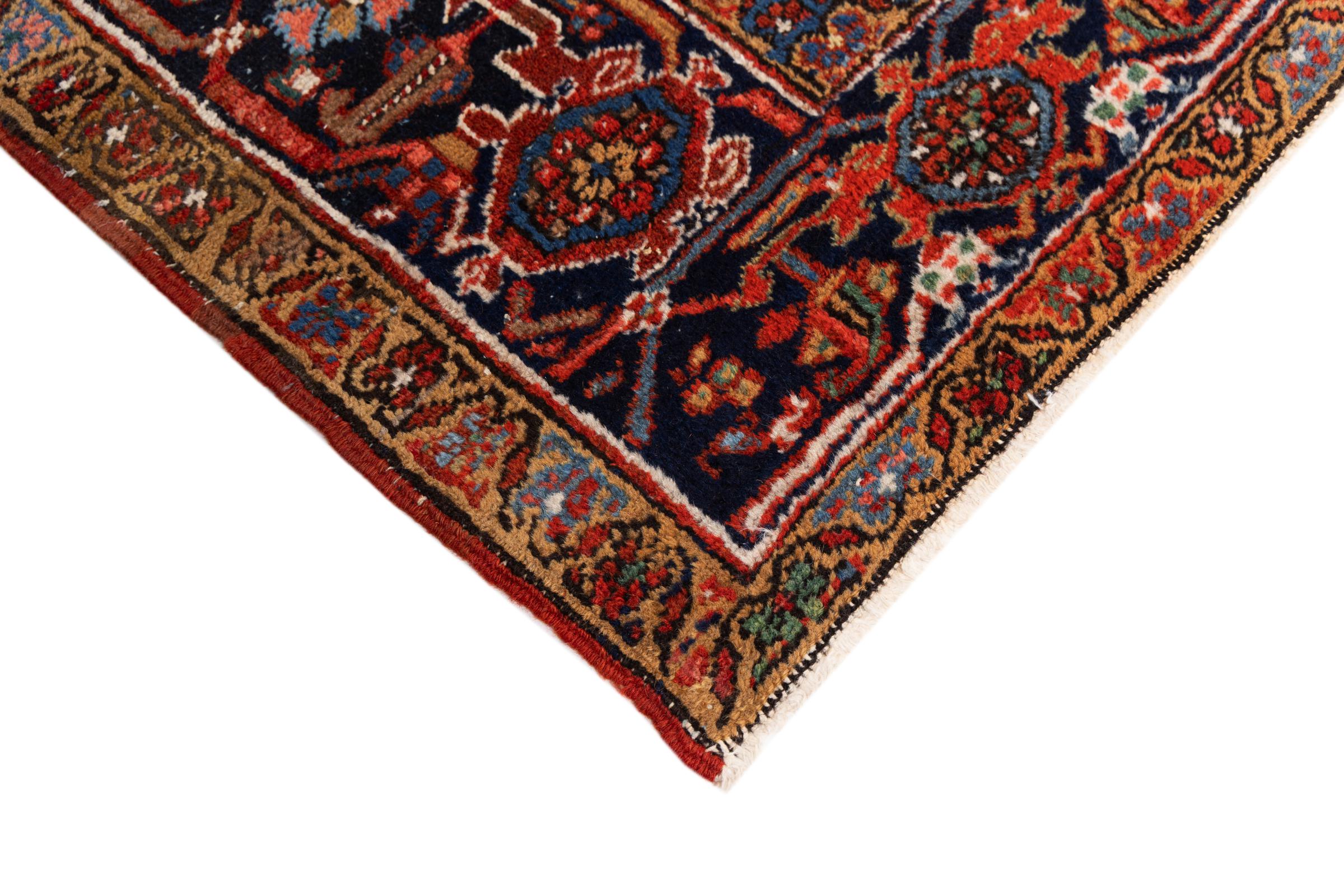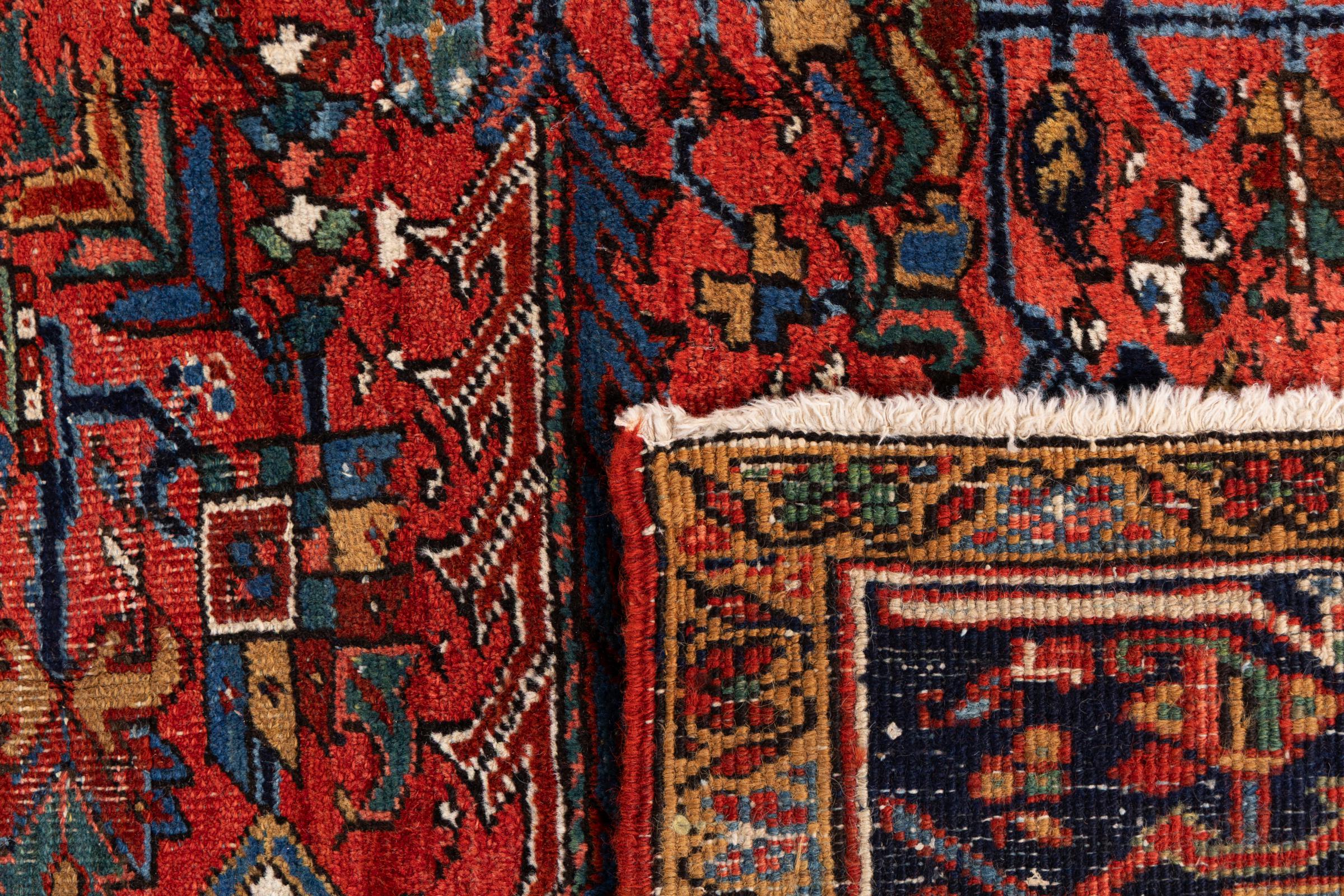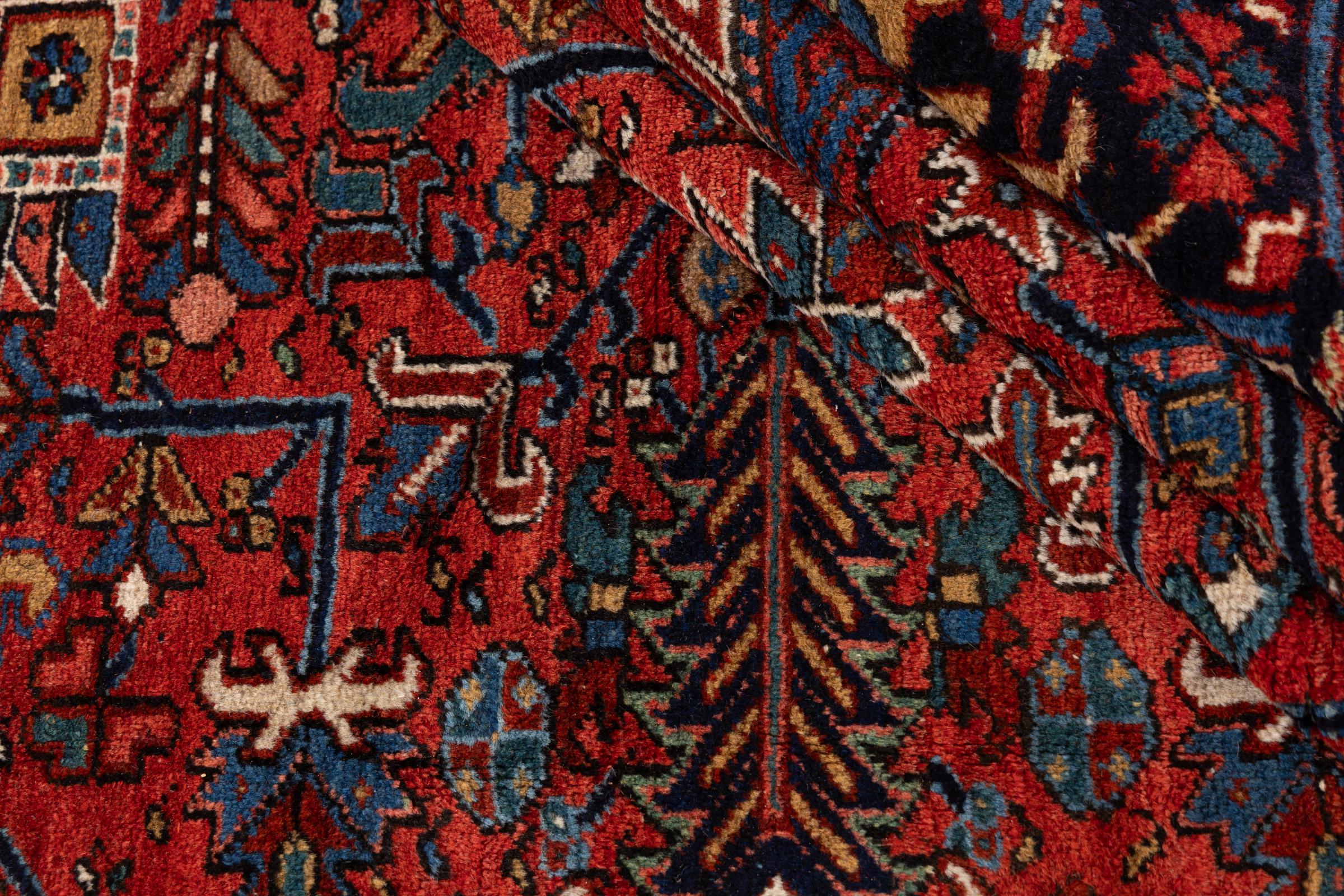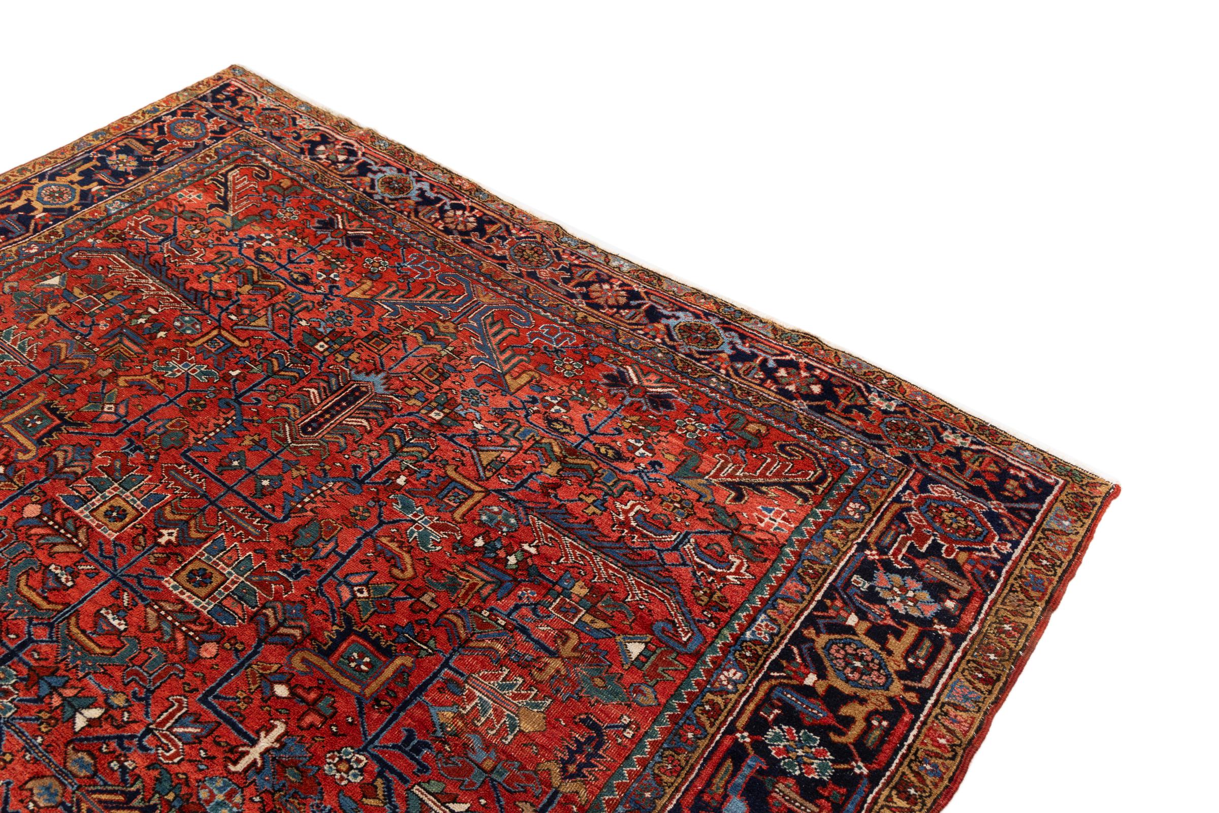 This Heriz carpet is a beautiful example of Persian carpet craftsmanship. Its rustic design is a testament to its durability. It was hand-knotted in the city of Heriz, which is located near Tabriz in north-west Iran. Anyone looking for a Persian rug that will give pleasure for a long time and is highly modern will love this Heriz. The ornaments of Heriz rugs are extremely popular today and are seen as very modern. You will never give up a rug like this again.