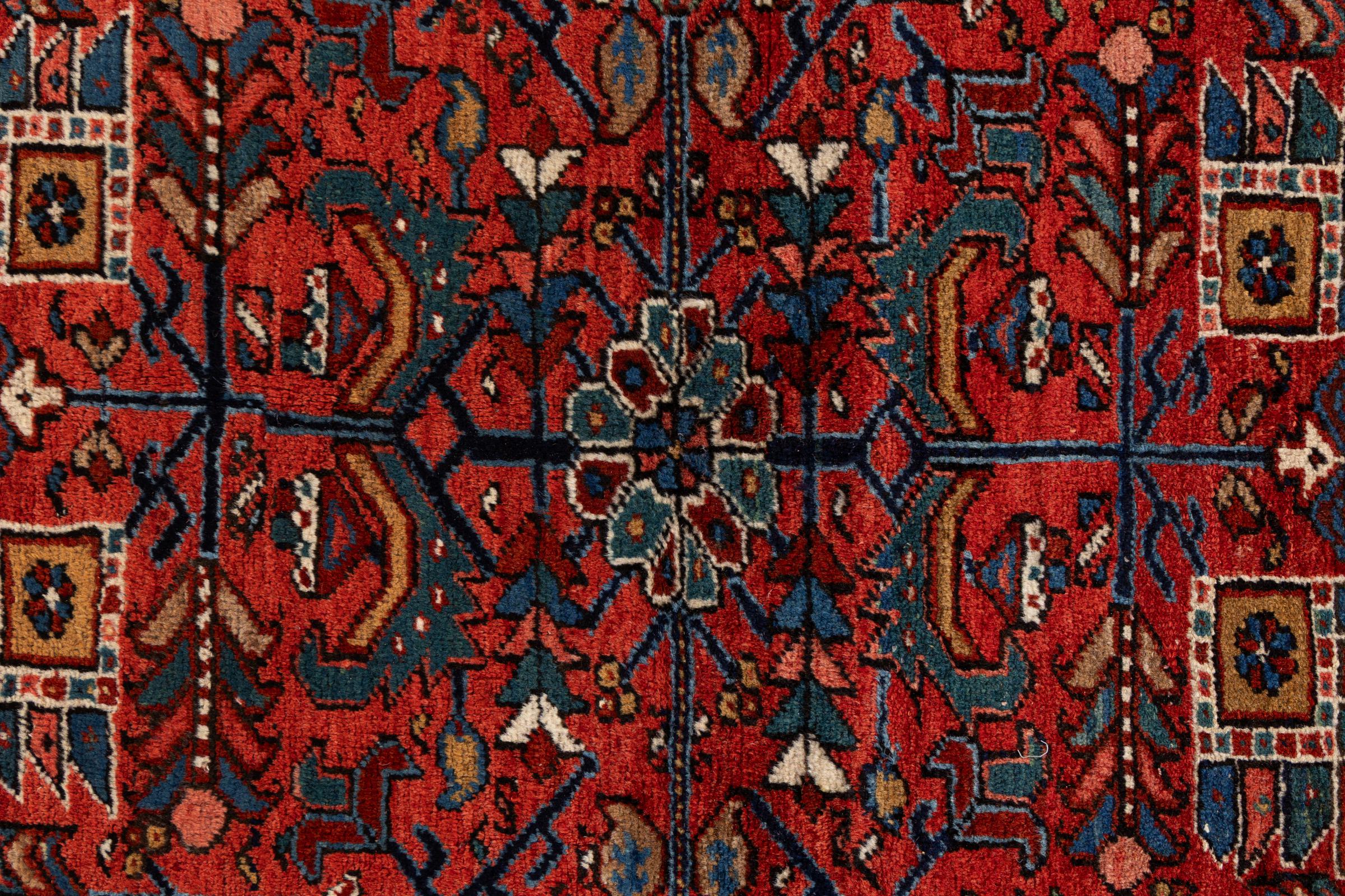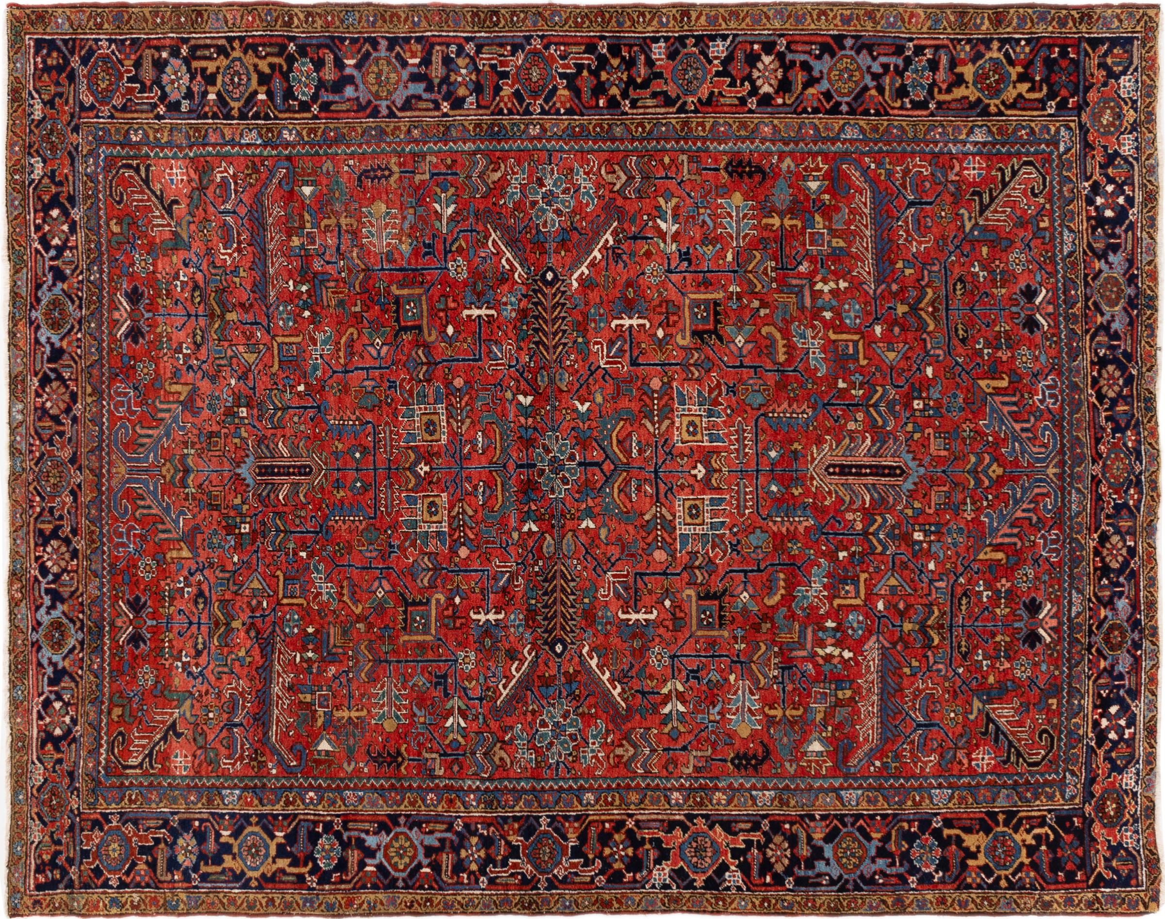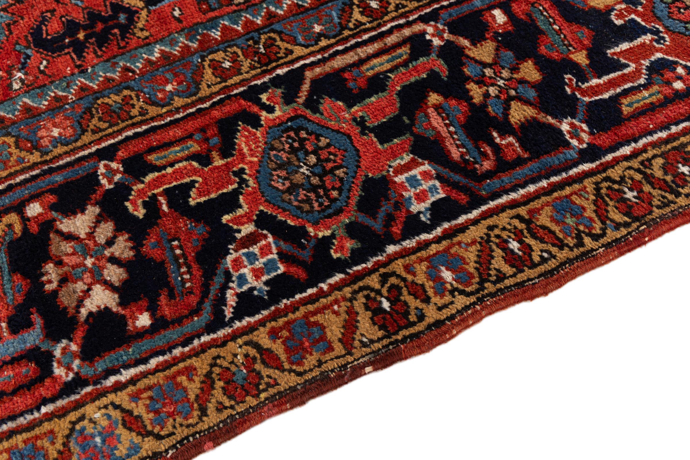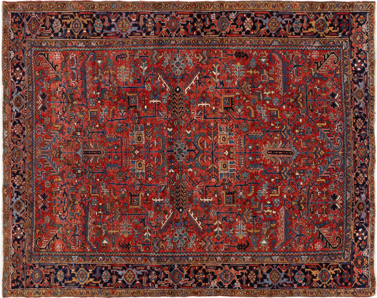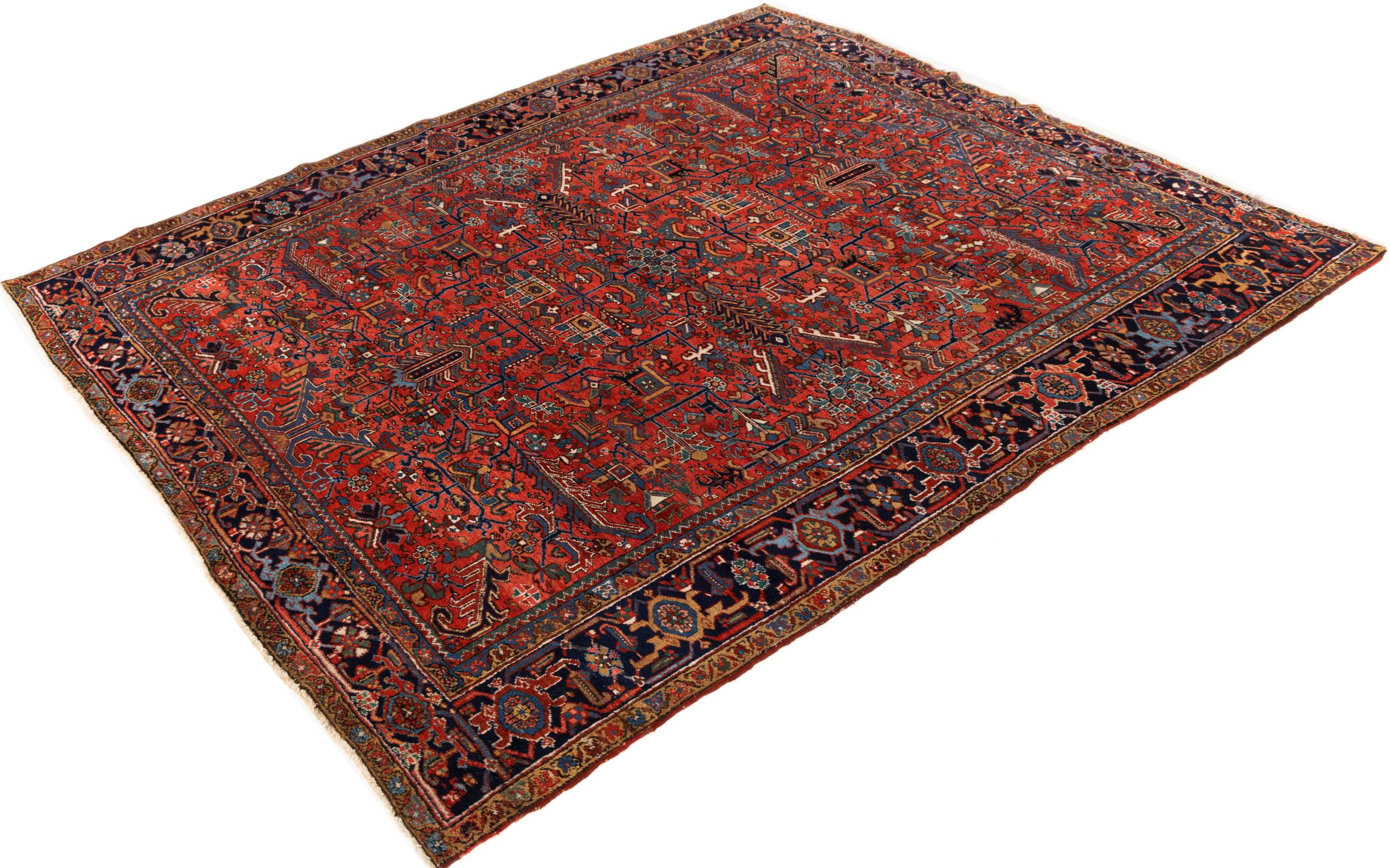 This Heriz carpet is a beautiful example of Persian carpet craftsmanship. Its rustic design is a testament to its durability. It was hand-knotted in the city of Heriz, which is located near Tabriz in north-west Iran. Anyone looking for a Persian rug that will give pleasure for a long time and is highly modern will love this Heriz. The ornaments of Heriz rugs are extremely popular today and are seen as very modern. You will never give up a rug like this again.