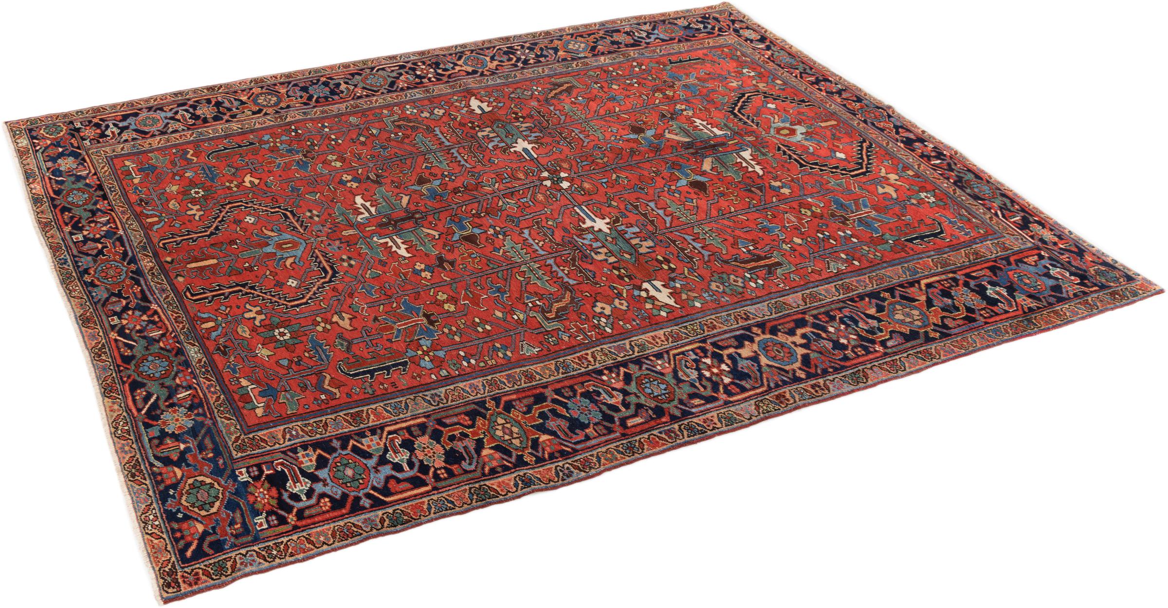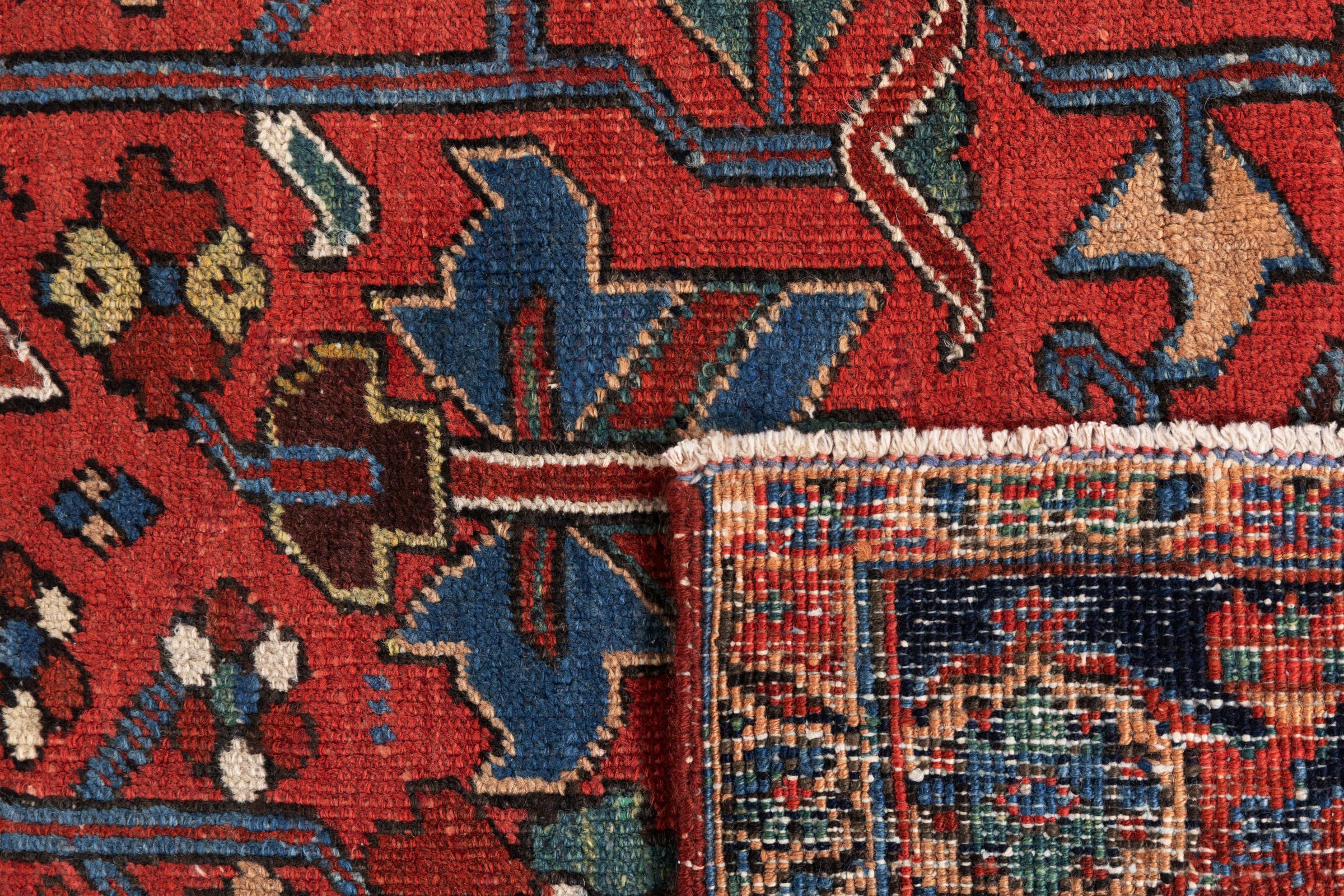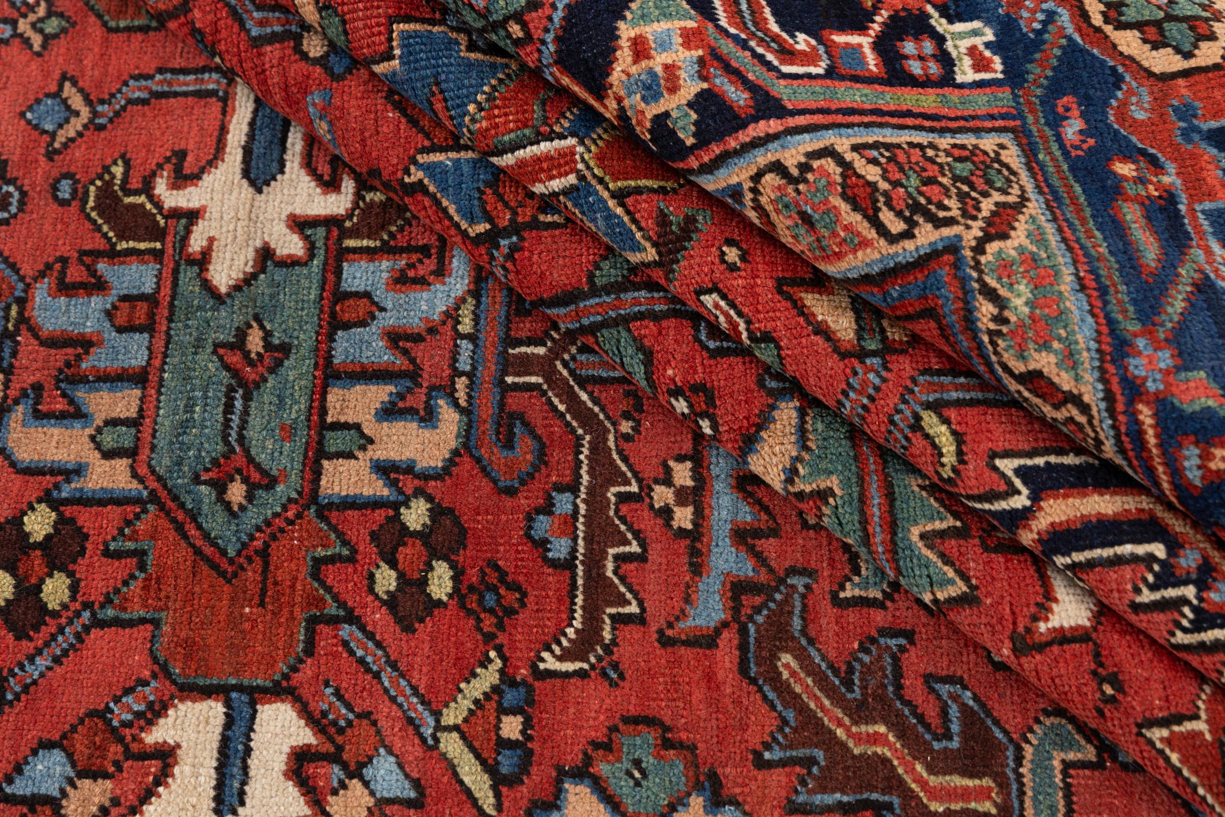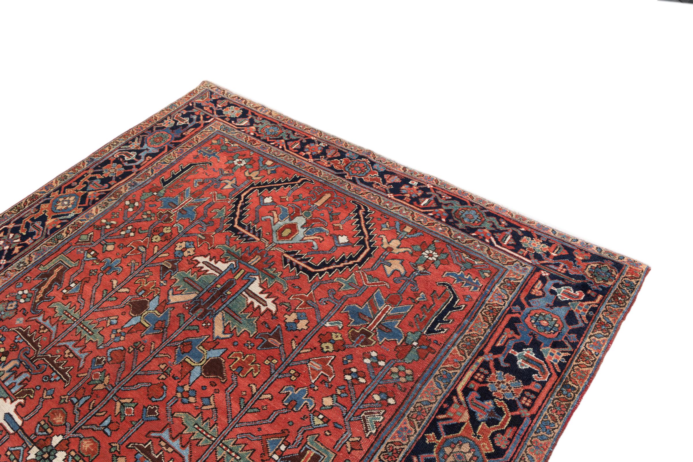 This Heriz carpet is a beautiful example of Persian carpet craftsmanship. Its rustic design is a testament to its durability. It was hand-knotted in the city of Heriz, which is located near Tabriz in north-west Iran. Anyone looking for a Persian rug that will give pleasure for a long time and is highly modern will love this Heriz. The ornaments of Heriz rugs are extremely popular today and are seen as very modern. You will never give up a rug like this again.