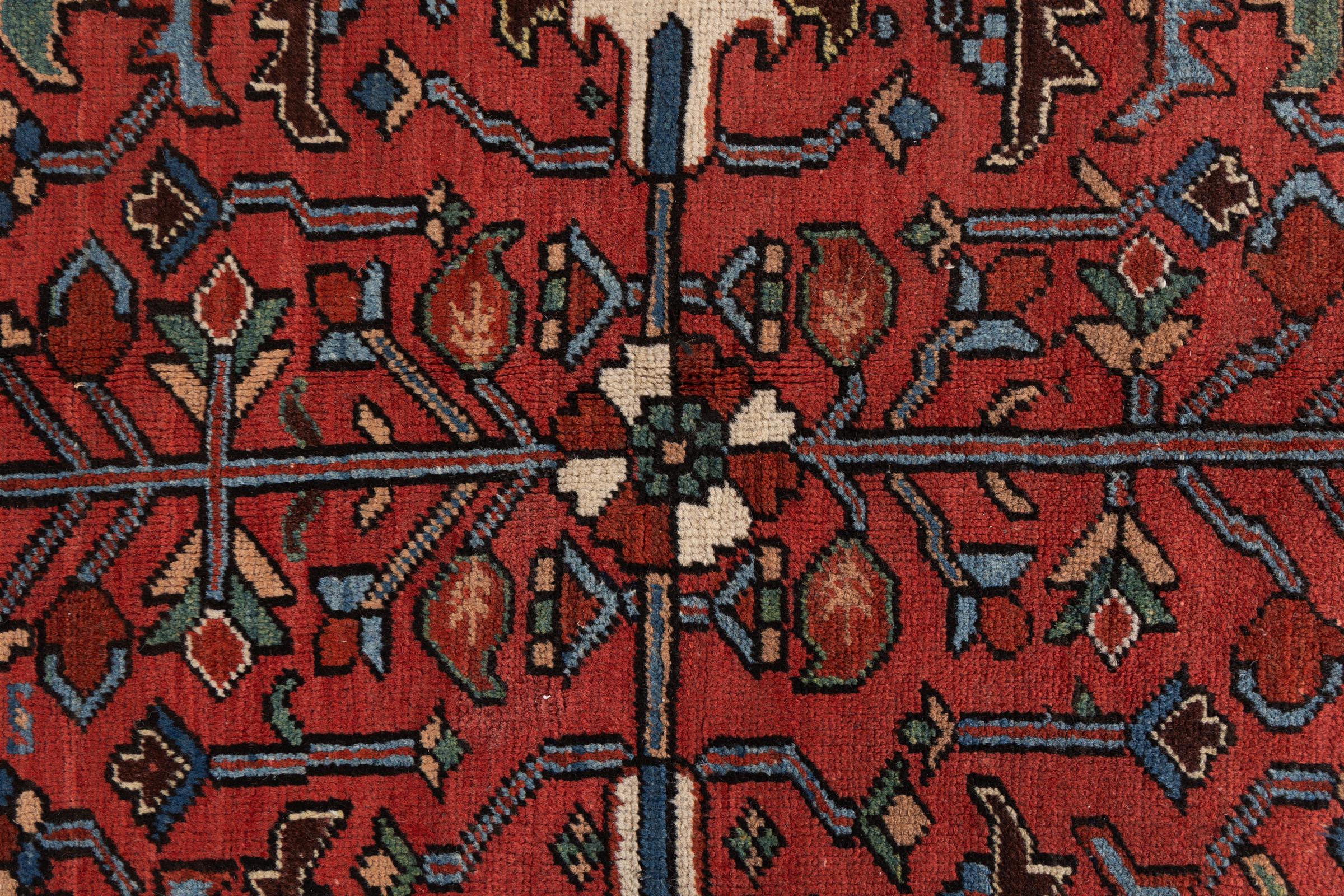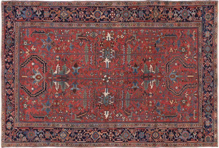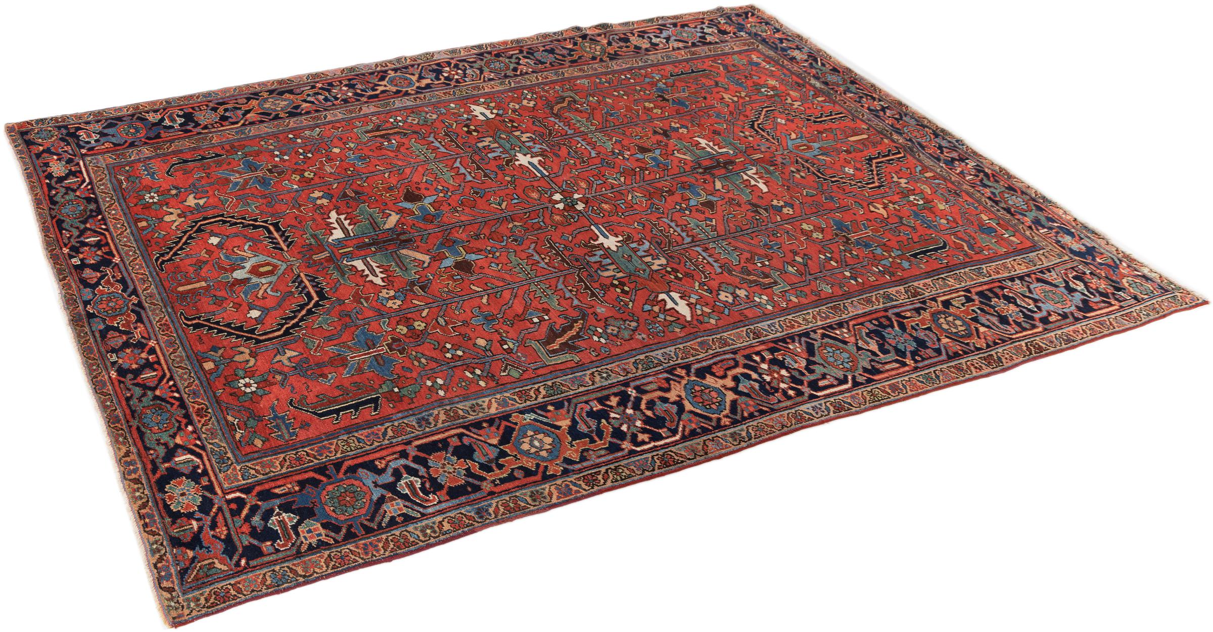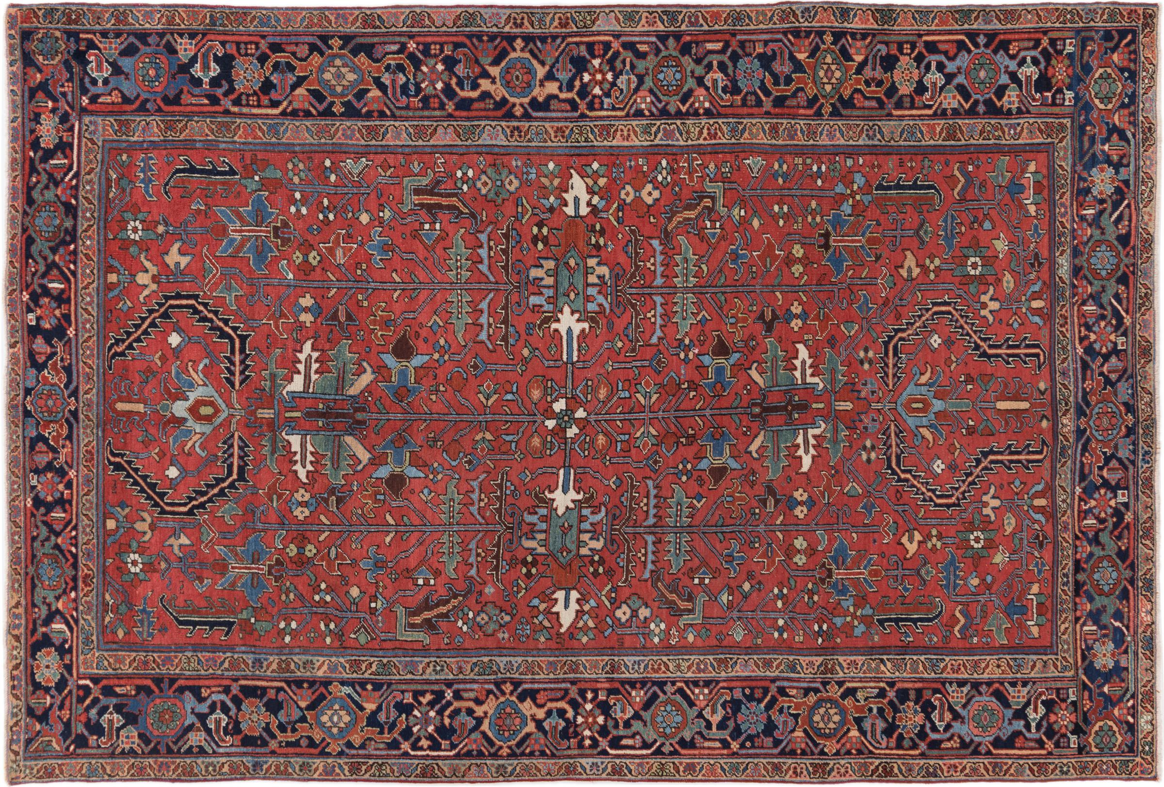 This Heriz carpet is a beautiful example of Persian carpet craftsmanship. Its rustic design is a testament to its durability. It was hand-knotted in the city of Heriz, which is located near Tabriz in north-west Iran. Anyone looking for a Persian rug that will give pleasure for a long time and is highly modern will love this Heriz. The ornaments of Heriz rugs are extremely popular today and are seen as very modern. You will never give up a rug like this again.