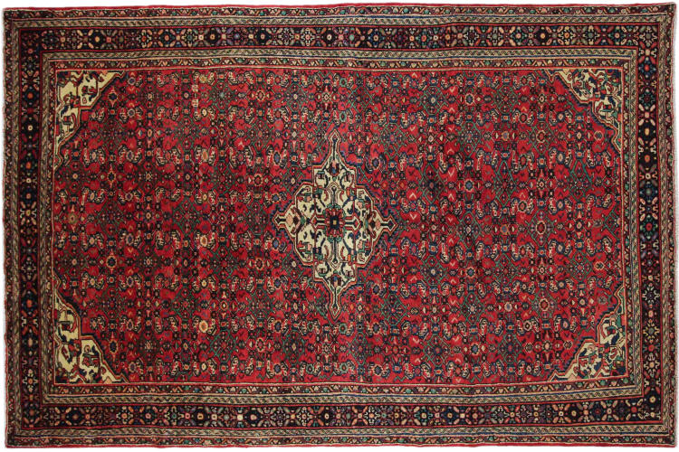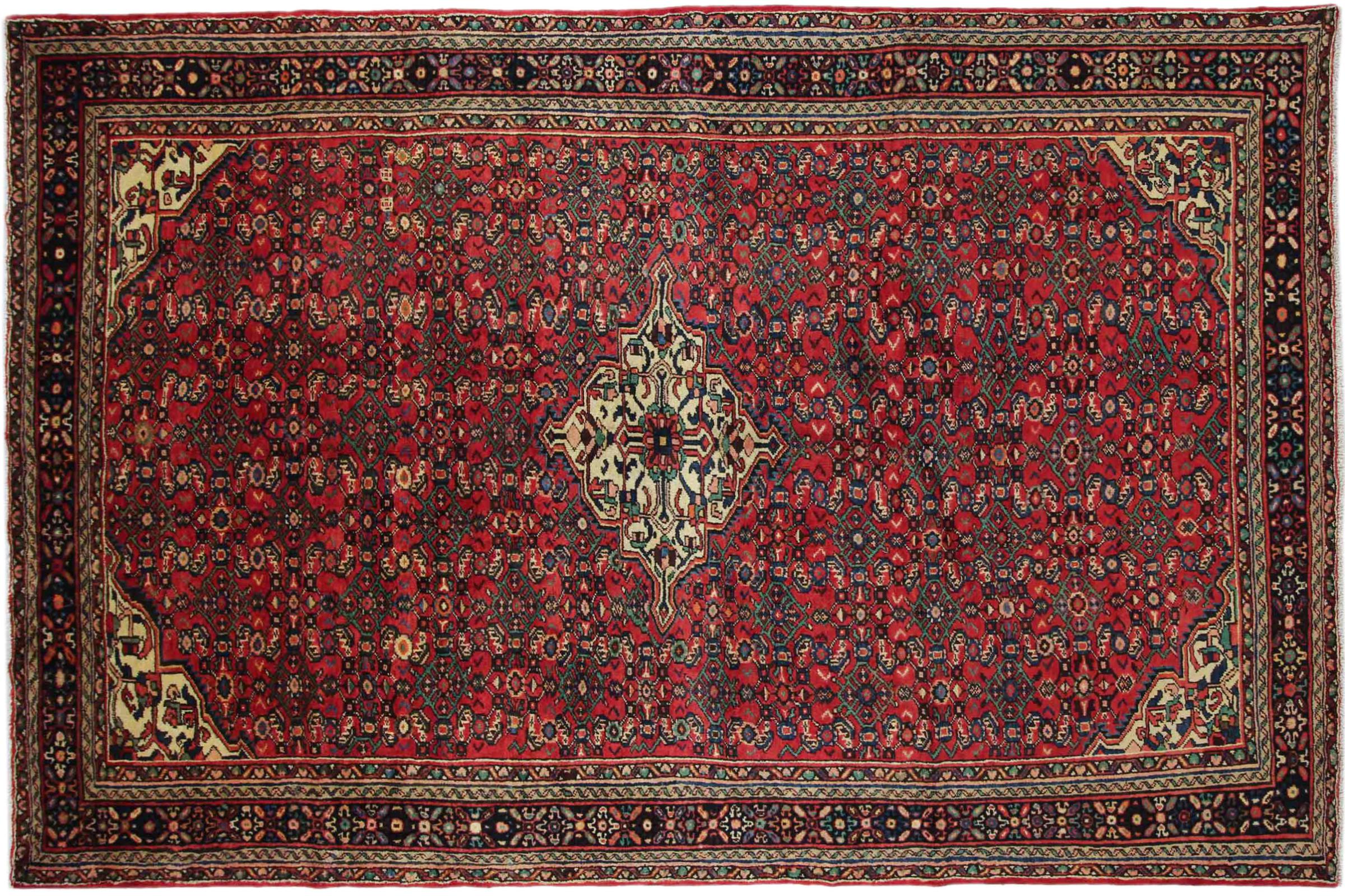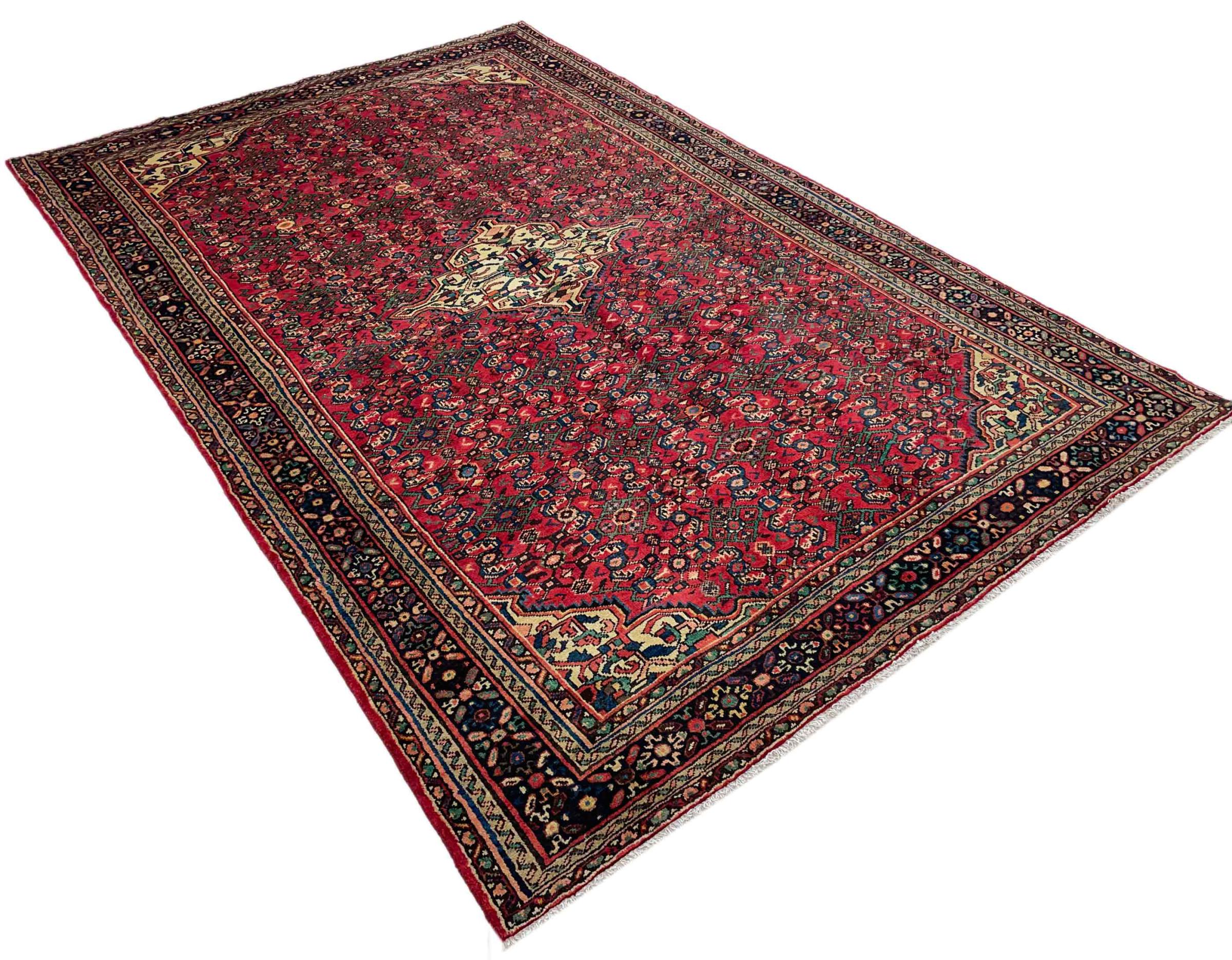 This handknotted Hosseinabad is traditional Persian carpet art. It was made in the small city of Hosseinabad near Hamadan. The high quality of the carpets of this region is convincing. Feel the Orient underneath your feet with this beautiful Hosseinabad.