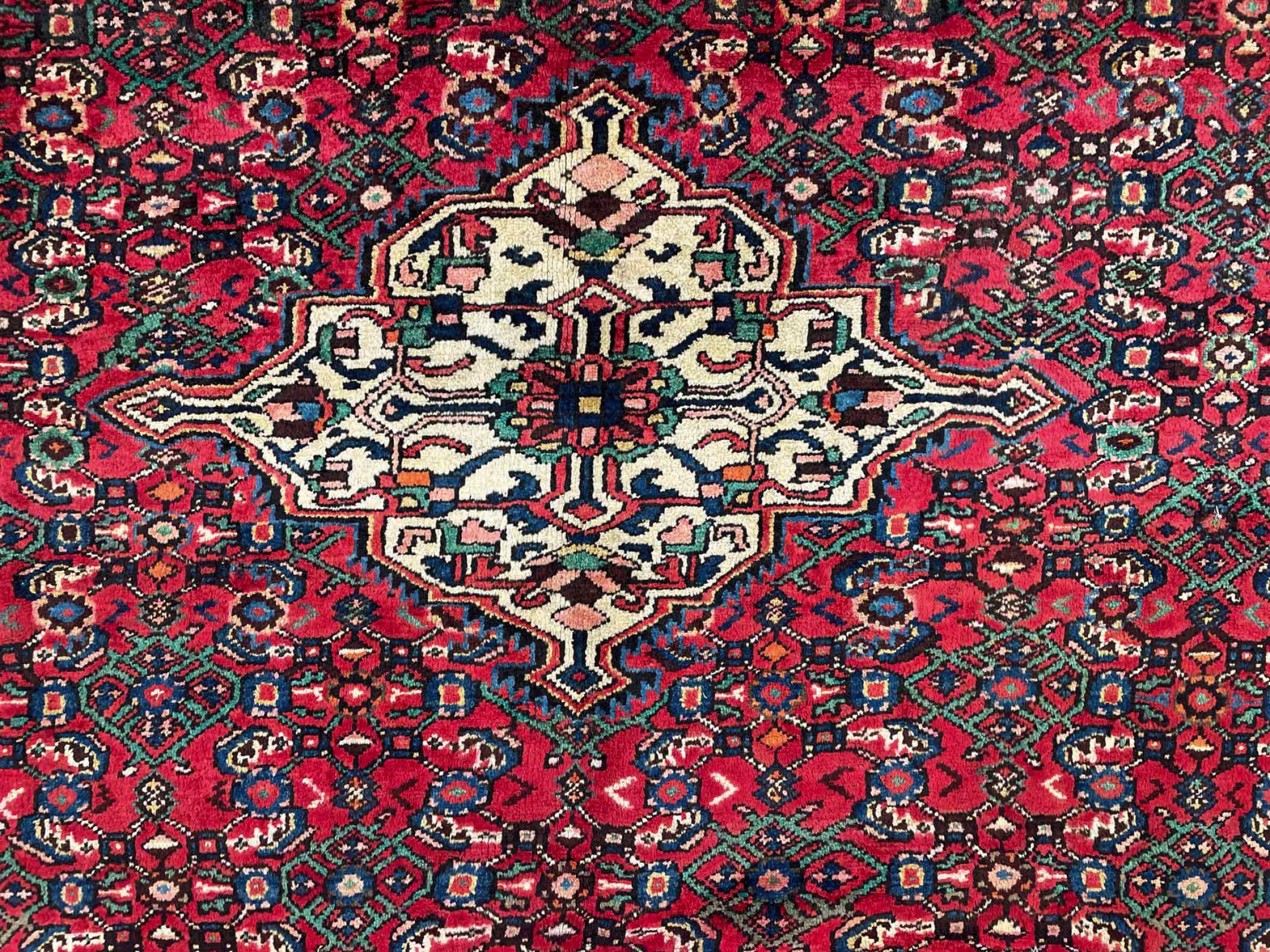 This rug belongs to village and nomadic rugs from Iran, formerly Persia. This type of rug is knotted by hand in smaller towns and villages in old tradition. Even nomads still knot Persian rugs in the open air. The rugs are knotted without a draft and completely from the mind. They are characterized by classical ornaments, which are arranged in straight and geometrical patterns. Thanks to their cultural-traditional origin, these rugs have a unique character that embodies ancient Persia.