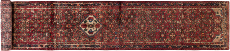 Carpet ID: 298864004736 Size: 522x85 cm Thickness: ap. 12 mm Knot density: 270 000 - 300 000 / m² Manufacturing: Knotted by hand Pile: Handspun wool Warp: Cotton Origin: Persia Age: New Weight: ap. 16 kg Also know as Huseinabad In stock: Unique - Only 1 in stock