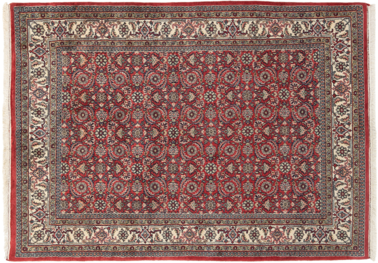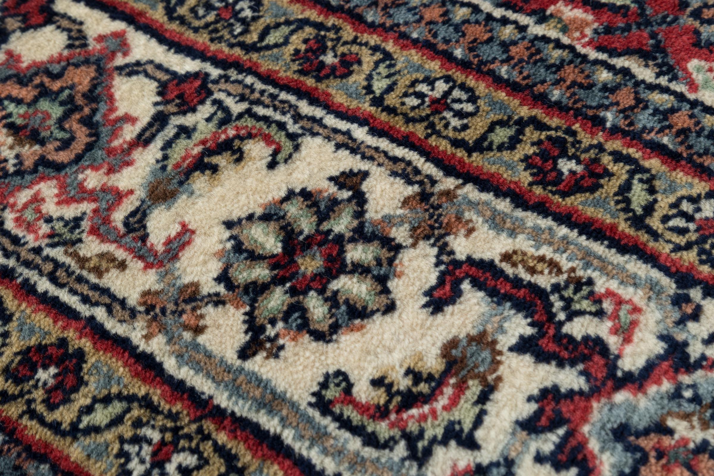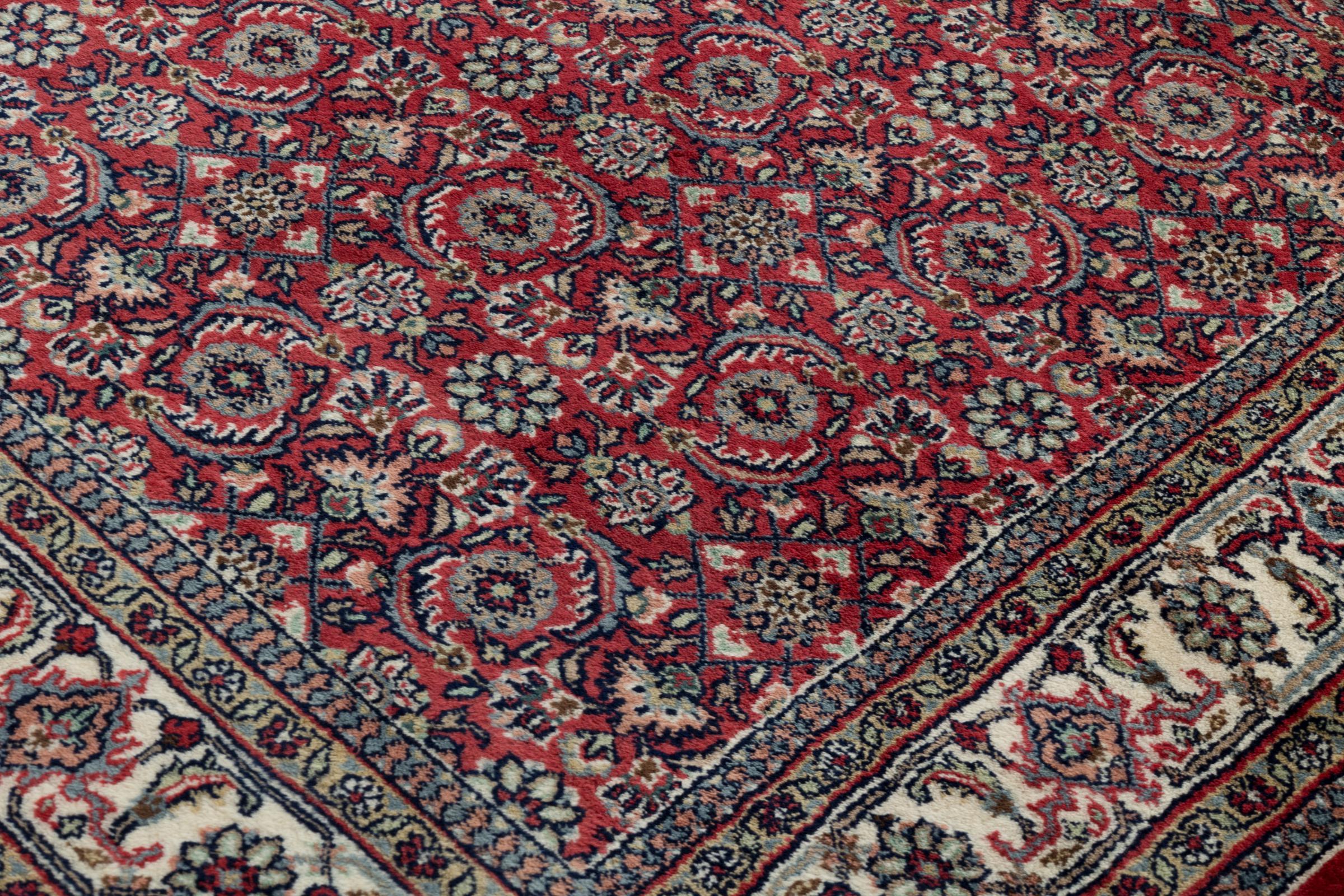 The Herati pattern of this carpet is inspiring. The handknotted carpet from India looks traditionally persian, can score with its price and its therefore the perfect carpet for your home.