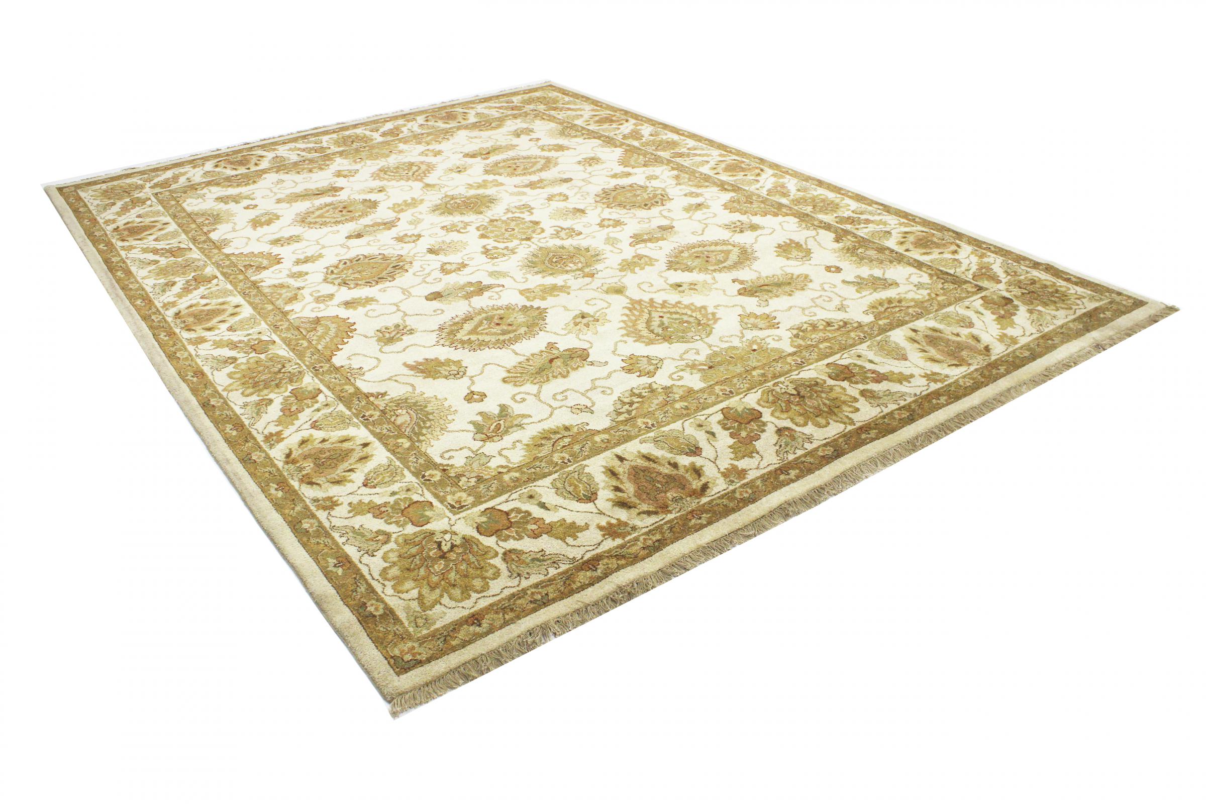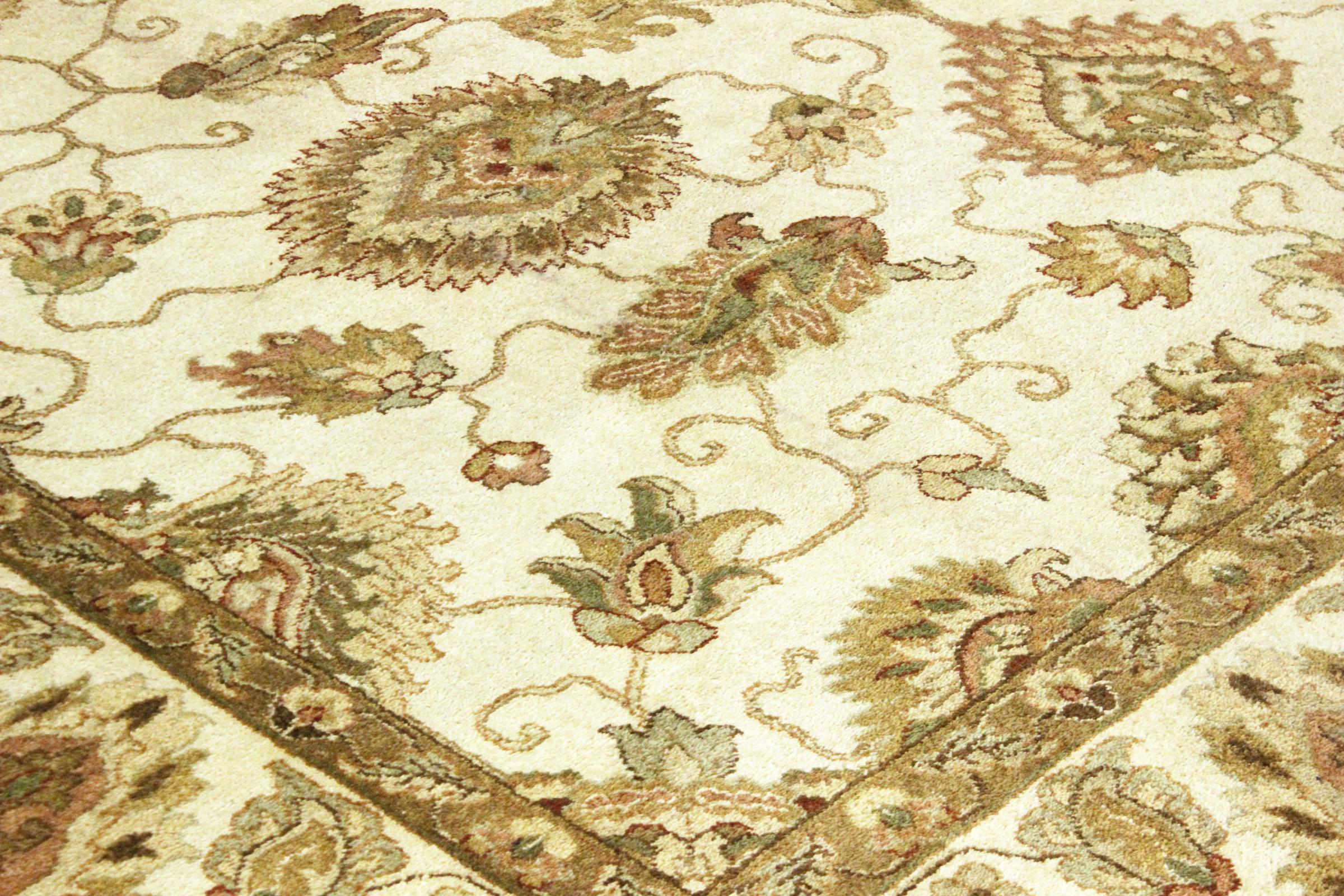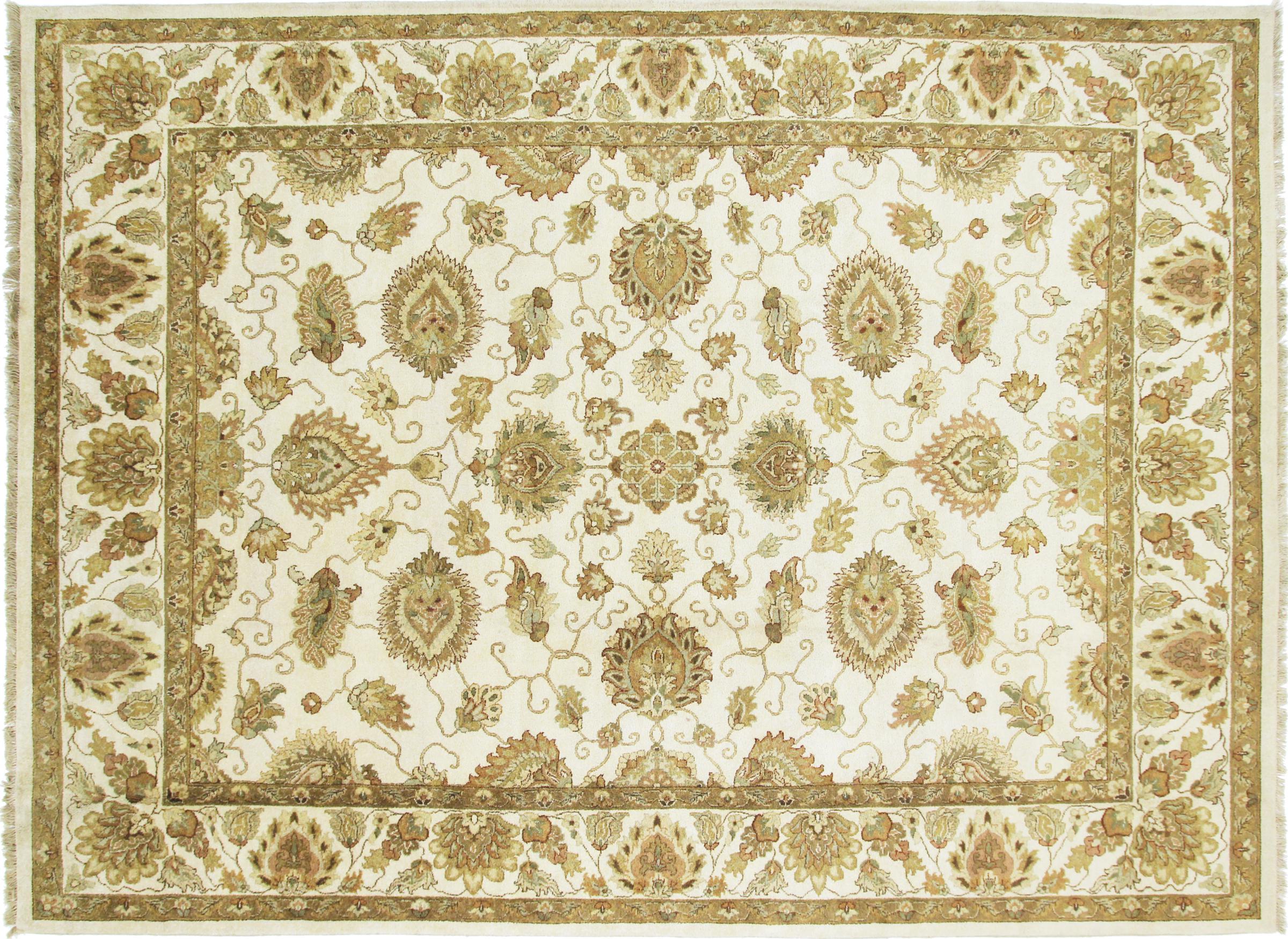 Carpet ID: 56155008166758 Size: 369x277 cm Thickness: ap. 12 mm Knot density: 160 000 - 200 000 / m² Manufacturing: Knotted by hand Pile: Sheep wool Warp: Cotton Origin: India Age: New Weight: ap. 41 kg Also know as Indo Täbriz In stock: Unique - Only 1 in stock