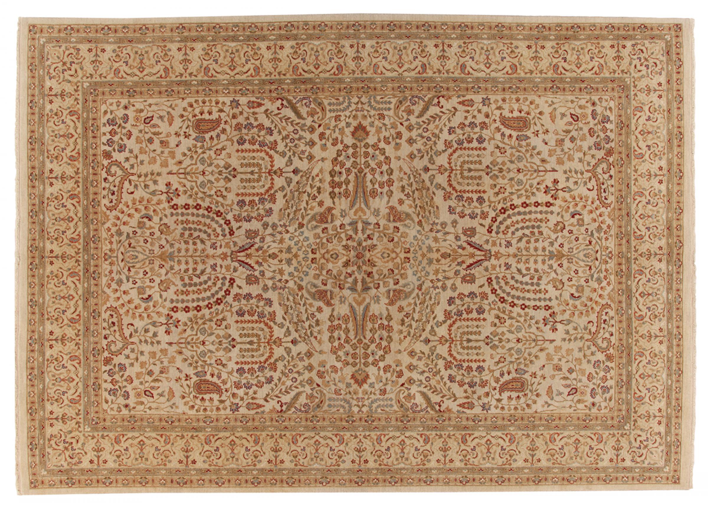 Carpet ID: 108420009510582 Size: 281x199 cm Thickness: ap. 12 mm Knot density: 320 000 - 350 000 / m² Manufacturing: Knotted by hand Pile: Sheep wool Warp: Cotton Origin: India Age: New Weight: ap. 22 kg Also know as Indo Täbriz In stock: Unique - Only 1 in stock
