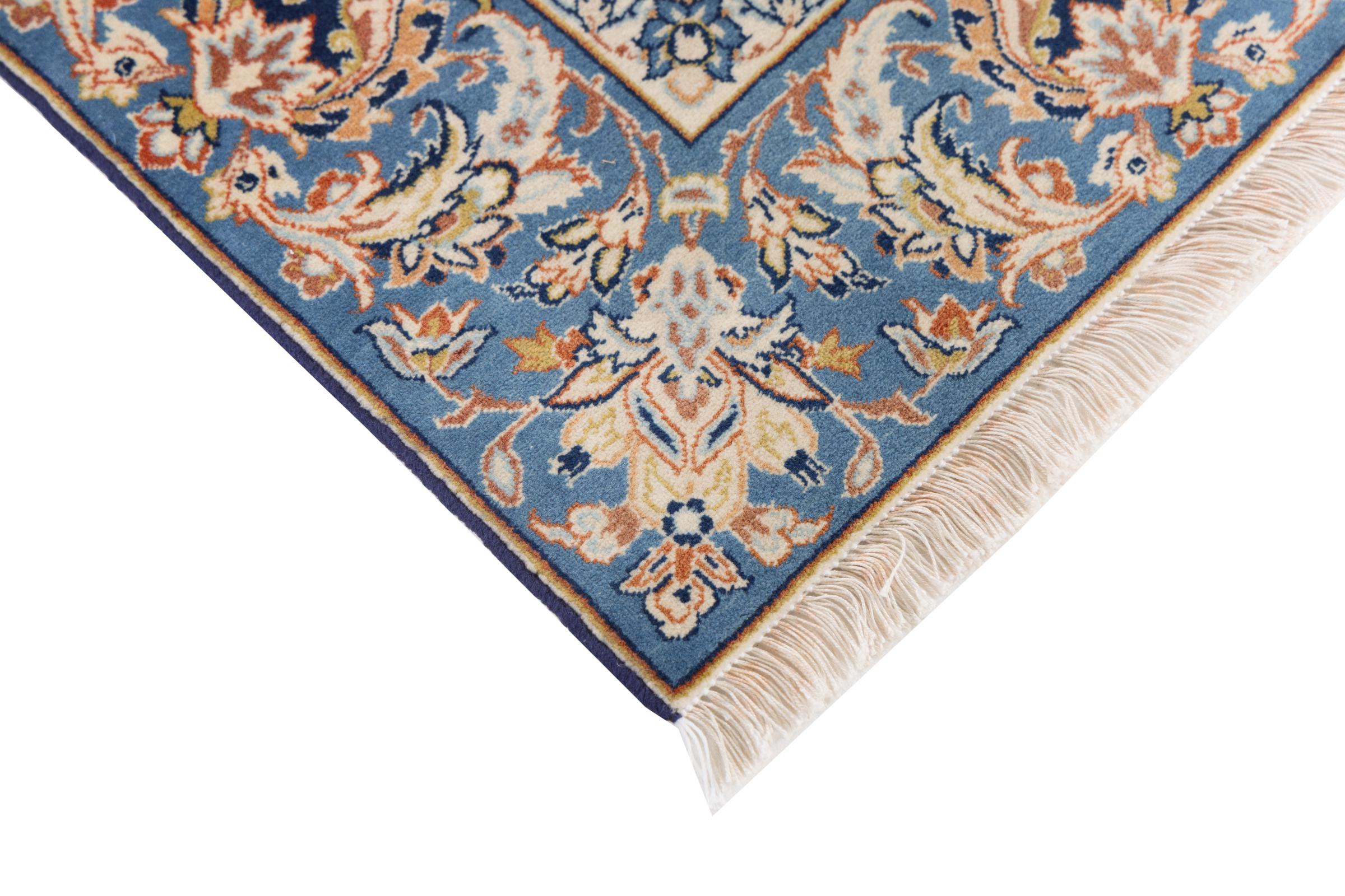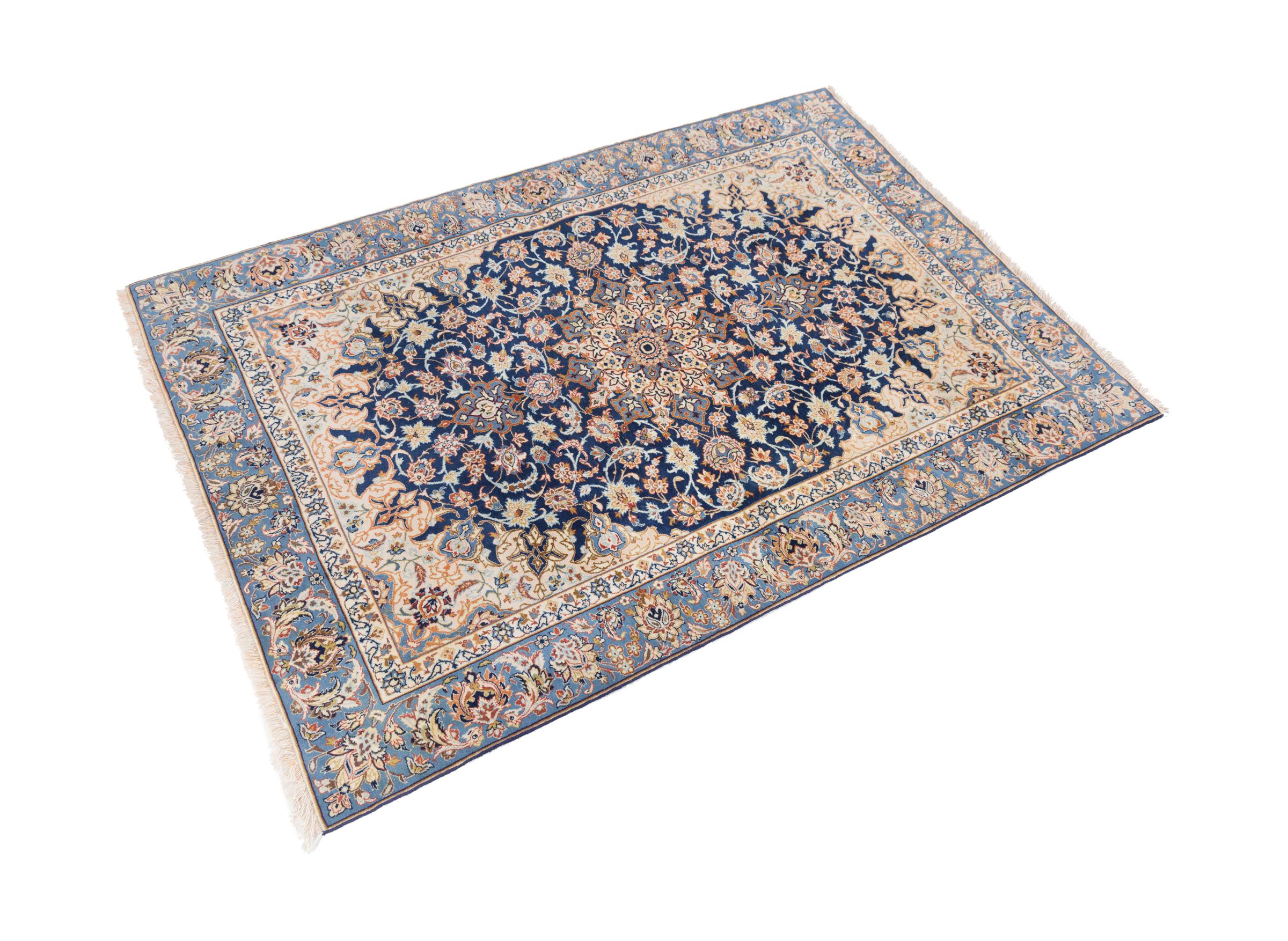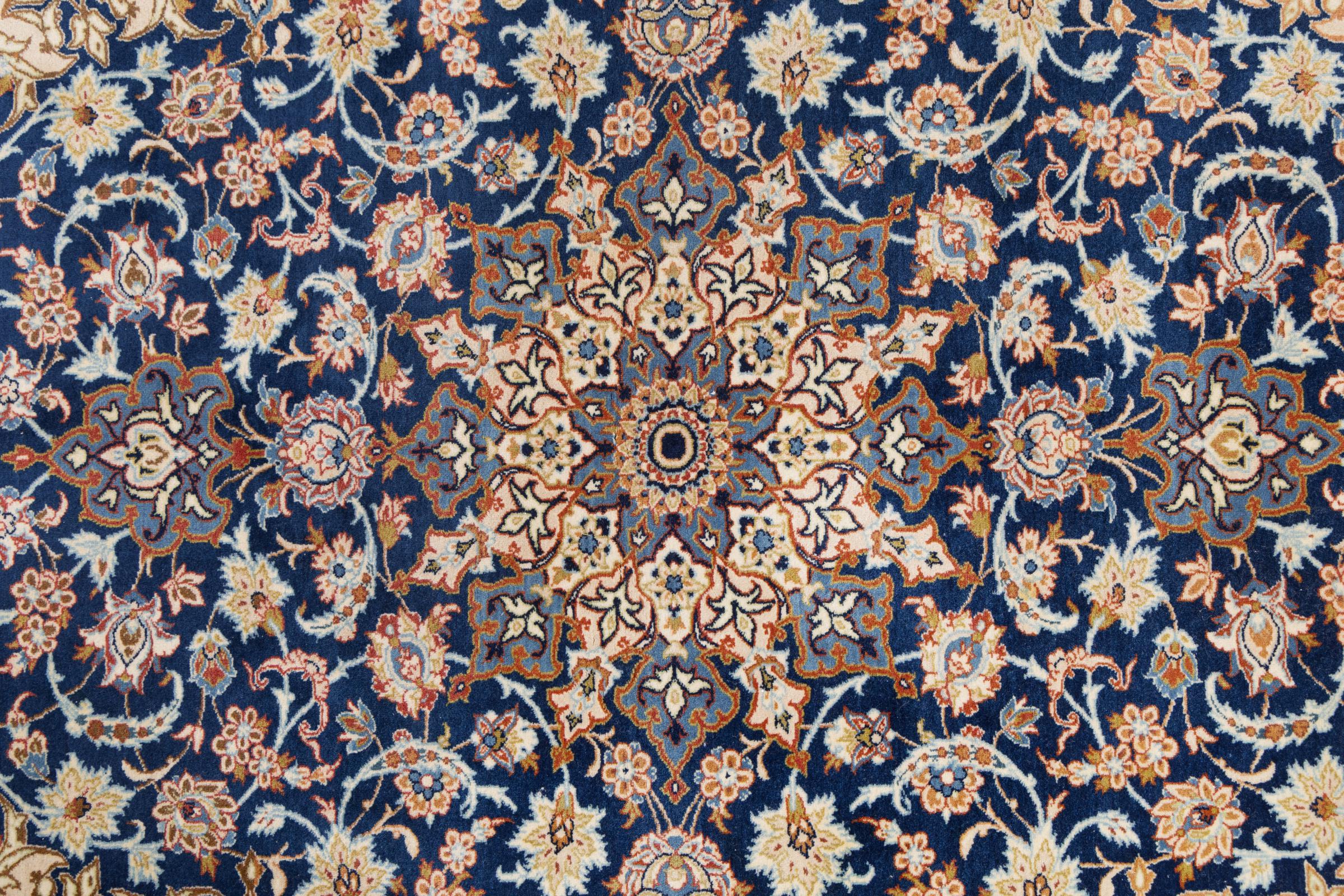 This Isfahan carpet is a piece of the most traditional handicraft. It has been made by hand with the most beautiful patterns. In fact, Isfahan carpets are known to count to the finest Persian carpets. This one has been knotted in Isfahan, which is famous of being the most beautiful city in Iran. The carpet is an exceptionally piece of art.