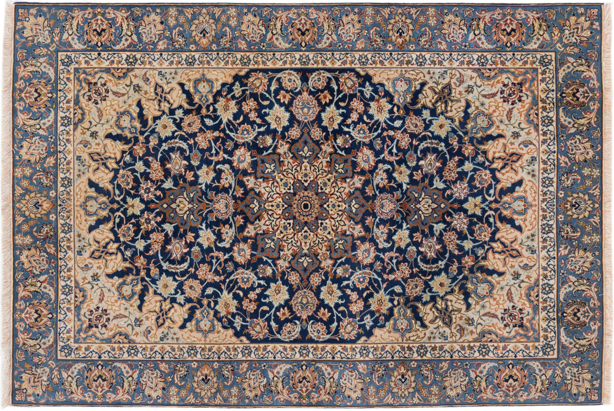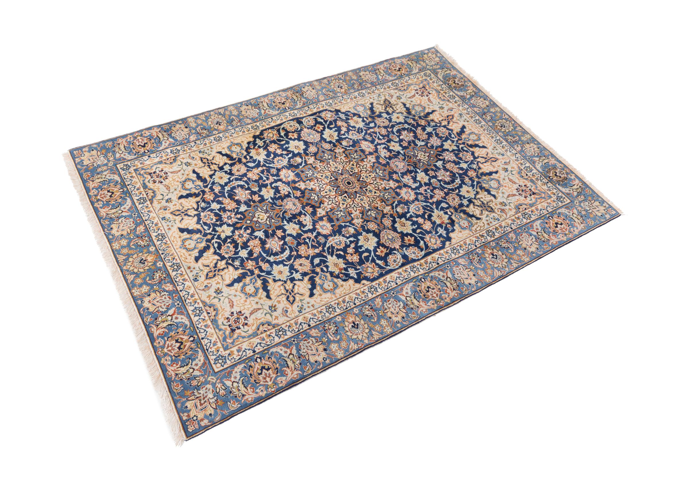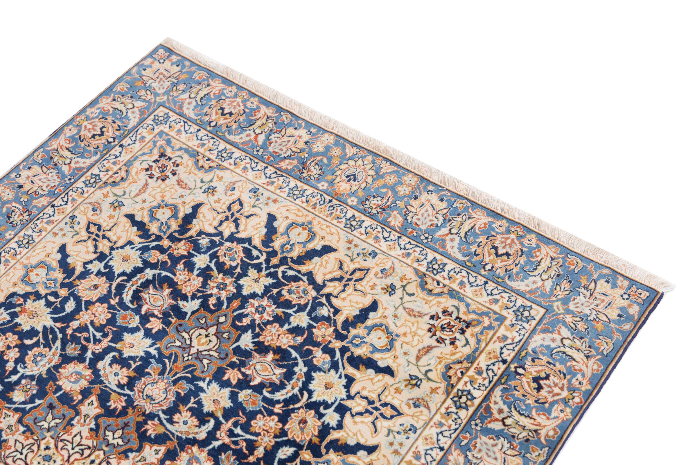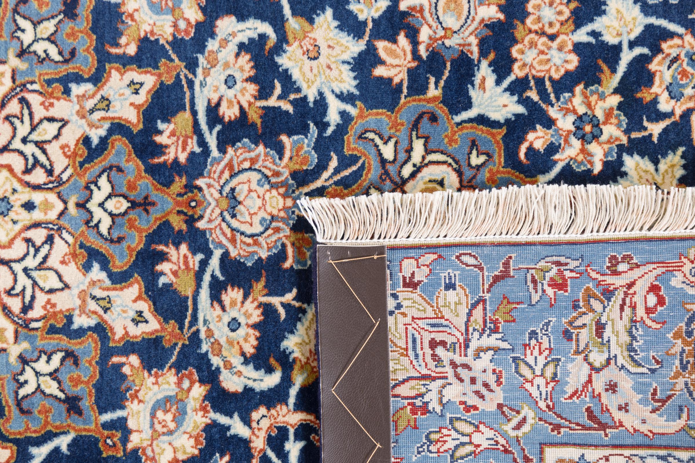 This Isfahan carpet is a piece of the most traditional handicraft. It has been made by hand with the most beautiful patterns. In fact, Isfahan carpets are known to count to the finest Persian carpets. This one has been knotted in Isfahan, which is famous of being the most beautiful city in Iran. The carpet is an exceptionally piece of art.