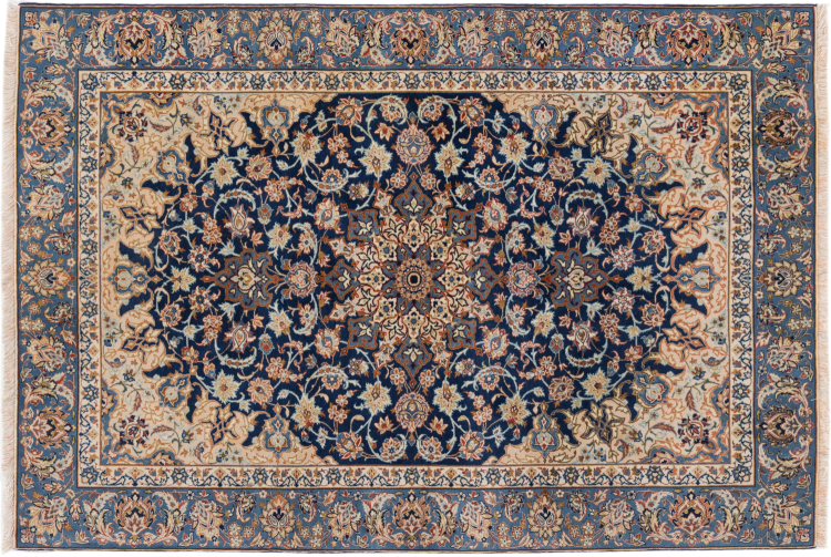 Rugs from this city belong to the probably most valuable hand-knotted Persian rugs worldwide. Very fine Isfahan rugs come from the studios of world-renowned master knotters who achieve a knot density of more than a million knots per square meter. To own an Isfahan means to have a Persian rug of the highest knotting skill. The design of these rugs is mostly inspired by the impressive mosques and squares of the city bearing the same name.