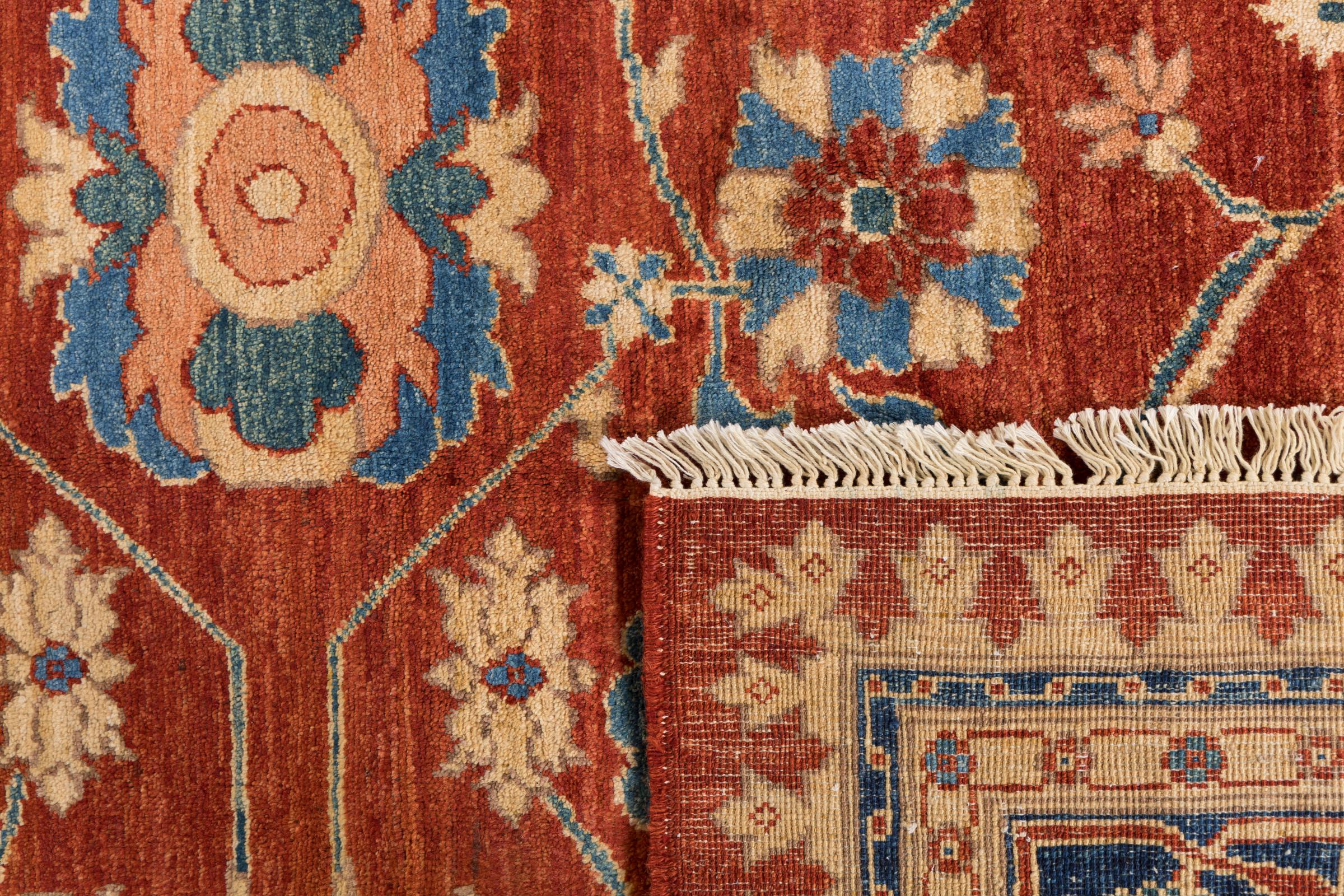 This rug is made of hand spun sheep wool of the highest quality. Especially in Iran (former Persia), Afghanistan and Pakistan wool is still spun by hand before the actual knotting of the rug begins. Wool has proven itself as a natural and extremely hard-wearing material over centuries. Among other things, it has dirt-repellent and heat-insulating properties. At the same time, wool is incomparably soft and has a natural shine.