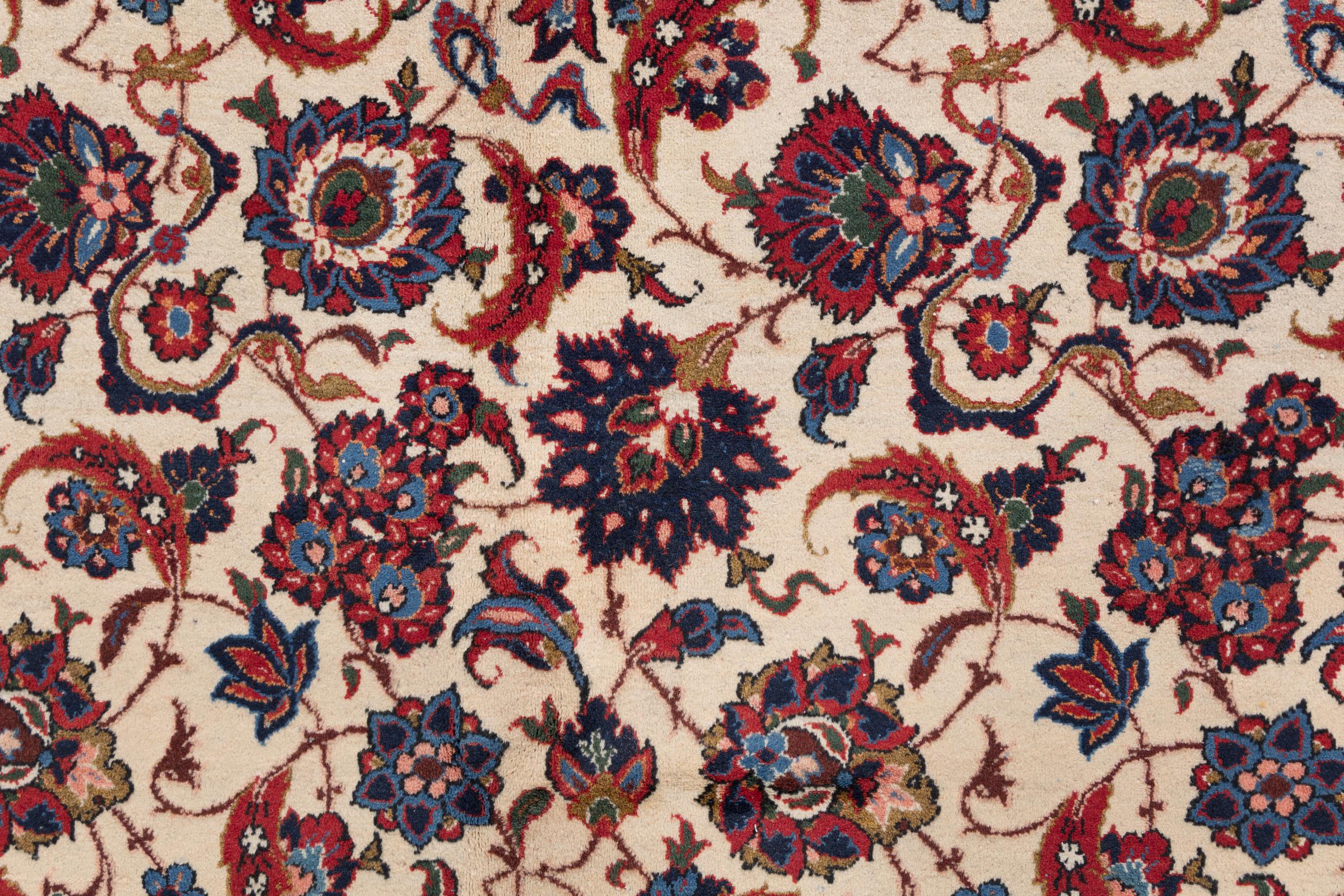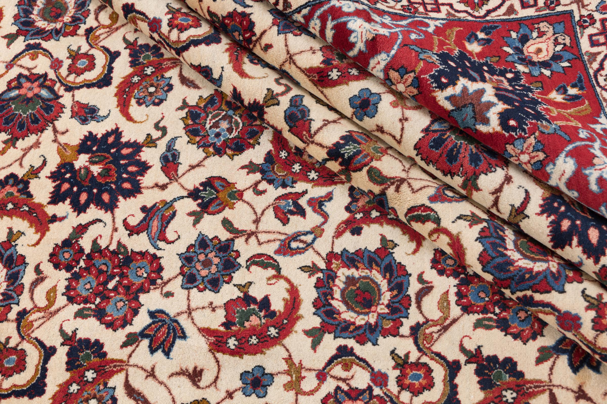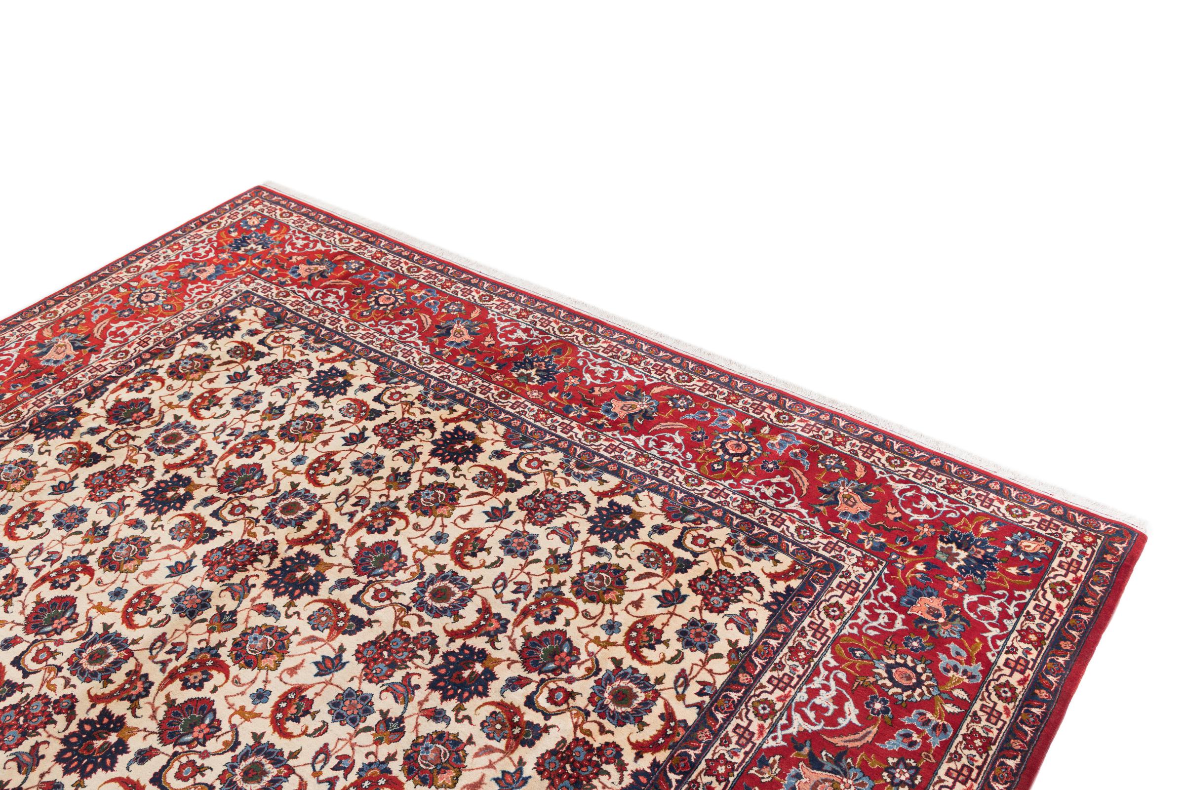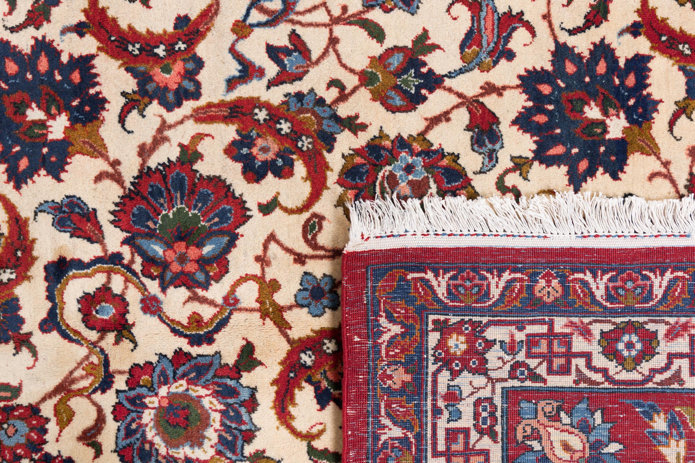 This Isfahan carpet is a piece of the most traditional handicraft. It has been made by hand with the most beautiful patterns. In fact, Isfahan carpets are known to count to the finest Persian carpets. This one has been knotted in Isfahan, which is famous of being the most beautiful city in Iran. The carpet is an exceptionally piece of art.