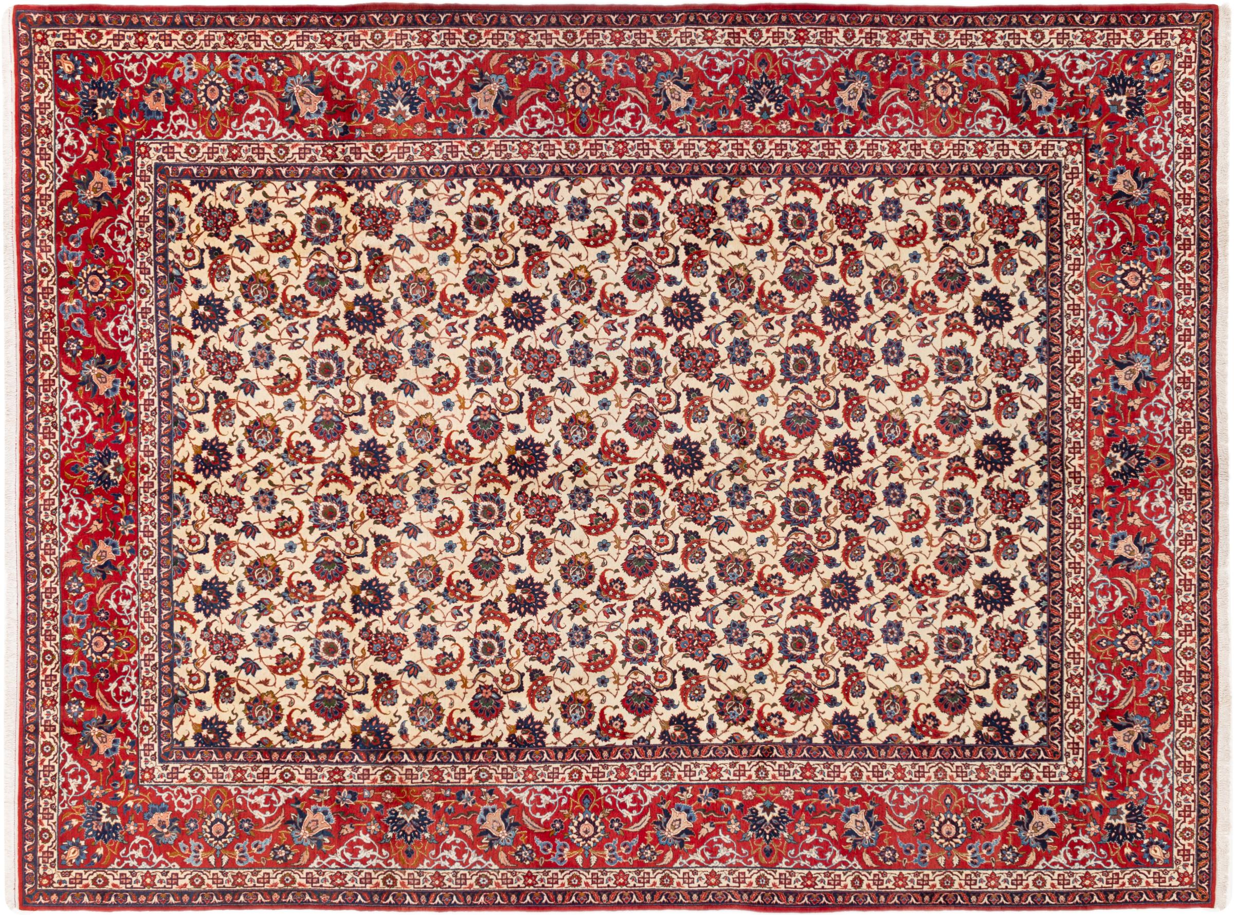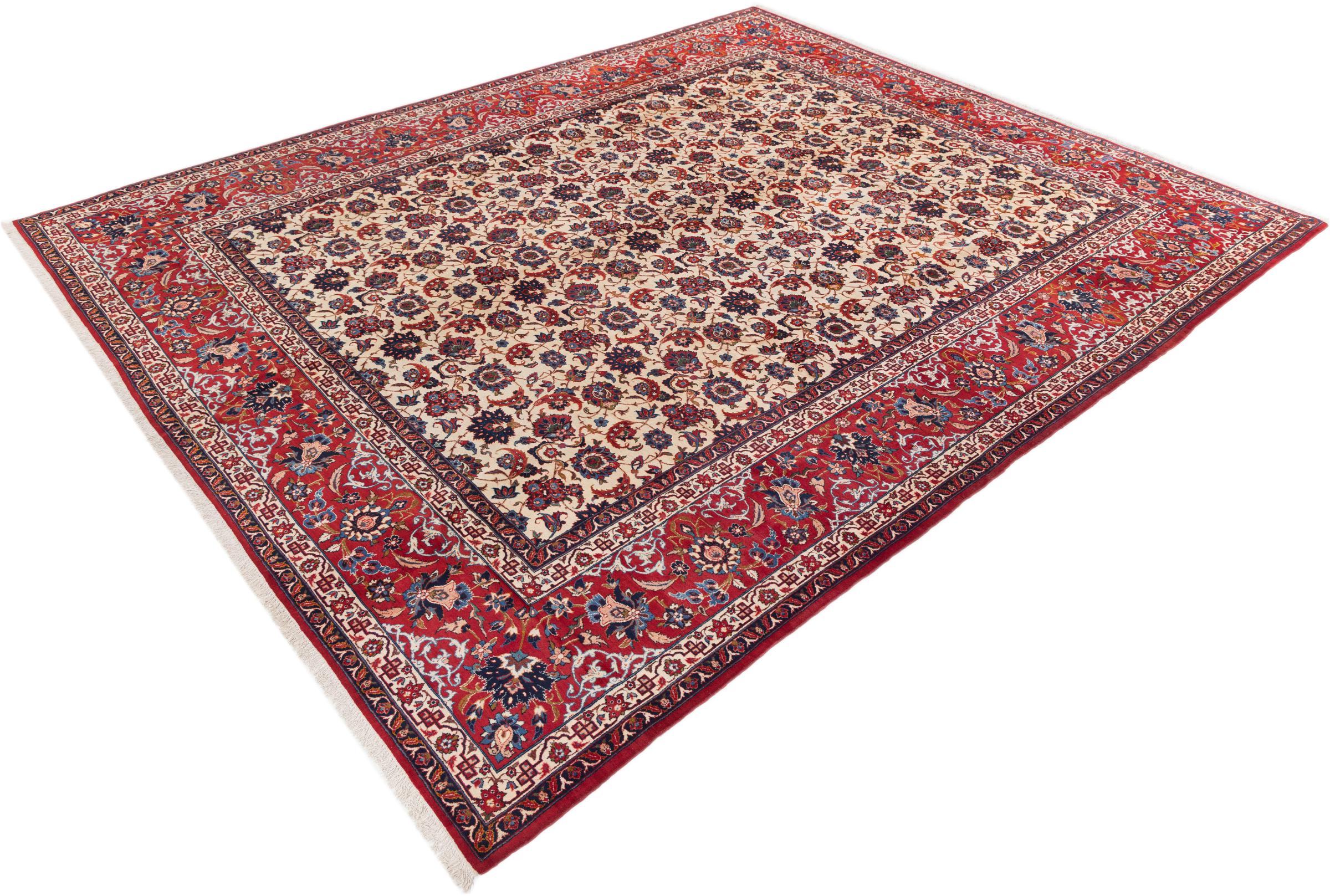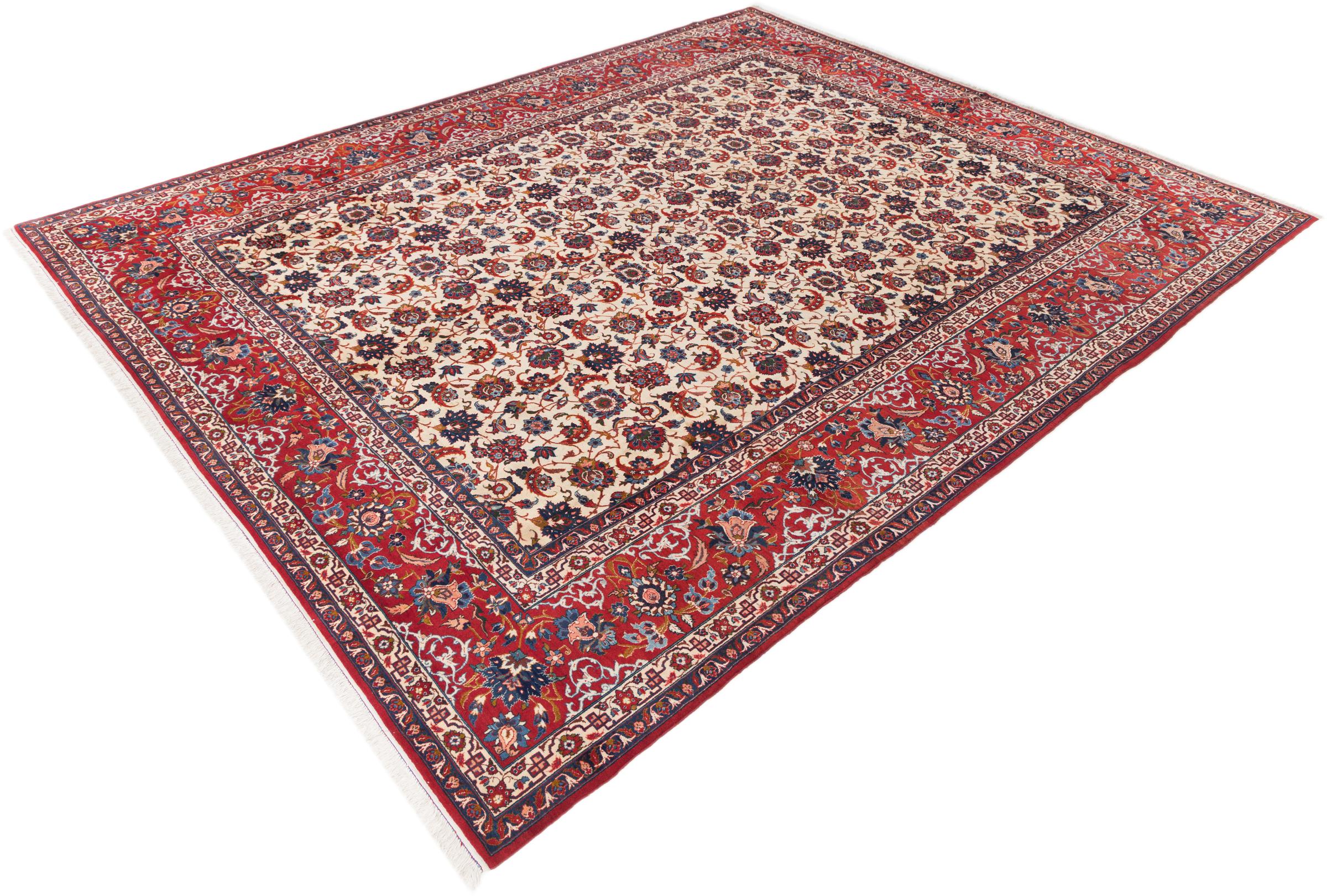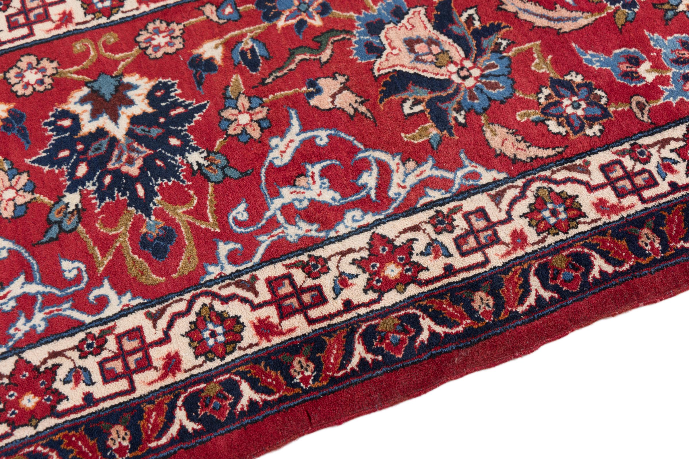 This Isfahan carpet is a piece of the most traditional handicraft. It has been made by hand with the most beautiful patterns. In fact, Isfahan carpets are known to count to the finest Persian carpets. This one has been knotted in Isfahan, which is famous of being the most beautiful city in Iran. The carpet is an exceptionally piece of art.