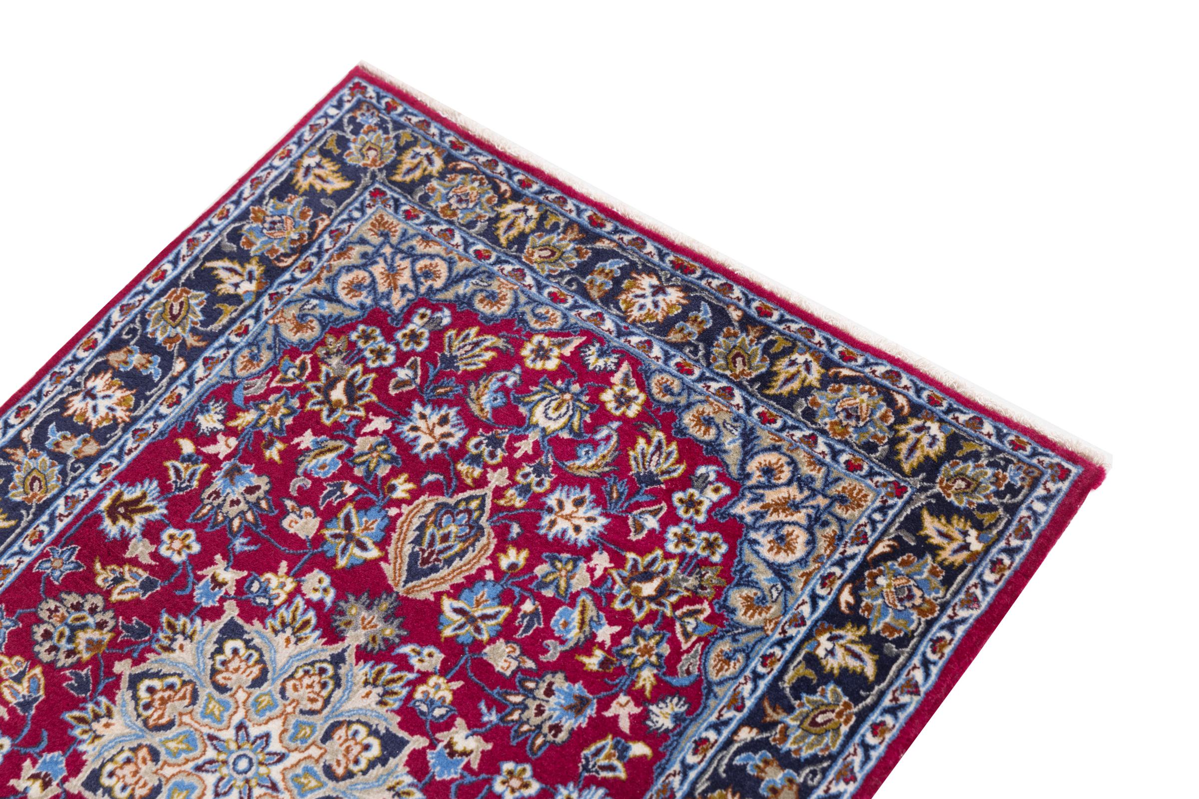This Isfahan carpet is a piece of the most traditional handicraft. It has been made by hand with the most beautiful patterns. In fact, Isfahan carpets are known to count to the finest Persian carpets. This one has been knotted in Isfahan, which is famous of being the most beautiful city in Iran. The carpet is an exceptionally piece of art.