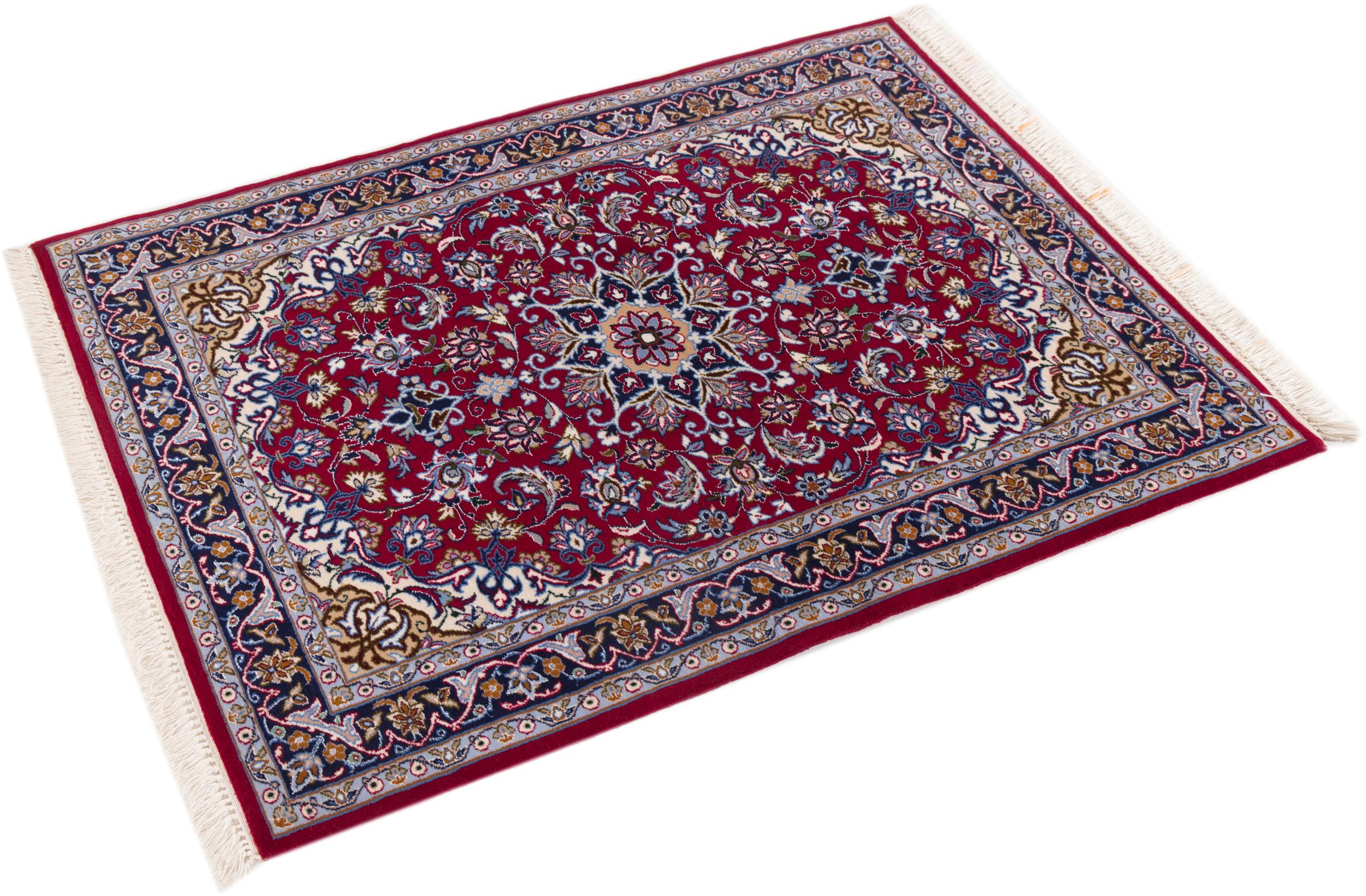 This Isfahan carpet is a piece of the most traditional handicraft. It has been made by hand with the most beautiful patterns. In fact, Isfahan carpets are known to count to the finest Persian carpets. This one has been knotted in Isfahan, which is famous of being the most beautiful city in Iran. The carpet is an exceptionally piece of art.