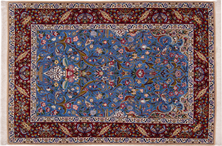 Rugs from this city belong to the probably most valuable hand-knotted Persian rugs worldwide. Very fine Isfahan rugs come from the studios of world-renowned master knotters who achieve a knot density of more than a million knots per square meter. To own an Isfahan means to have a Persian rug of the highest knotting skill. The design of these rugs is mostly inspired by the impressive mosques and squares of the city bearing the same name.