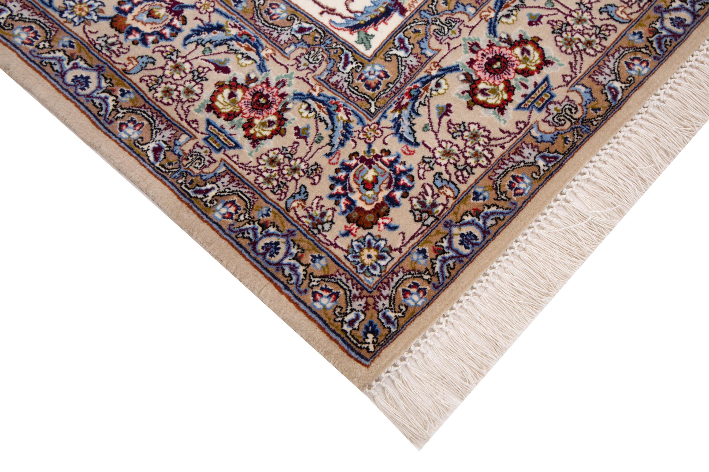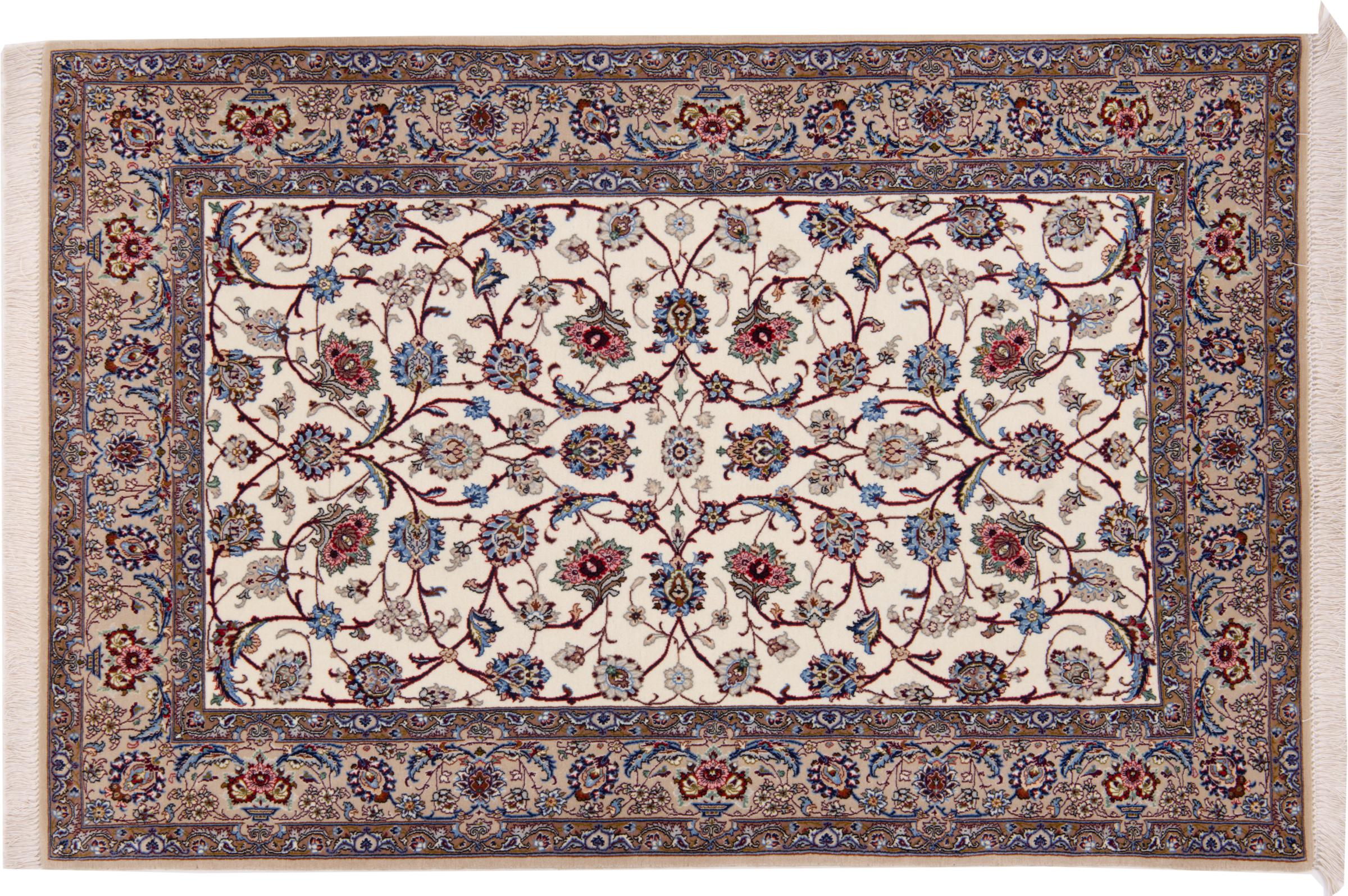 This Isfahan carpet is a piece of the most traditional handicraft. It has been made by hand with the most beautiful patterns. In fact, Isfahan carpets are known to count to the finest Persian carpets. This one has been knotted in Isfahan, which is famous of being the most beautiful city in Iran. The carpet is an exceptionally piece of art.