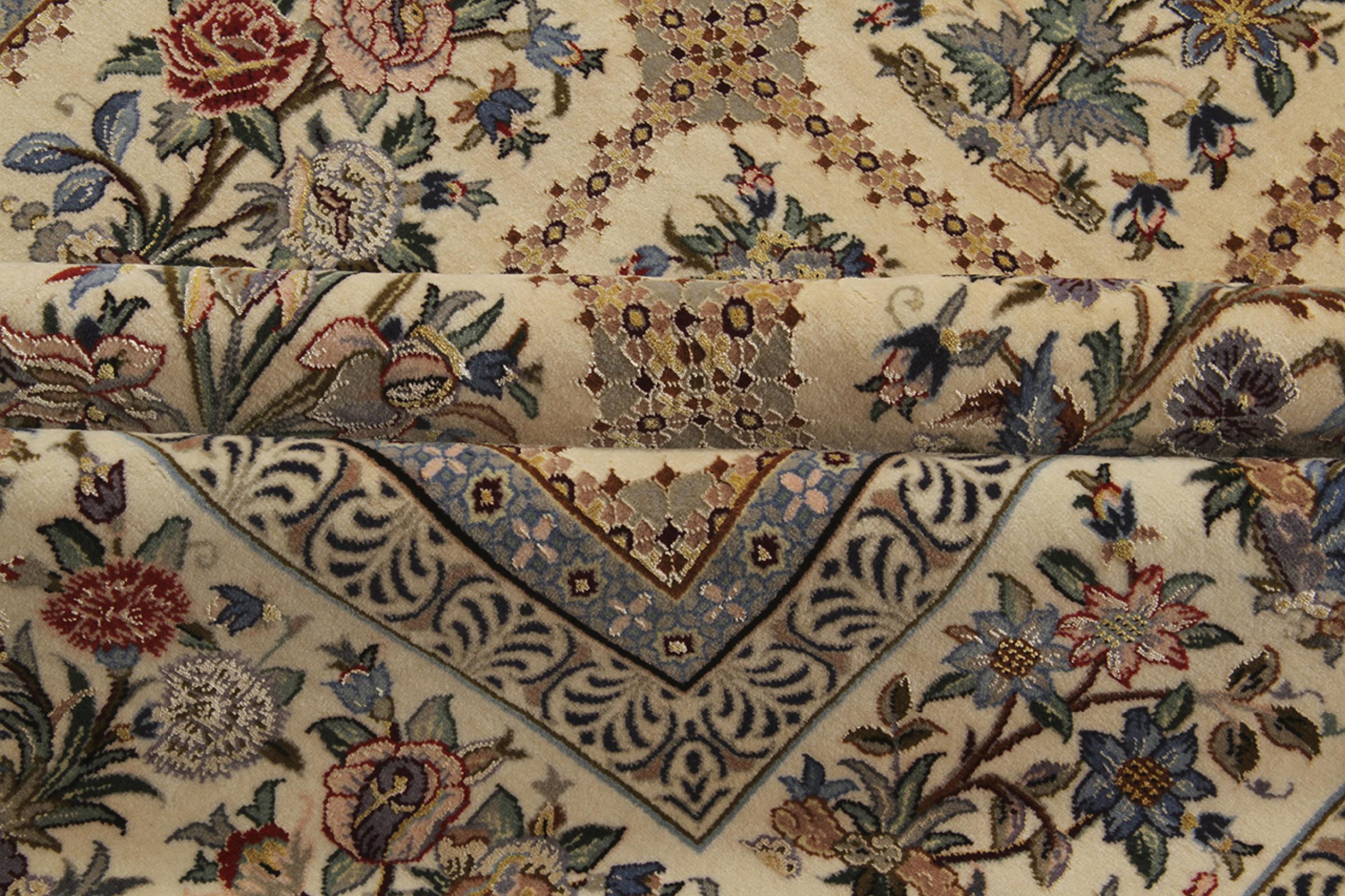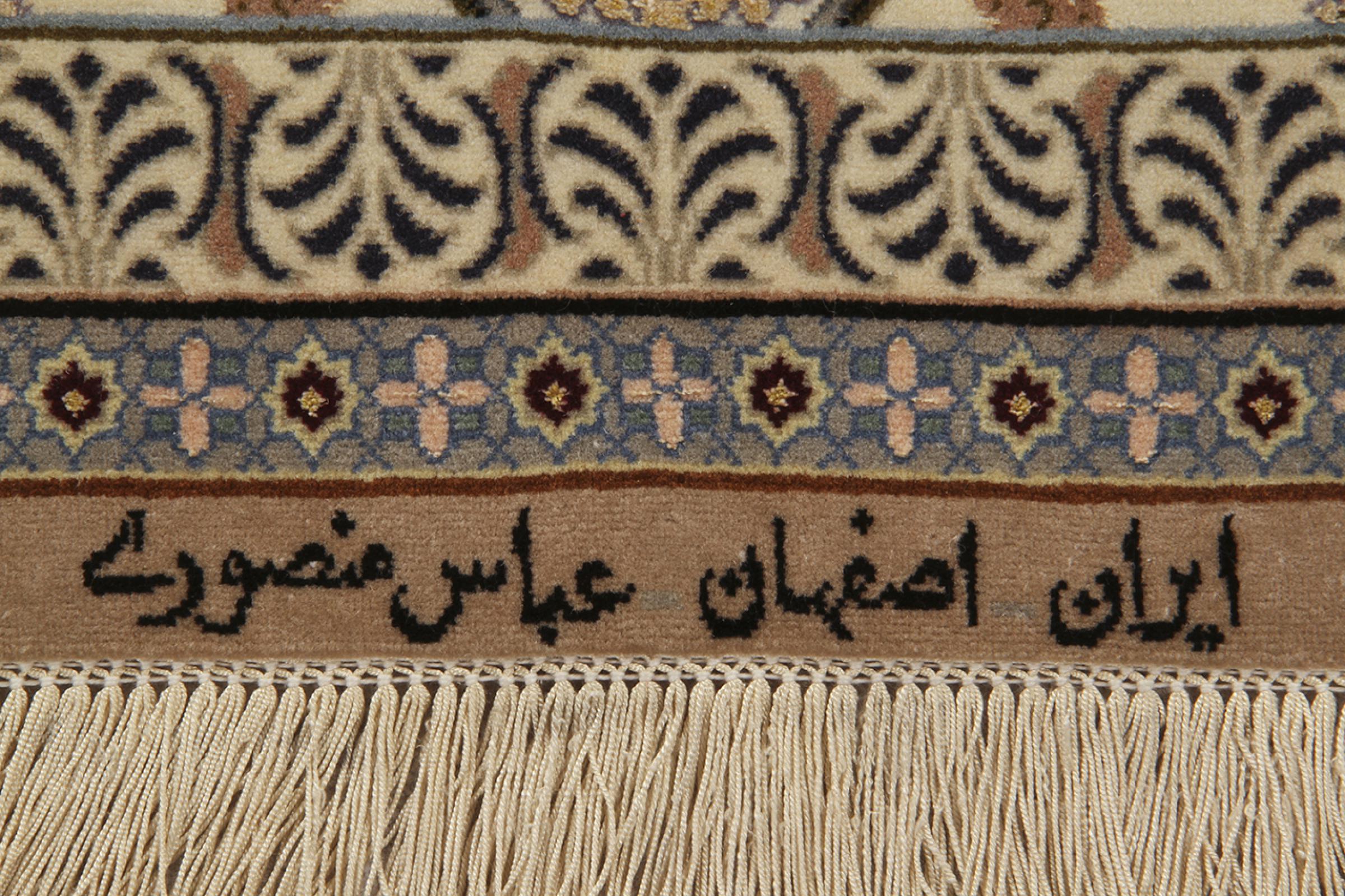 This Isfahan carpet is a piece of the most traditional handicraft. It has been made by hand with the most beautiful patterns. In fact, Isfahan carpets are known to count to the finest Persian carpets. This one has been knotted in Isfahan, which is famous of being the most beautiful city in Iran. The carpet is an exceptionally piece of art.