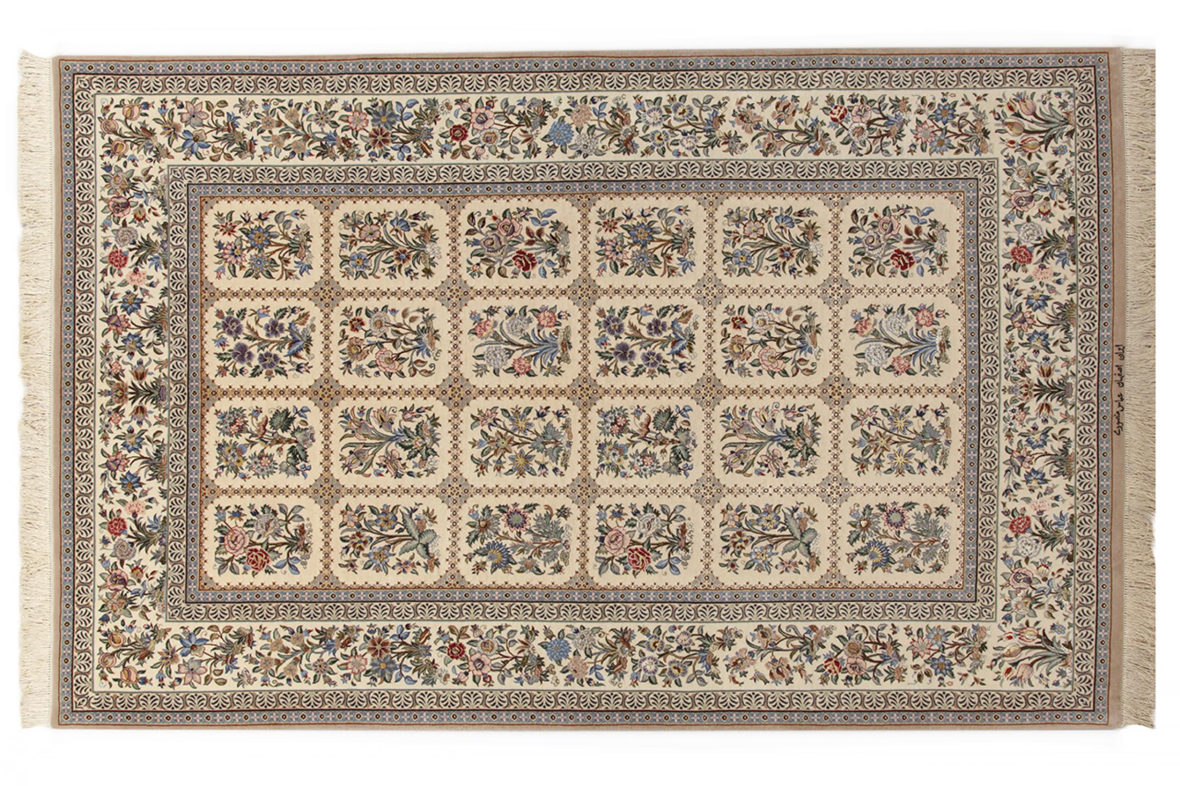Carpet ID: 108247004799416 Size: 230x144 cm Thickness: ap. 6 mm Knot density: 1 000 000 / m² Manufacturing: Knotted by hand Pile: Wool with silk Warp: Silk Origin: Persia Age: New Weight: ap. 10 kg In stock: Unique - Only 1 in stock