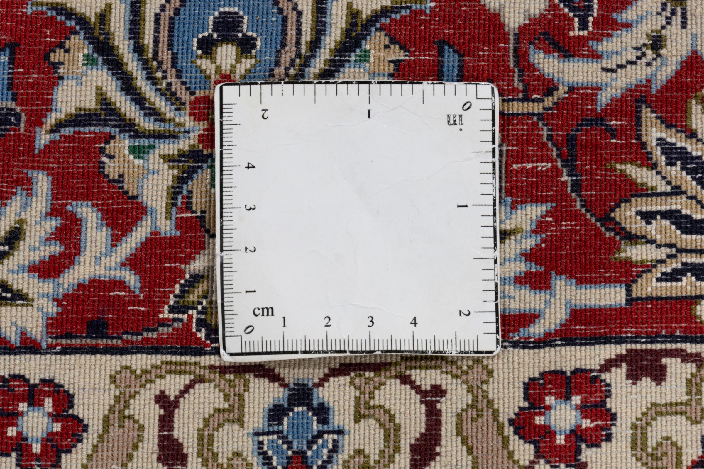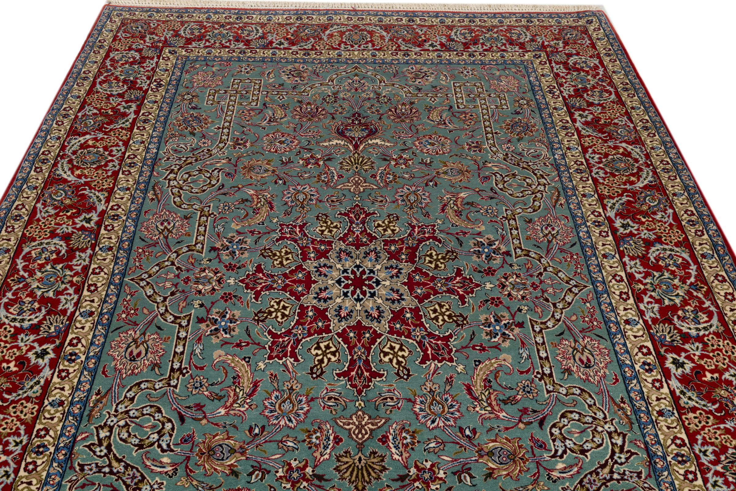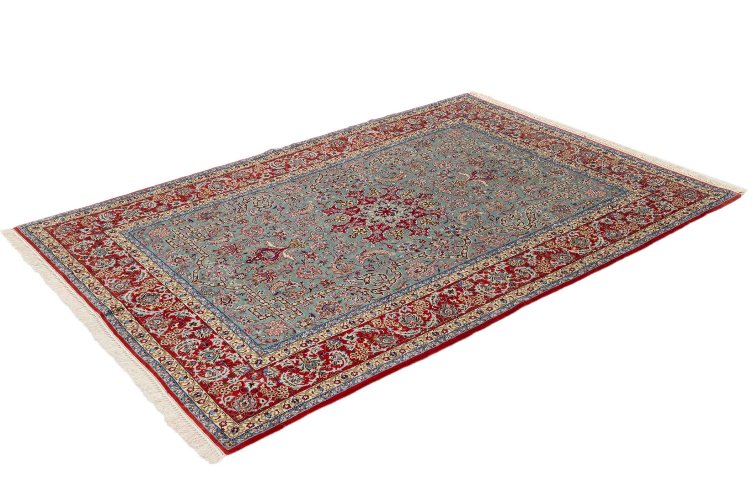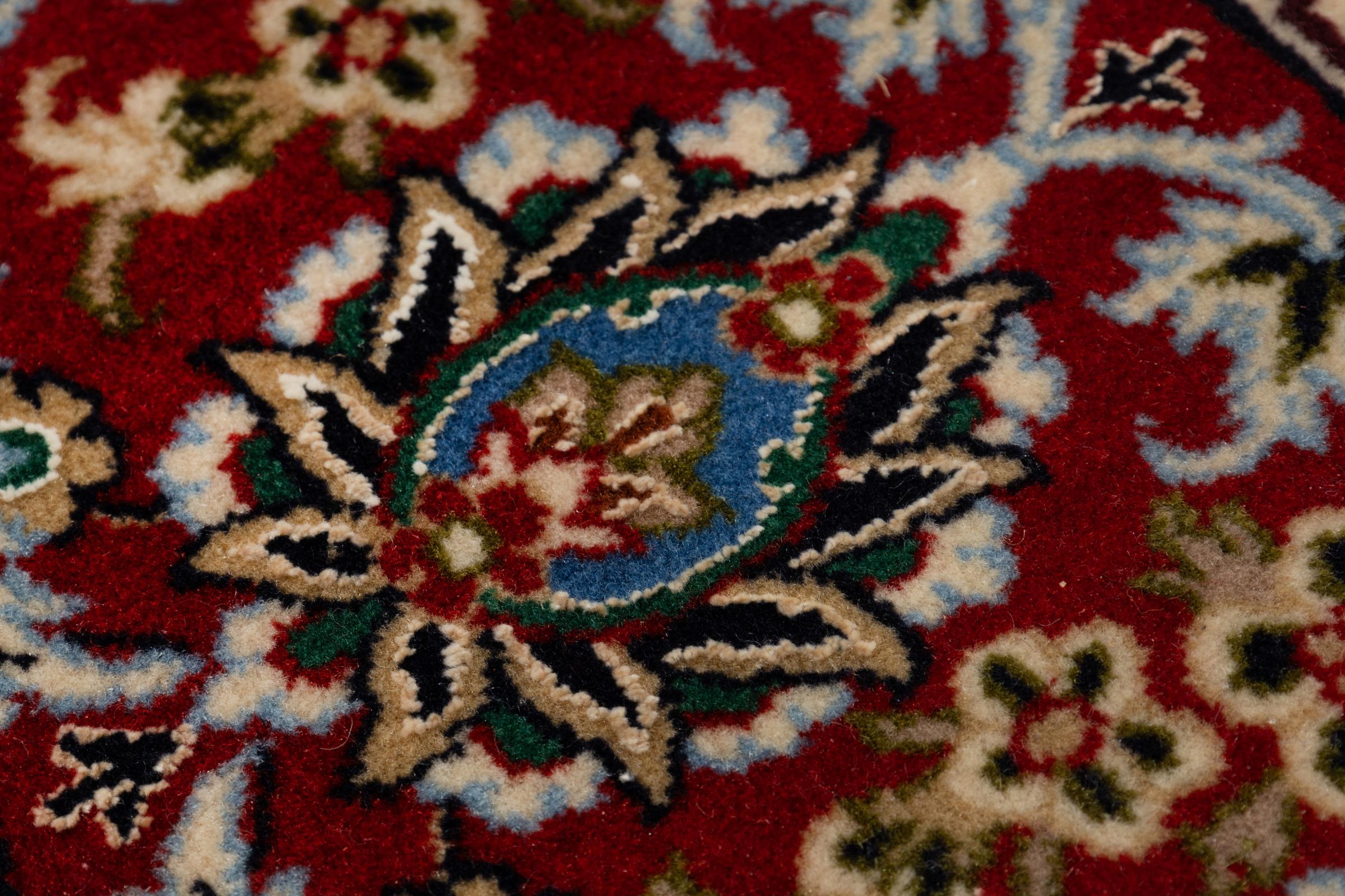 This Isfahan carpet is a piece of the most traditional handicraft. It has been made by hand with the most beautiful patterns. In fact, Isfahan carpets are known to count to the finest Persian carpets. This one has been knotted in Isfahan, which is famous of being the most beautiful city in Iran. The carpet is an exceptionally piece of art.