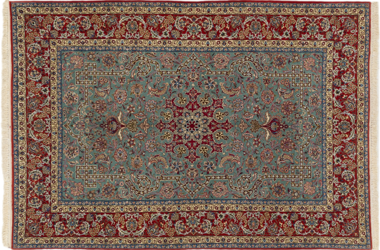 Rugs from this city belong to the probably most valuable hand-knotted Persian rugs worldwide. Very fine Isfahan rugs come from the studios of world-renowned master knotters who achieve a knot density of more than a million knots per square meter. To own an Isfahan means to have a Persian rug of the highest knotting skill. The design of these rugs is mostly inspired by the impressive mosques and squares of the city bearing the same name.
