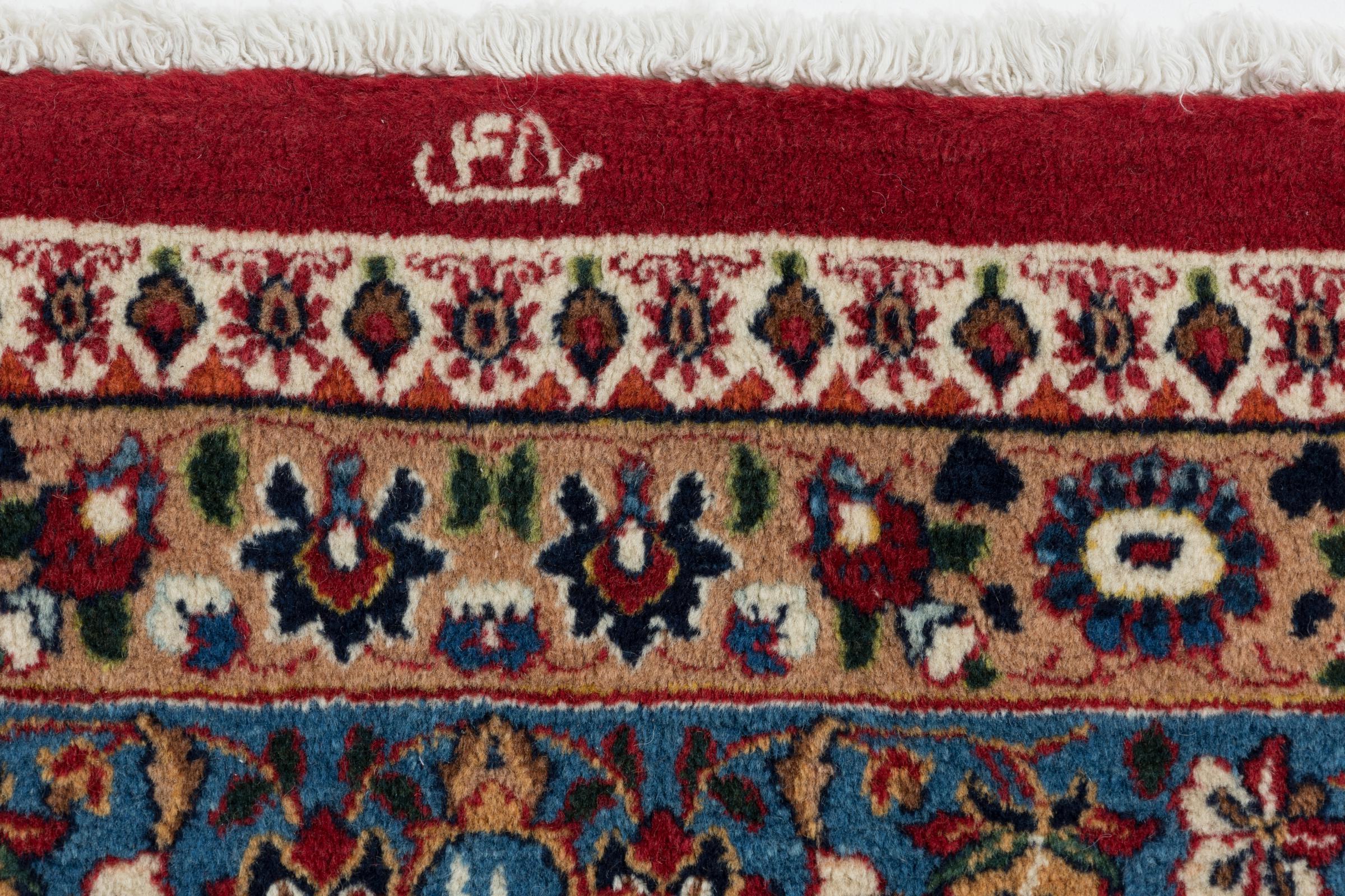 This carpet comes from Iran (formerly Persia) and as a Persian rug enjoys probably the highest reputation among all hand-knotted rug types. No other region looks back on such a long tradition in rug making as Iran. Thus, the probably finest and most elaborate rugs originate here. The robustness, durability and quality of the Persian knot are still unsurpassed today. Persian rugs are usually named after their region of origin. For instance, a Nain, a Ghom as well as an Isfahan carpet comes from the city of the same name in Iran.