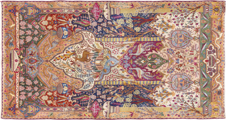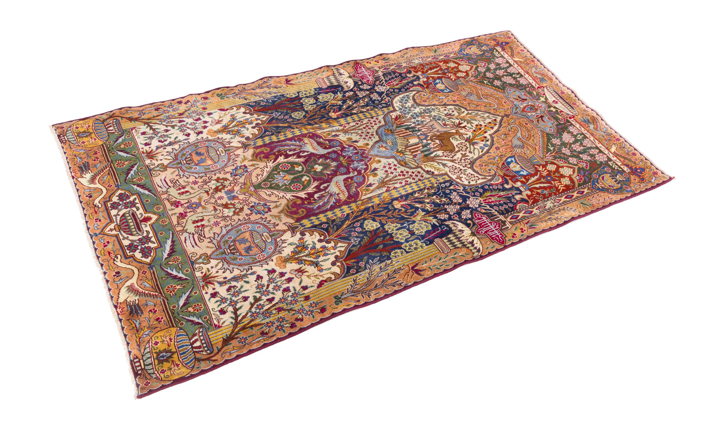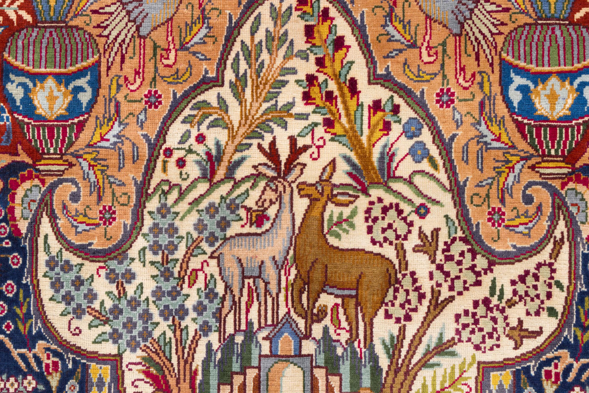 This carpet comes from Iran (formerly Persia) and as a Persian rug enjoys probably the highest reputation among all hand-knotted rug types. No other region looks back on such a long tradition in rug making as Iran. Thus, the probably finest and most elaborate rugs originate here. The robustness, durability and quality of the Persian knot are still unsurpassed today. Persian rugs are usually named after their region of origin. For instance, a Nain, a Ghom as well as an Isfahan carpet comes from the city of the same name in Iran.